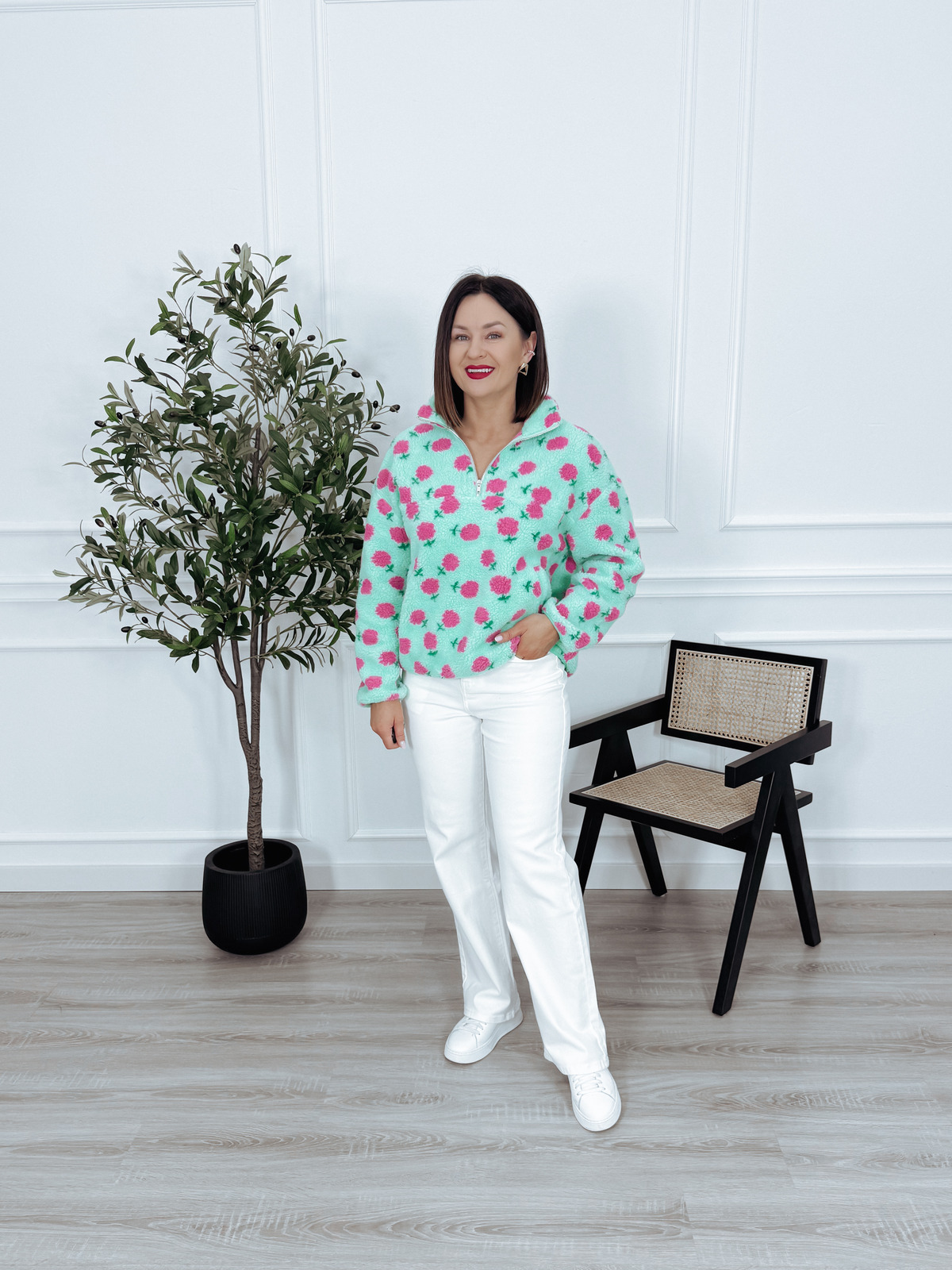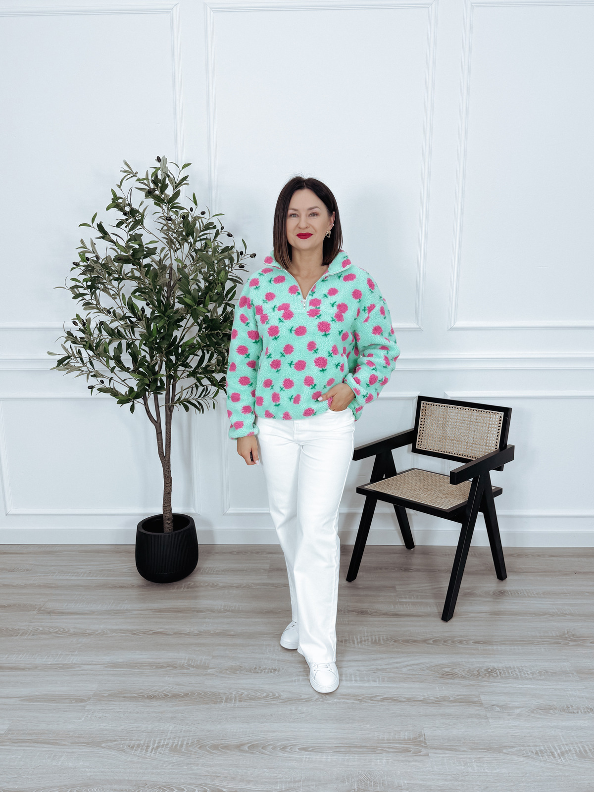 Bardzo wygodna bluza uszyta z miękkiego polaru typu miś, bluza posiada krótki zamek i dwie kieszenie z przodu.