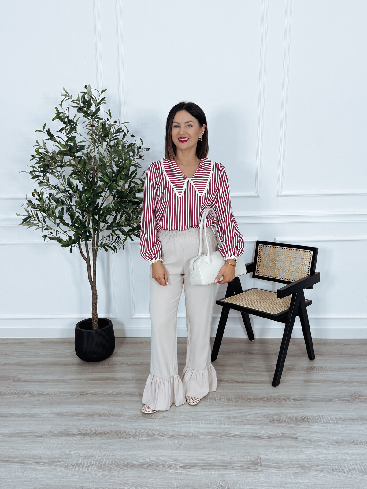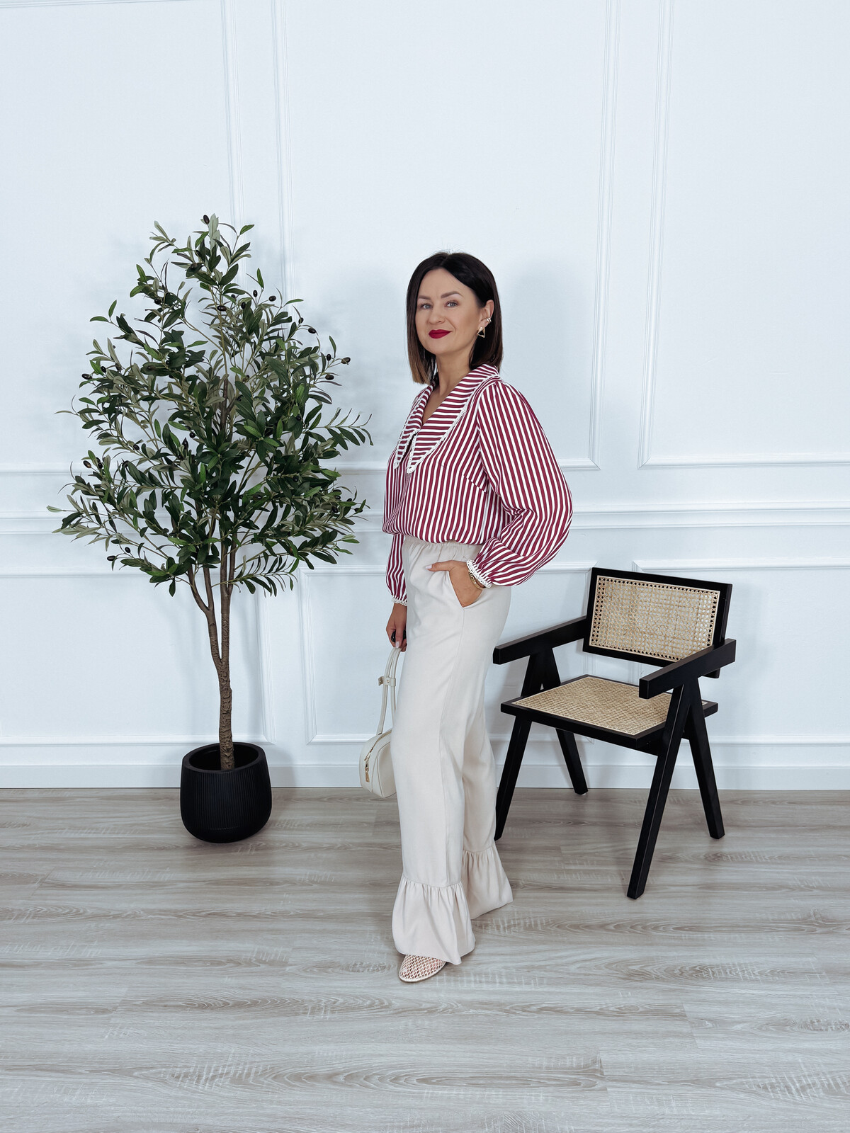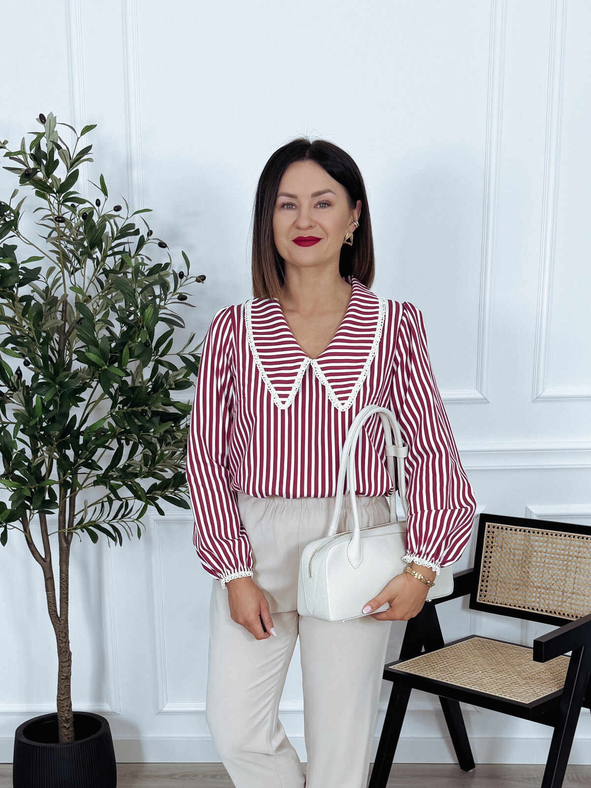 Bluzka premium z dużym kołnierzem w paski biało-czerwone FELICJA