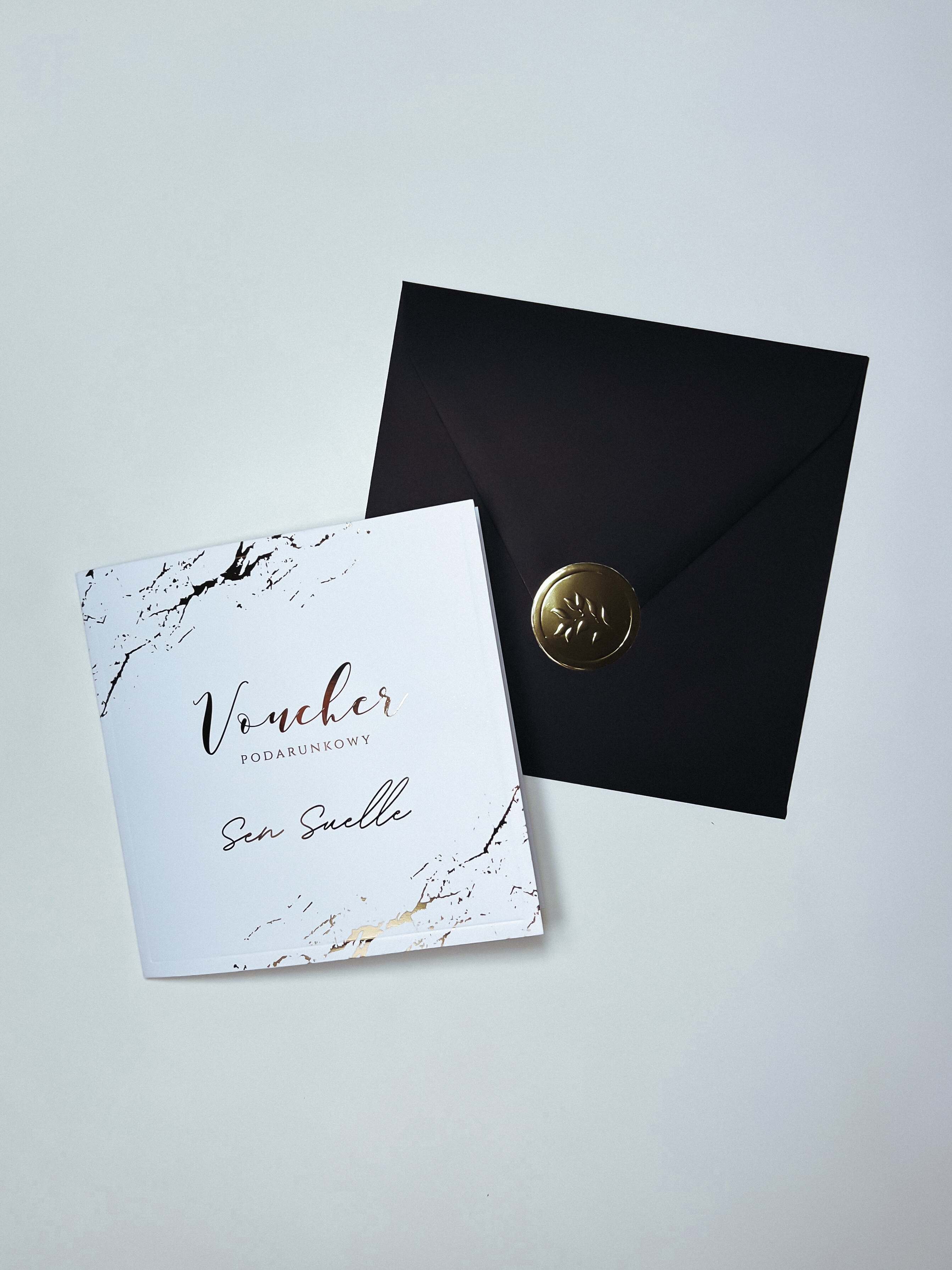 Bon upominkowy idealny na prezent dla przyjaciółki, mamy, siostry czy koleżanki z pracy. Złote, błyszczące napisy. Voucher pakowany w elegancką, czarną kopertę 🖤