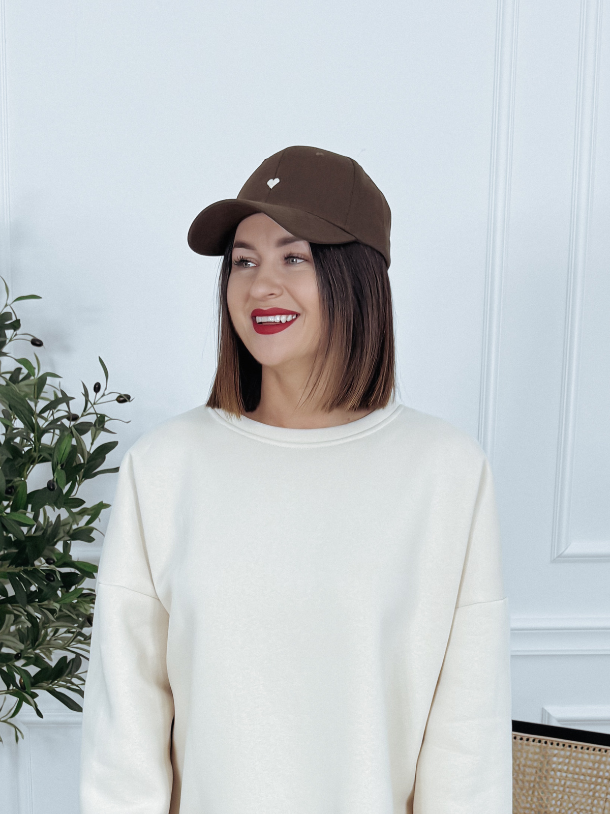 Czapka z daszkiem brązowa z beżowym serduszkiem