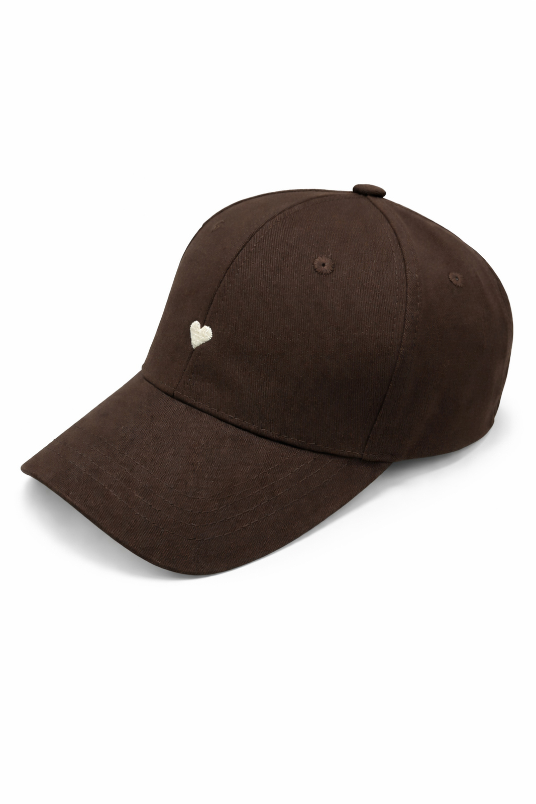 Stylowa czapka z daszkiem ozdobiona wyszywanym serduszkiem. Posiada regulowane zapięcie z tyłu.