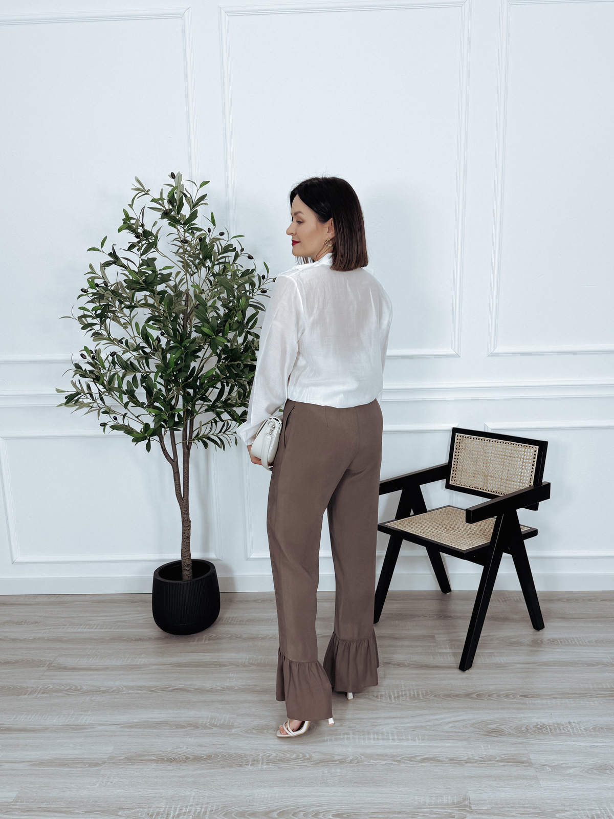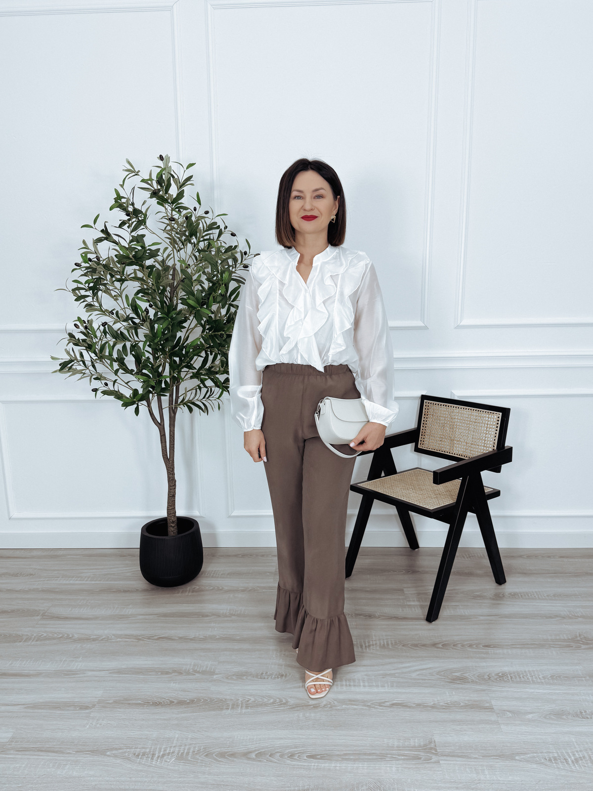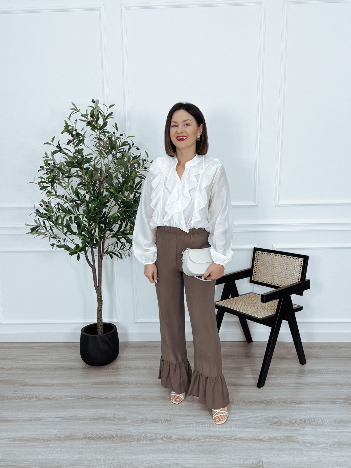 Elegancka bluzka z tencelu z falbankami z przodu biała ERNET