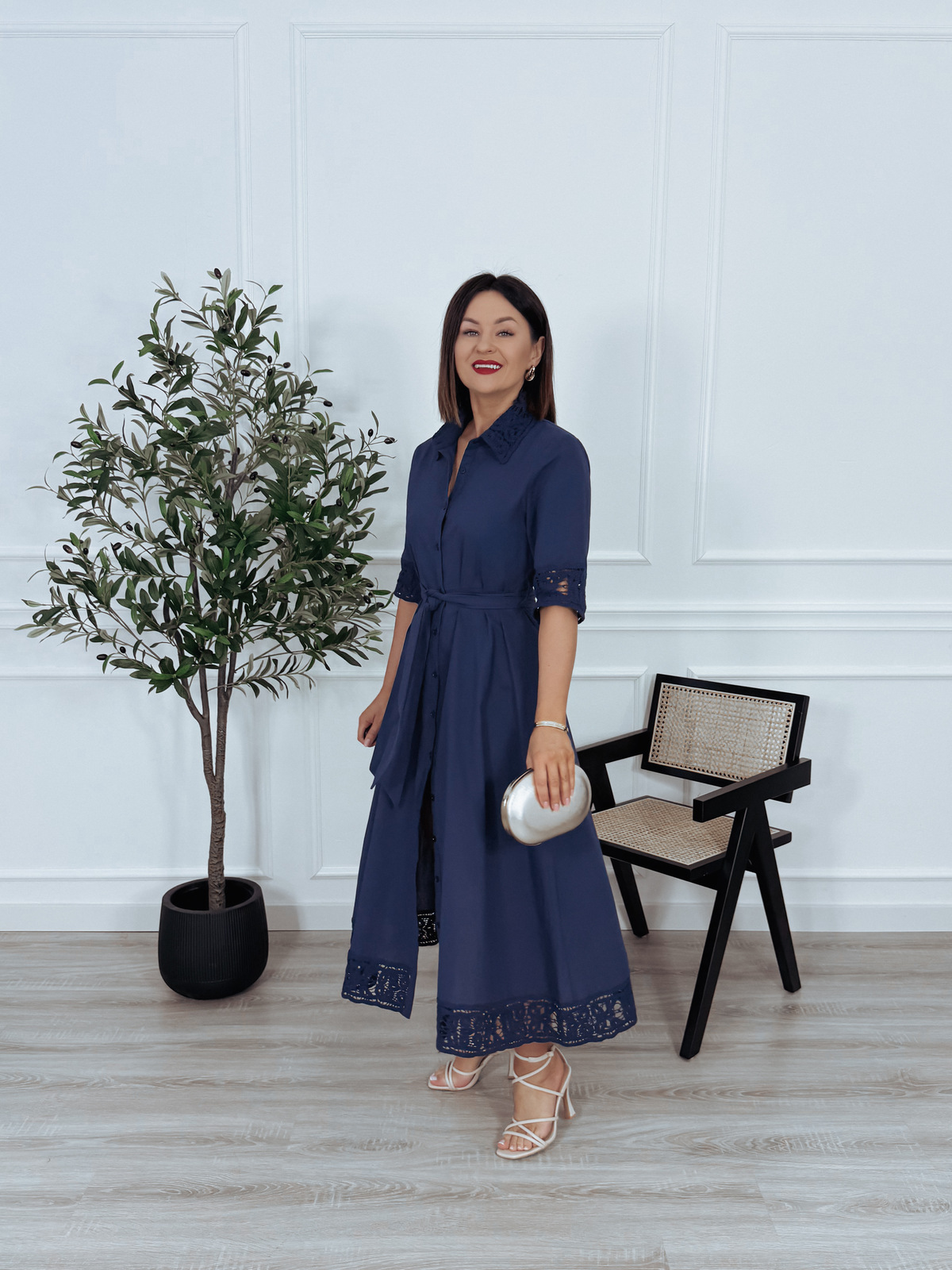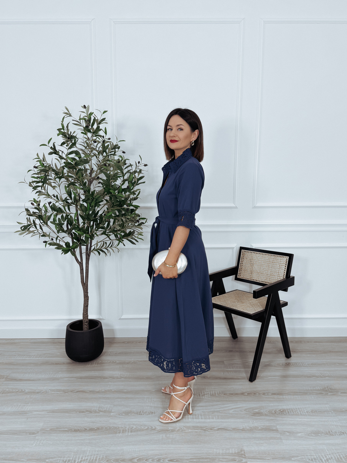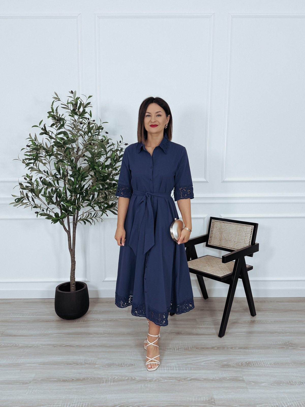 Elegancka szmizjerka premium z bawełny z gipiurą granatowa MARINO - PRE ORDER wysyłka 02-03.04.