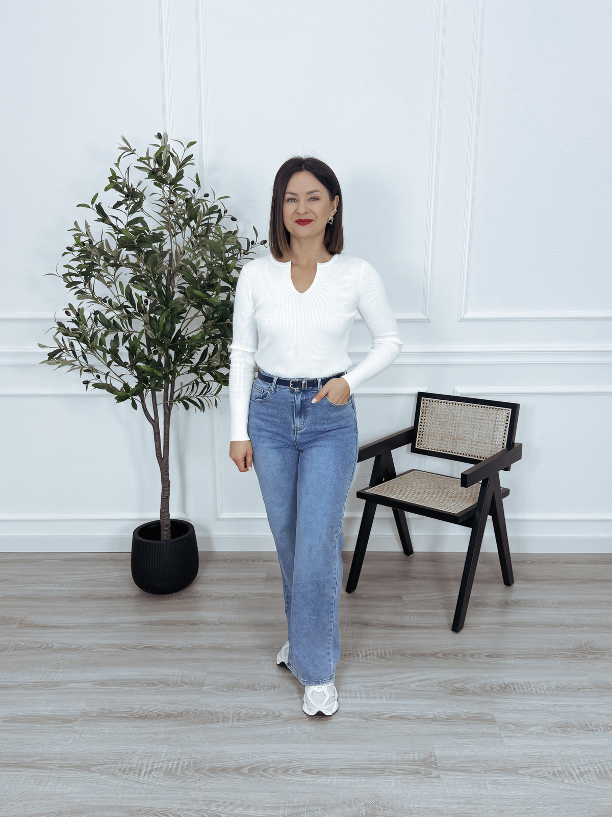 Spodnie jeansowe z szerokimi, prostymi nogawkami. Idealna baza do wiosennych stylizacji 🖤