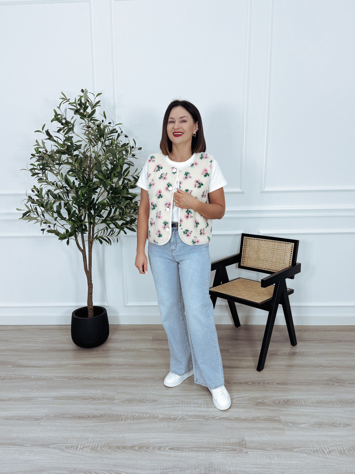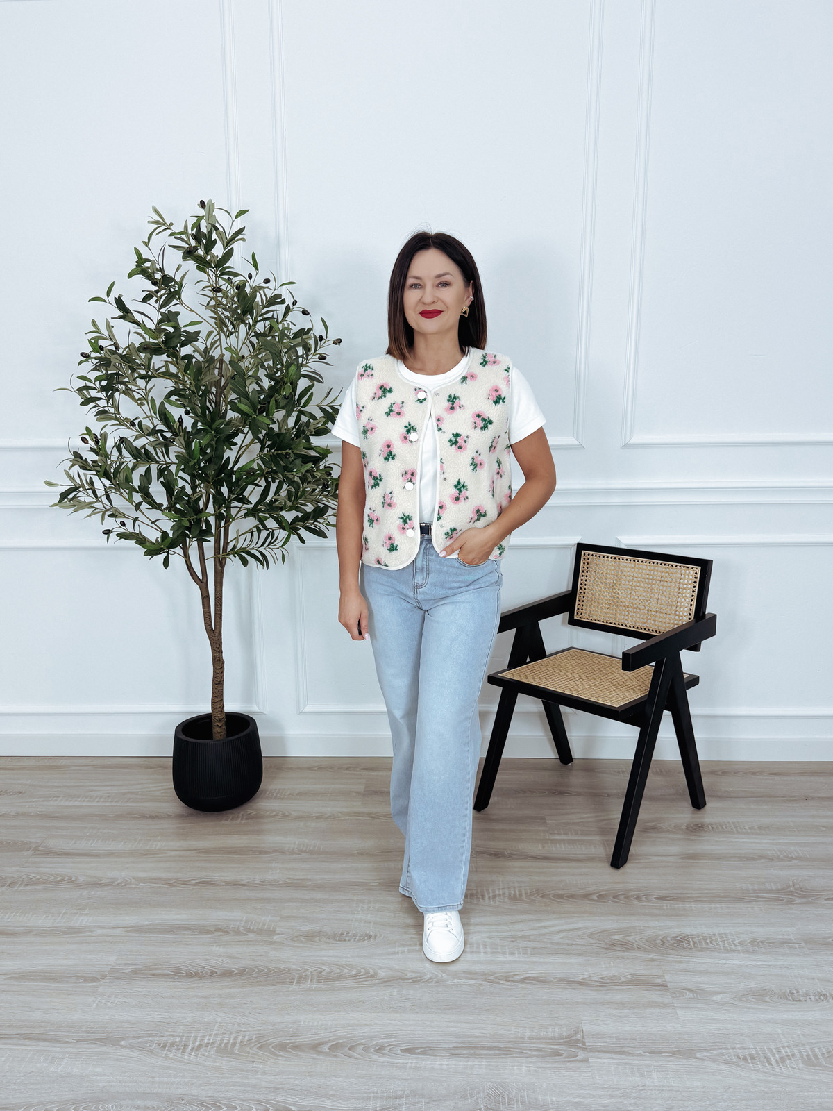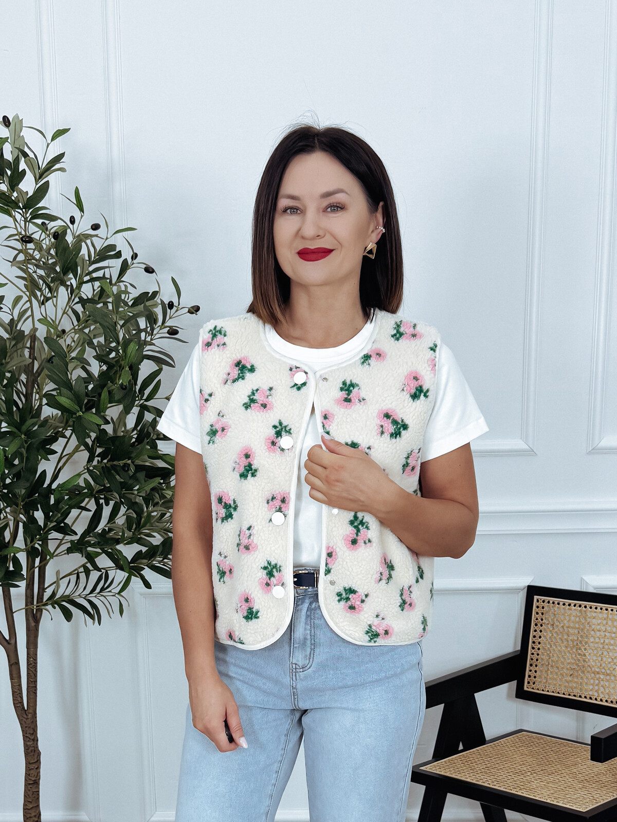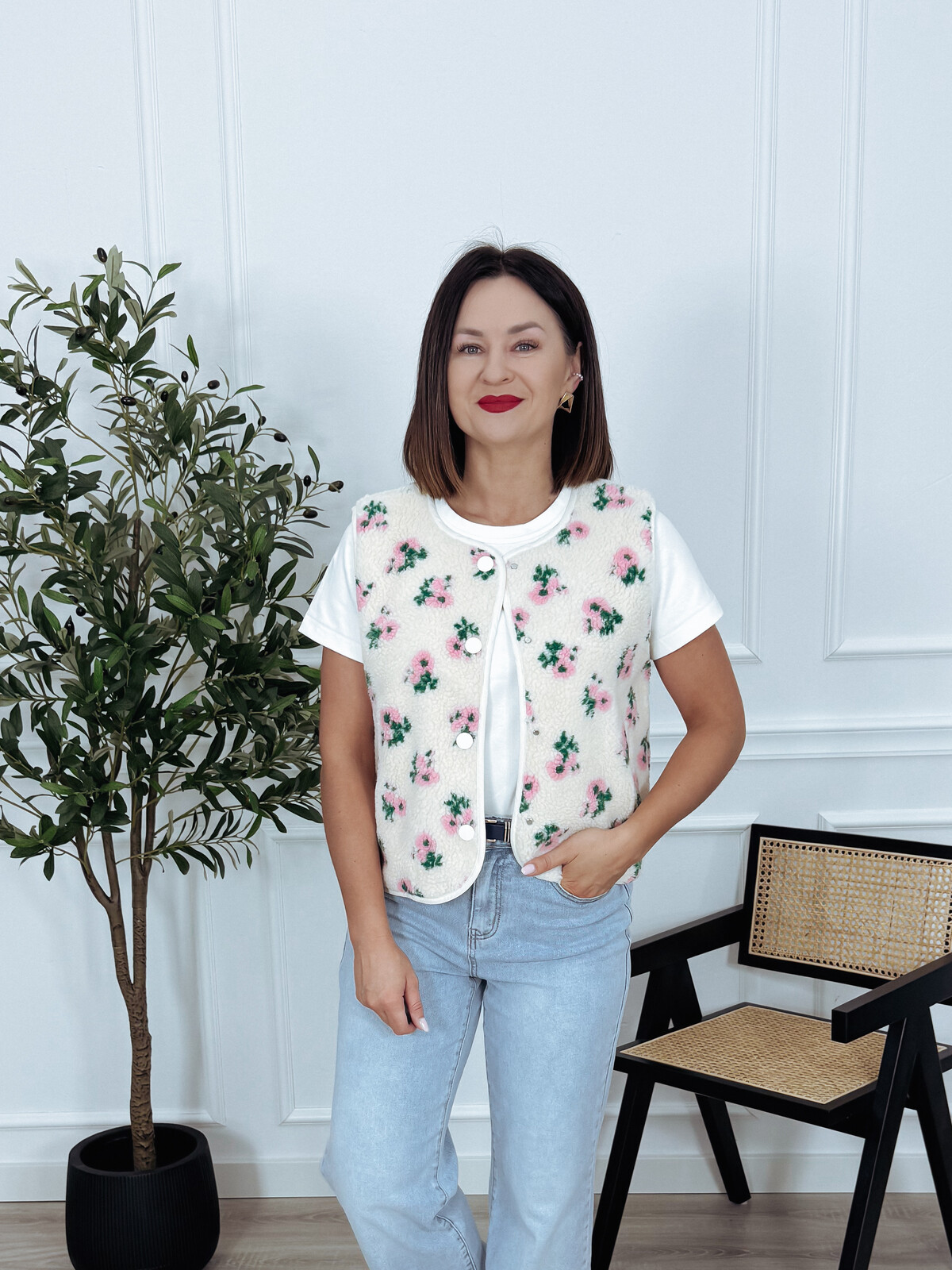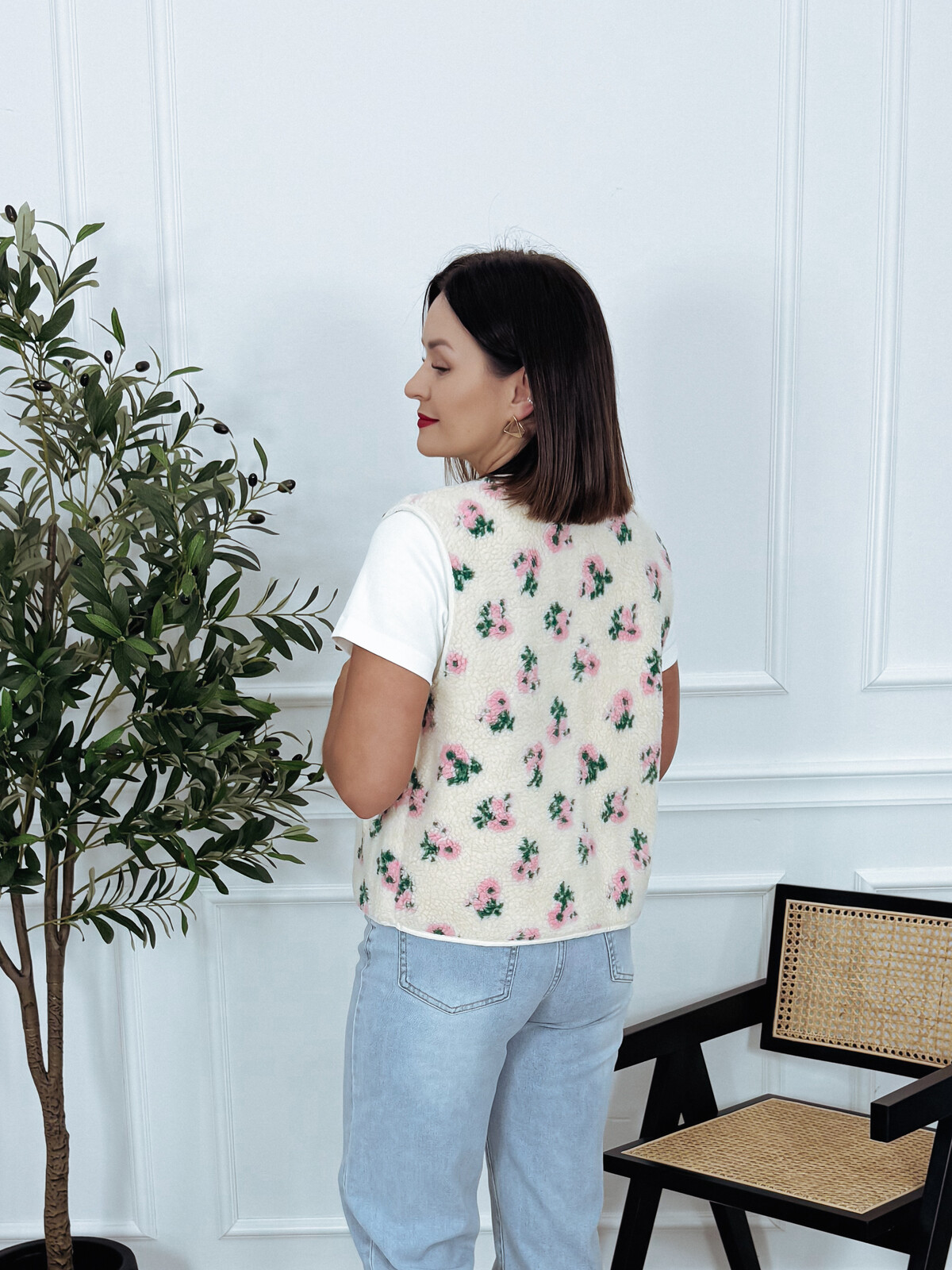 Wiosenna kamizelka w kwiaty zapinana na guziki  Posiada dwie kieszenie z przodu  🖤