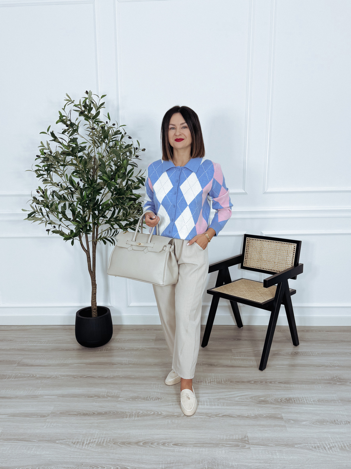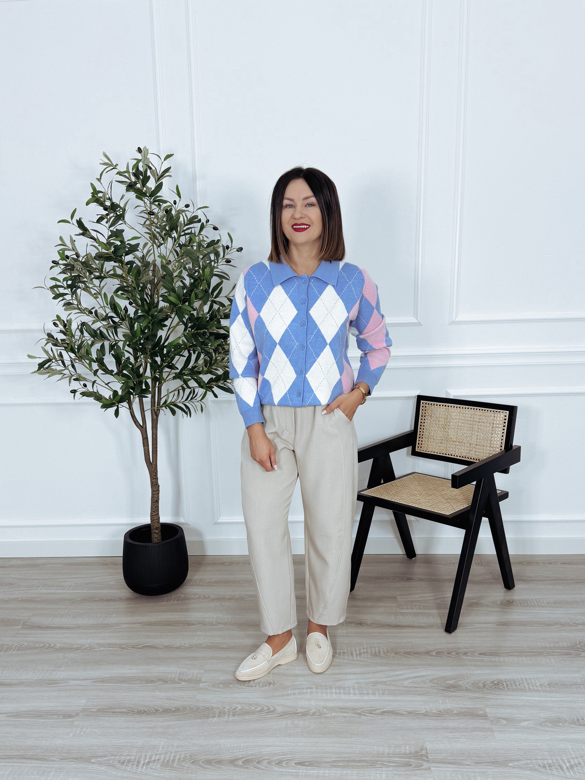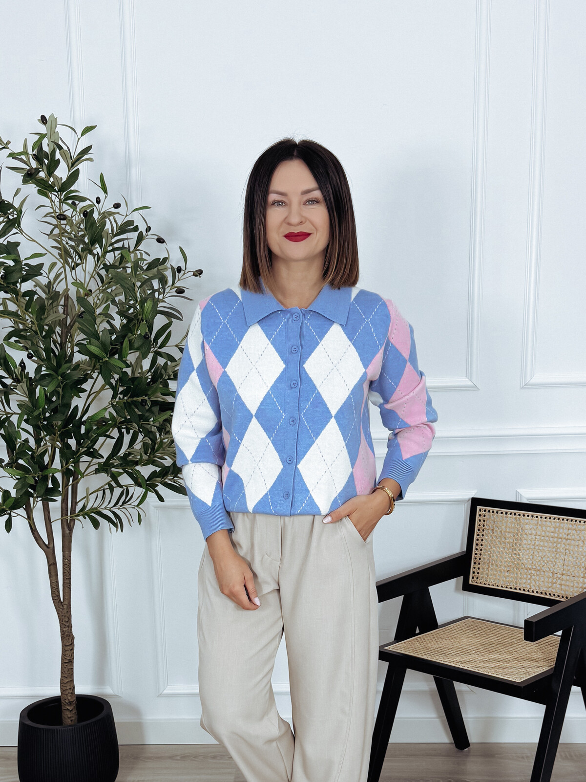 Bardzo przyjemny dla ciała kardigan w romby. Nie gryzie. Idealny na wiosnę.🖤