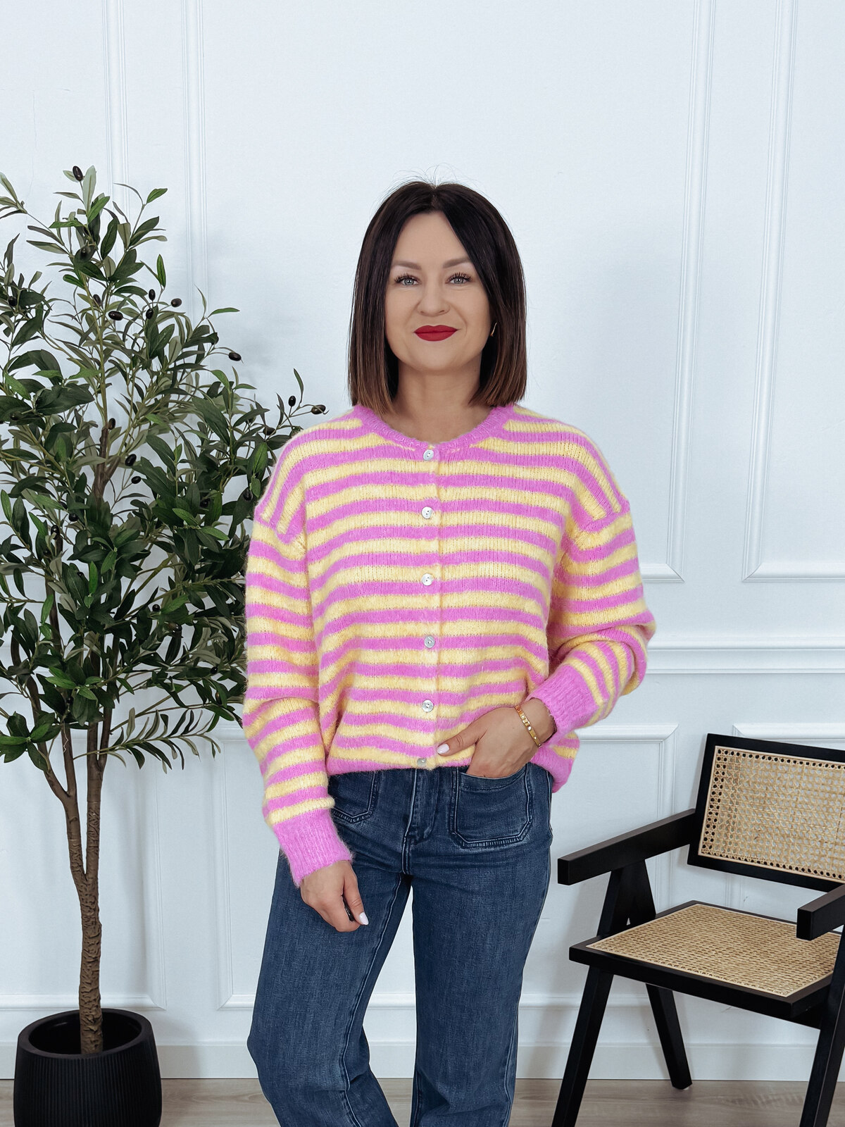 Kardigan w romby z wełną różowo-żółte paski FREDDY