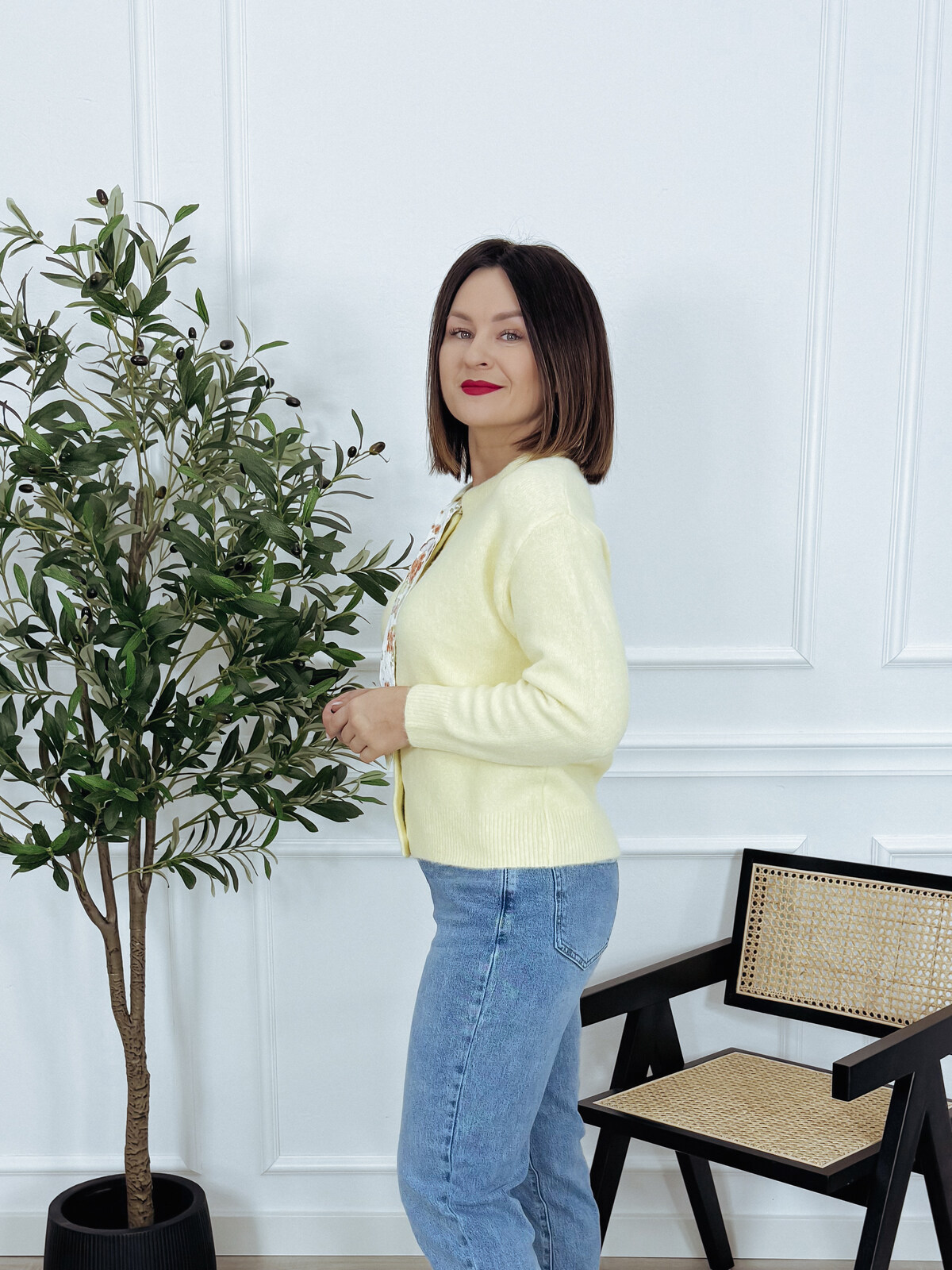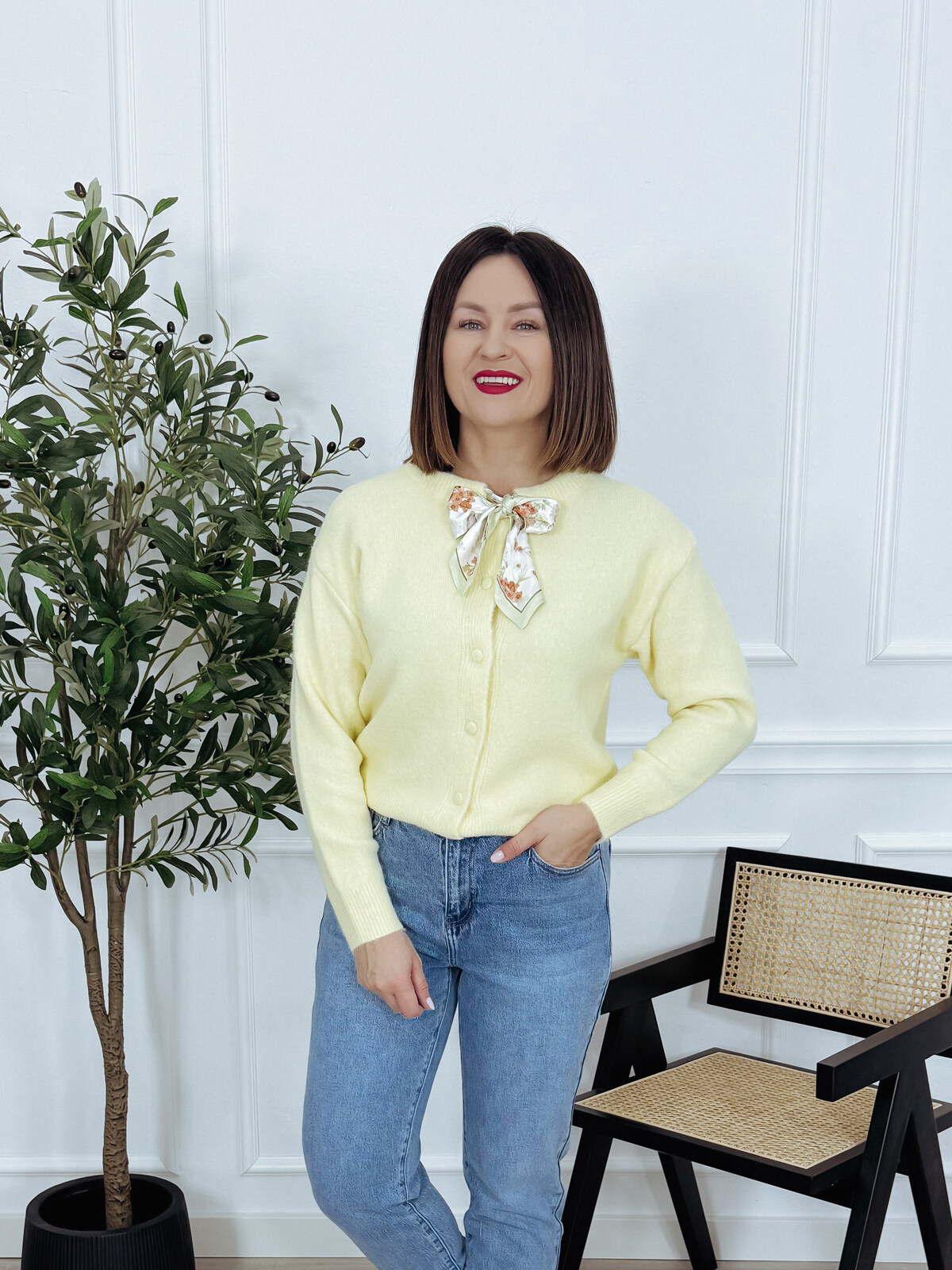 Kardigan z apaszką bananowy GIVE ME