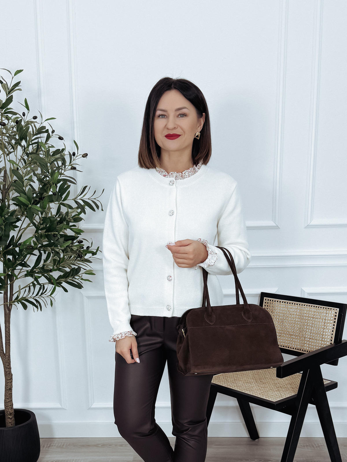 Kardigan z falbanką w kwiaty śmietankowy MINA