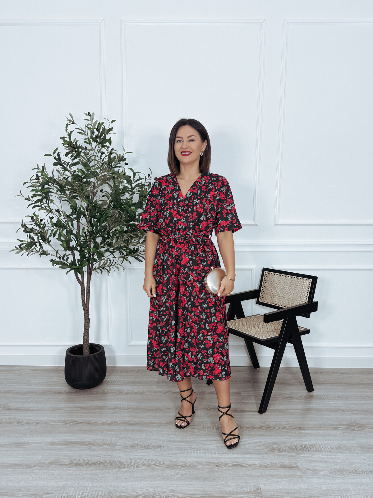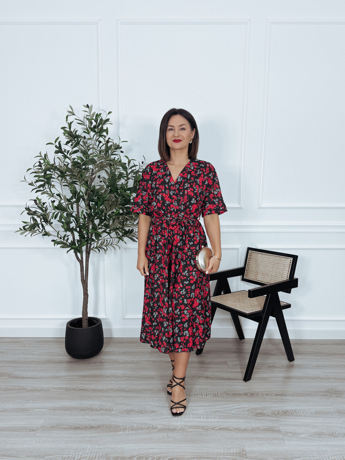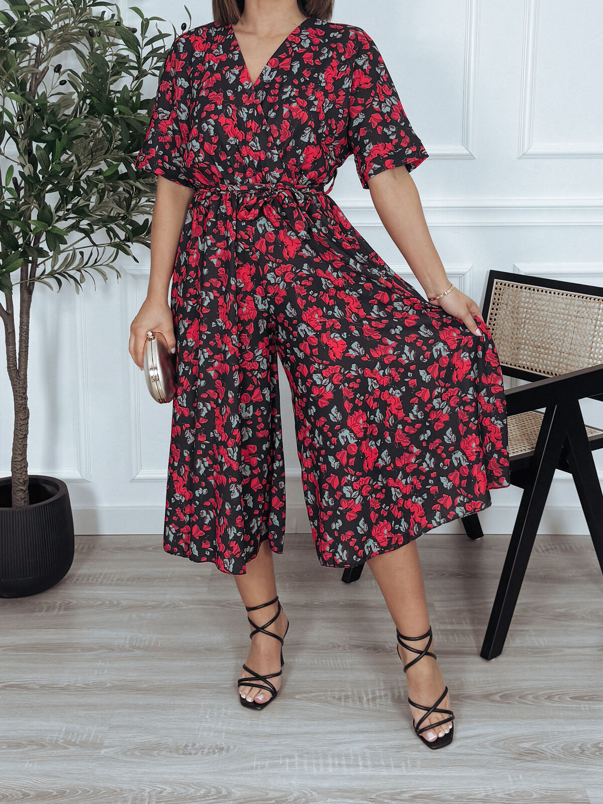 Kombinezon z paskiem czarny w róże SANAH