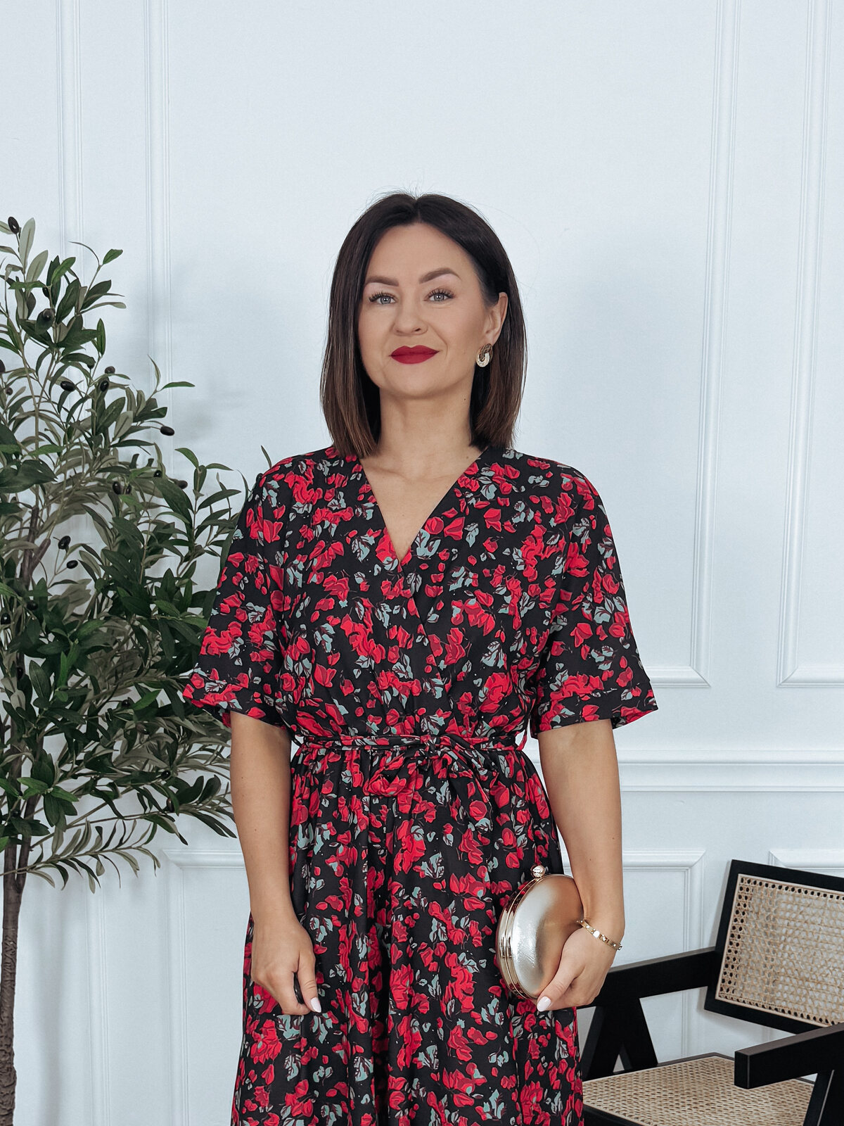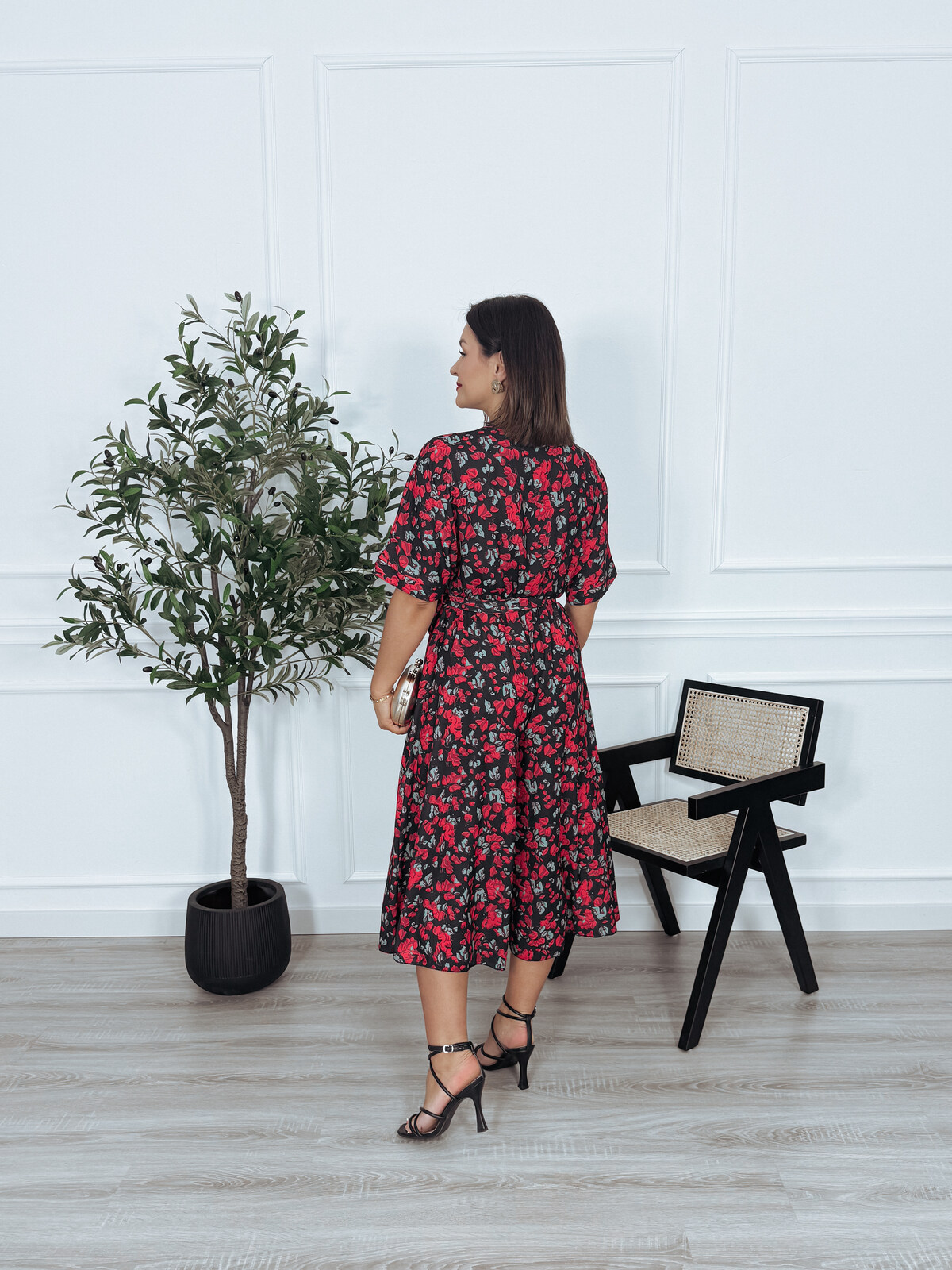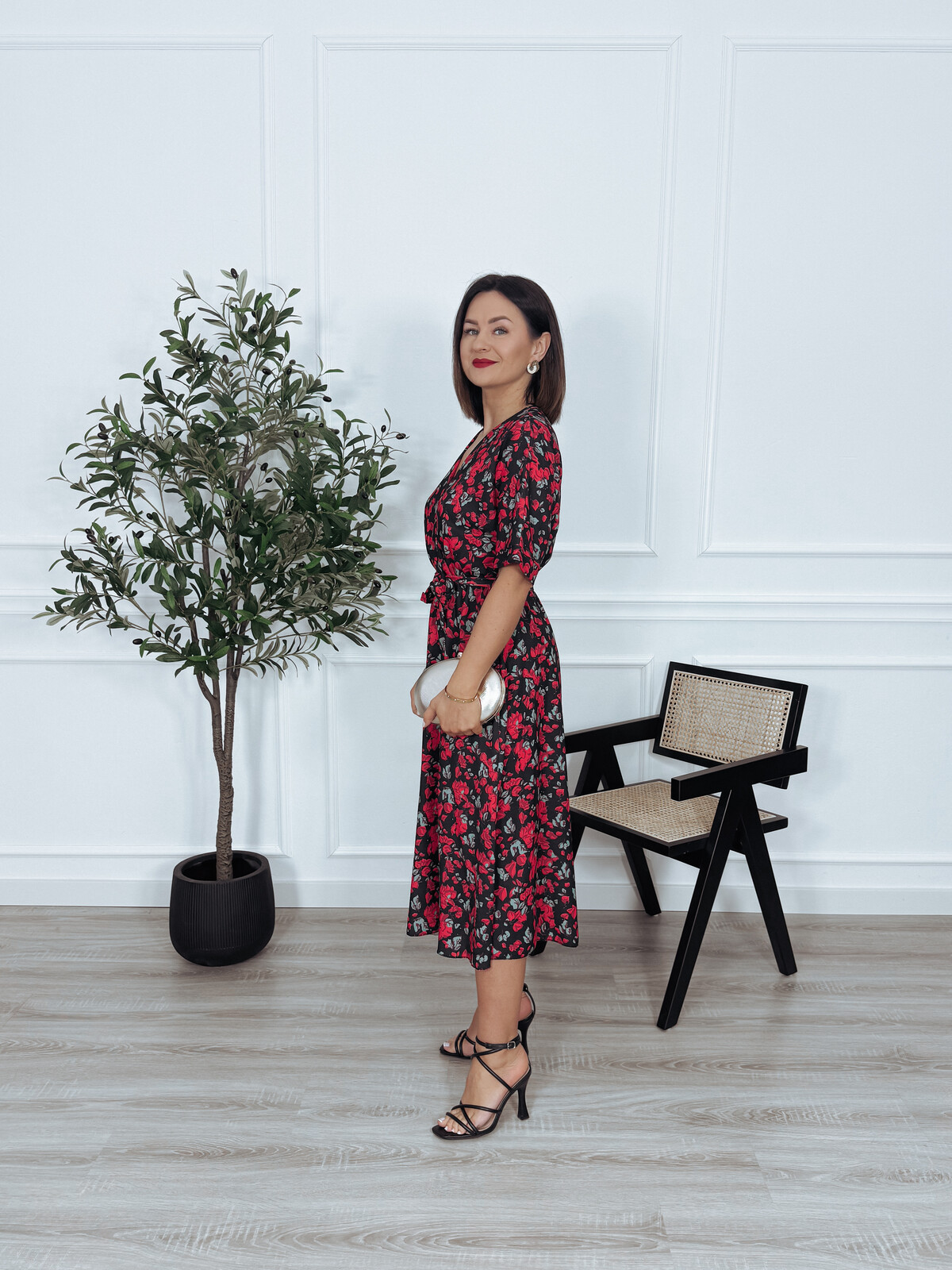 Kombinezon z paskiem czarny w róże SANAH