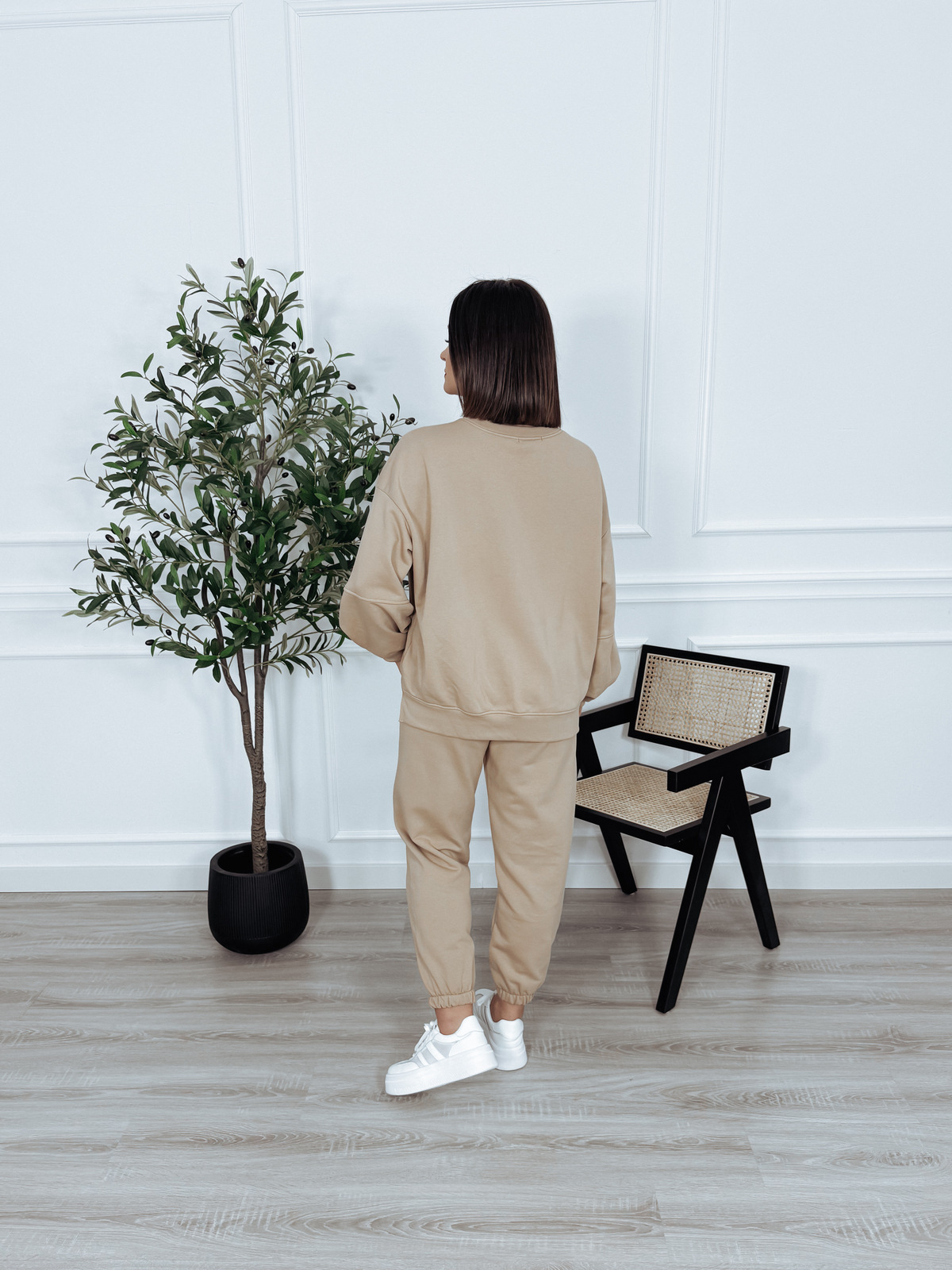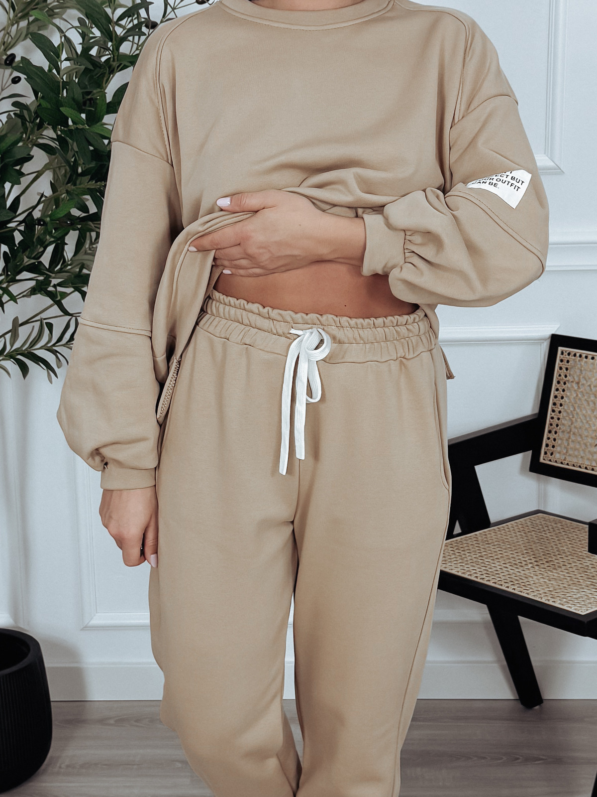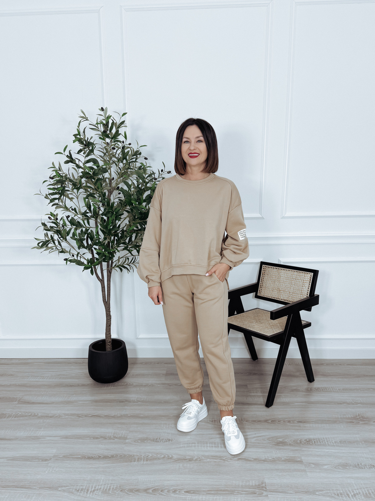 Komplet bawełniany bluza + spodnie beż ciemny ARIA