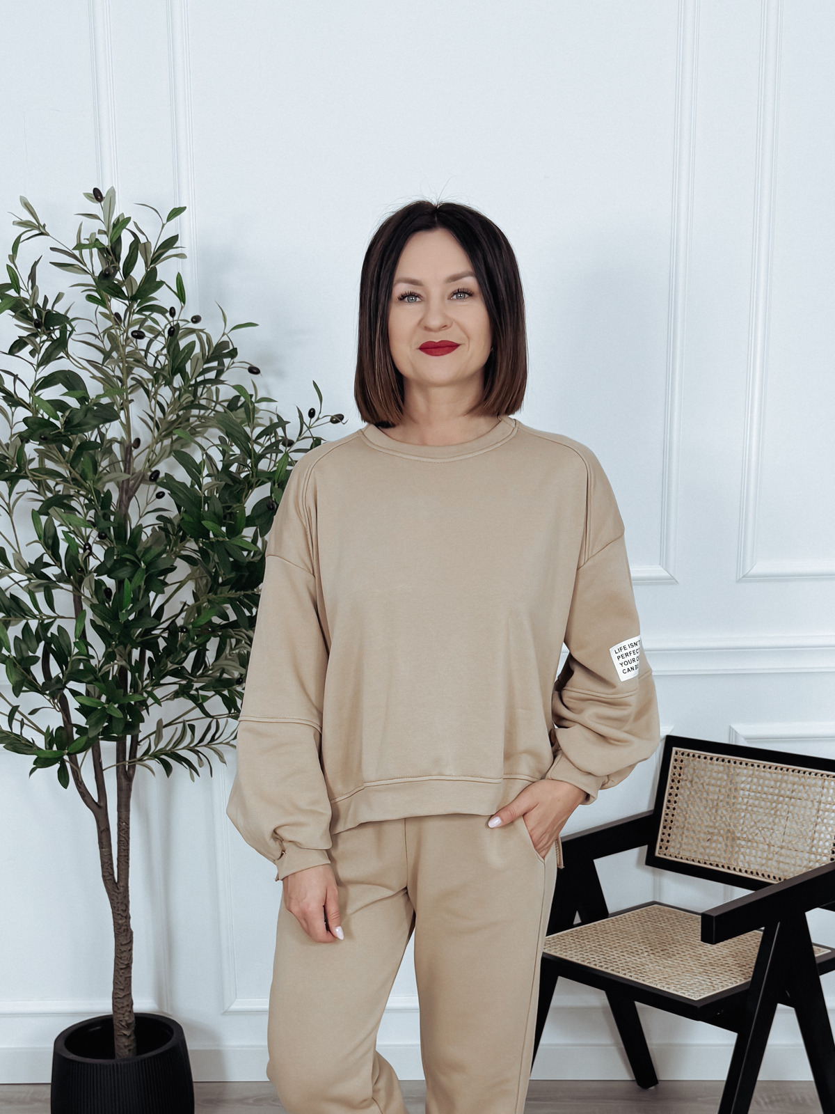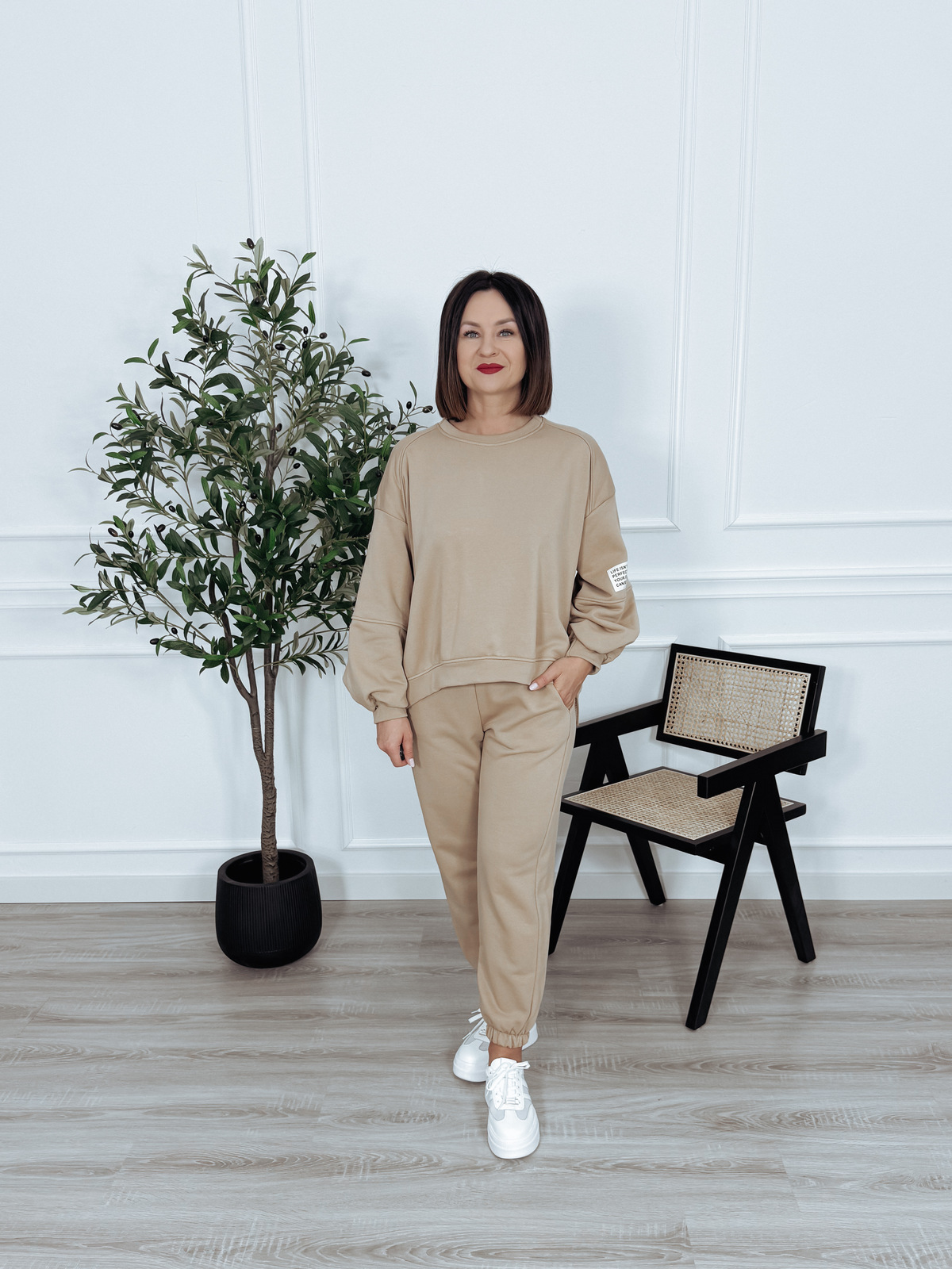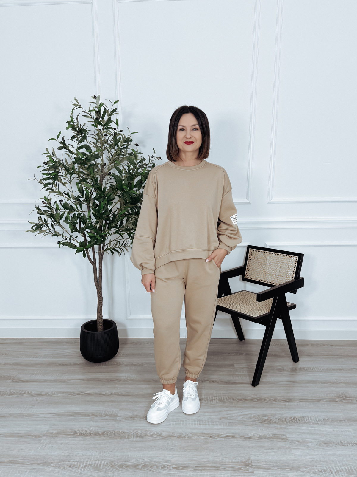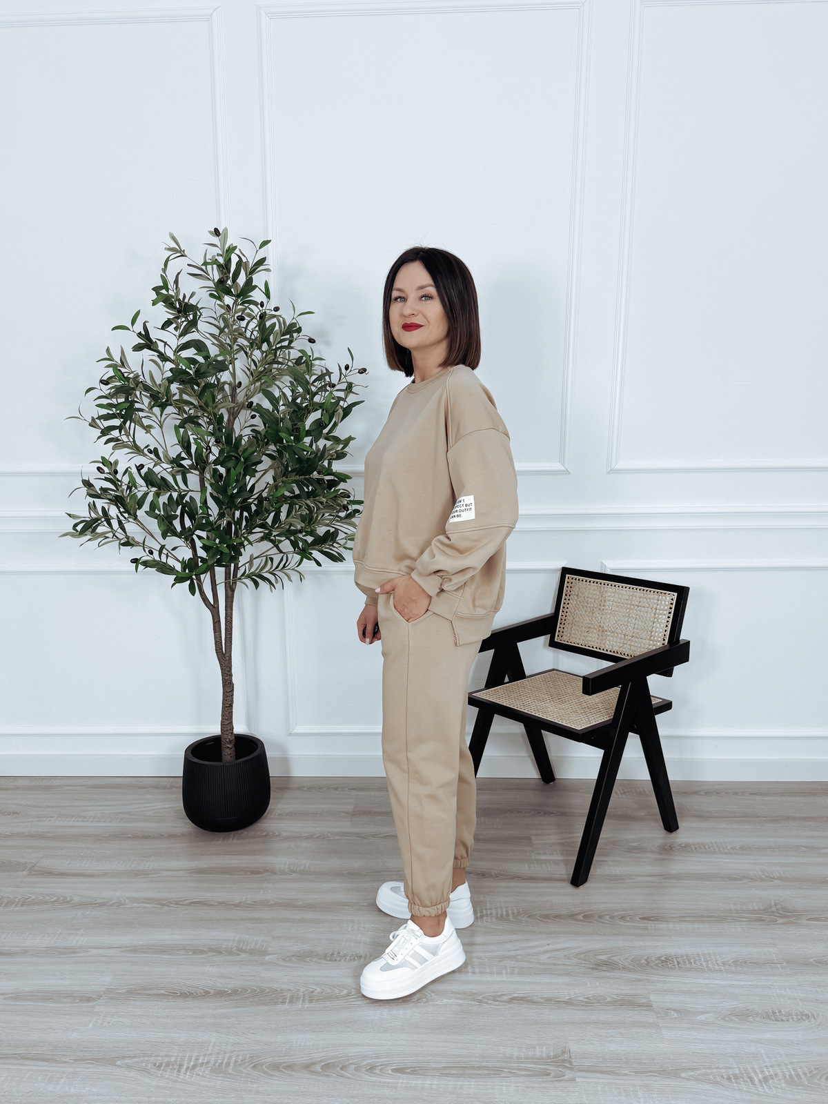 Komplet bawełniany bluza + spodnie beż ciemny ARIA