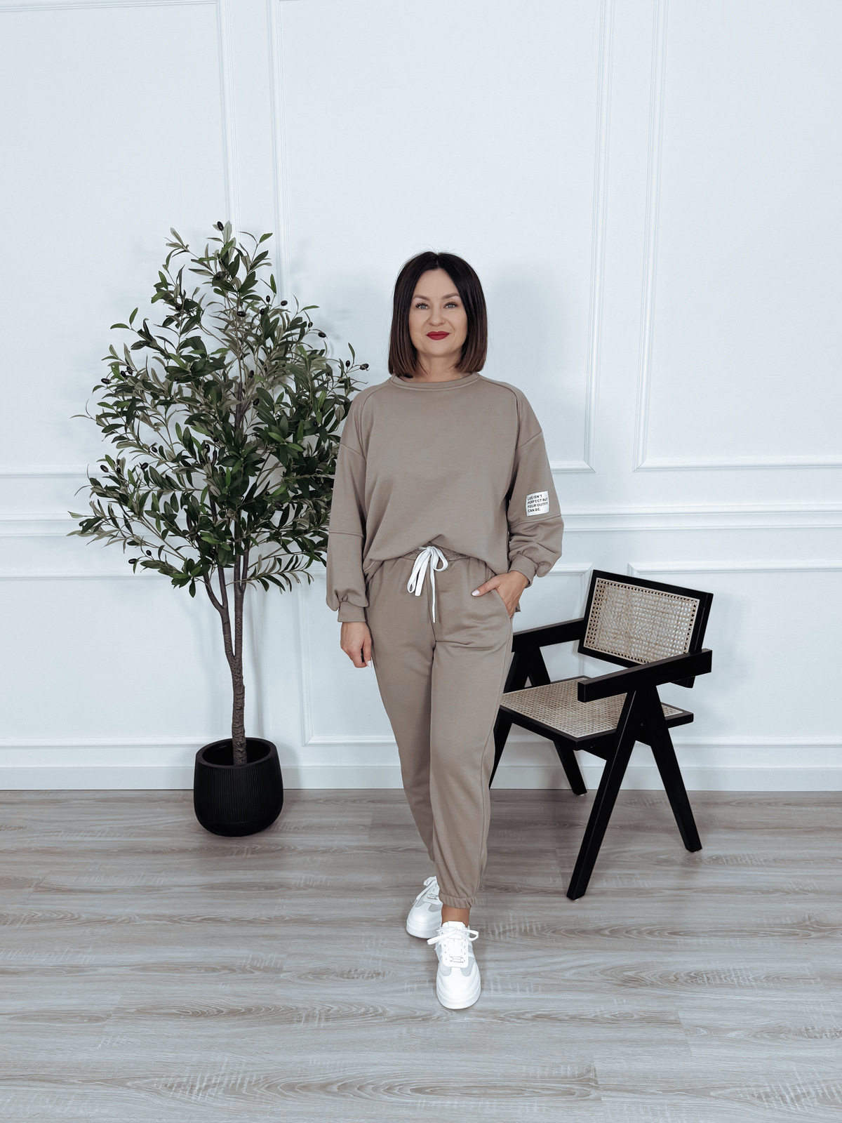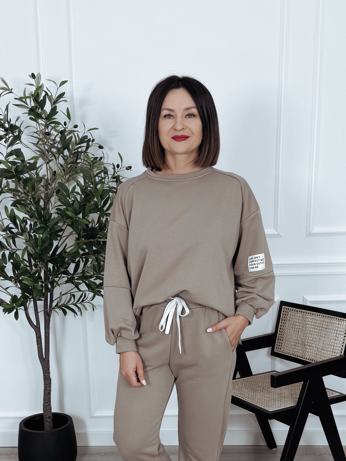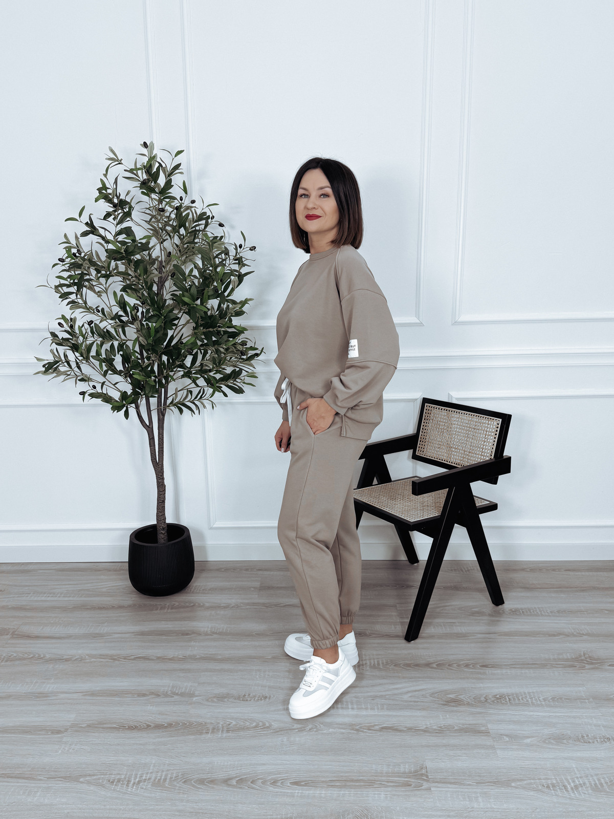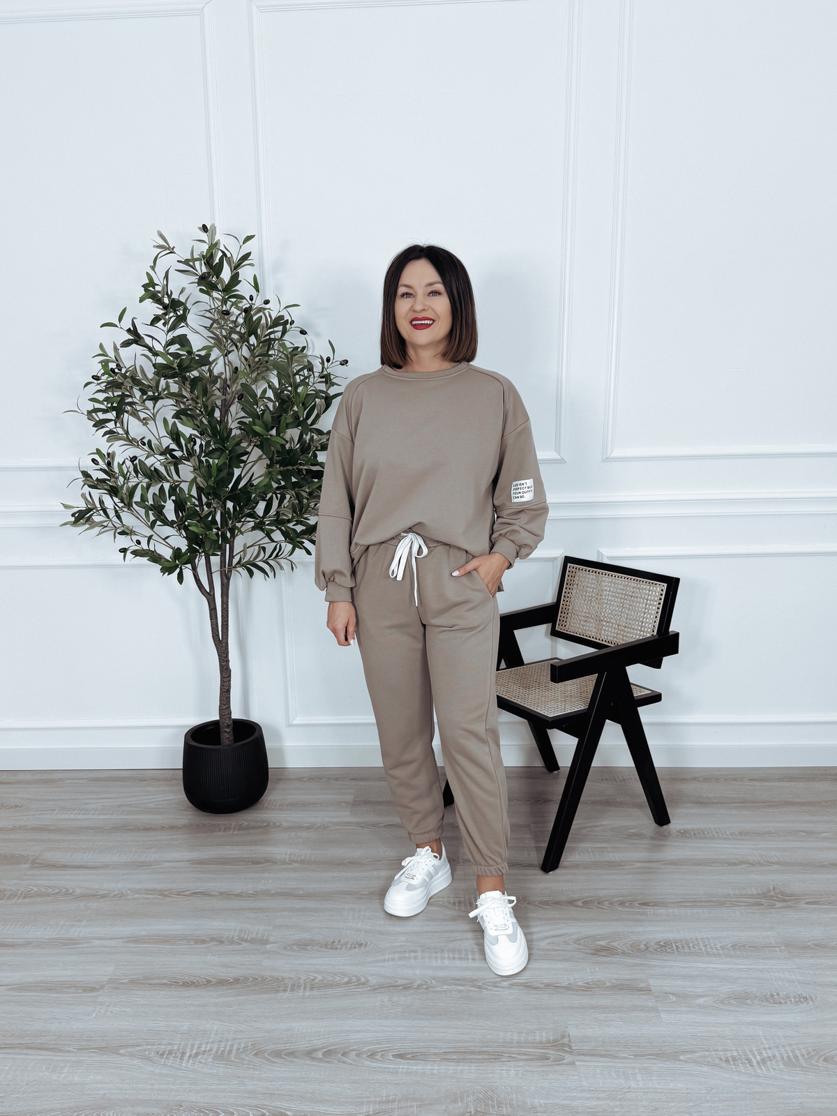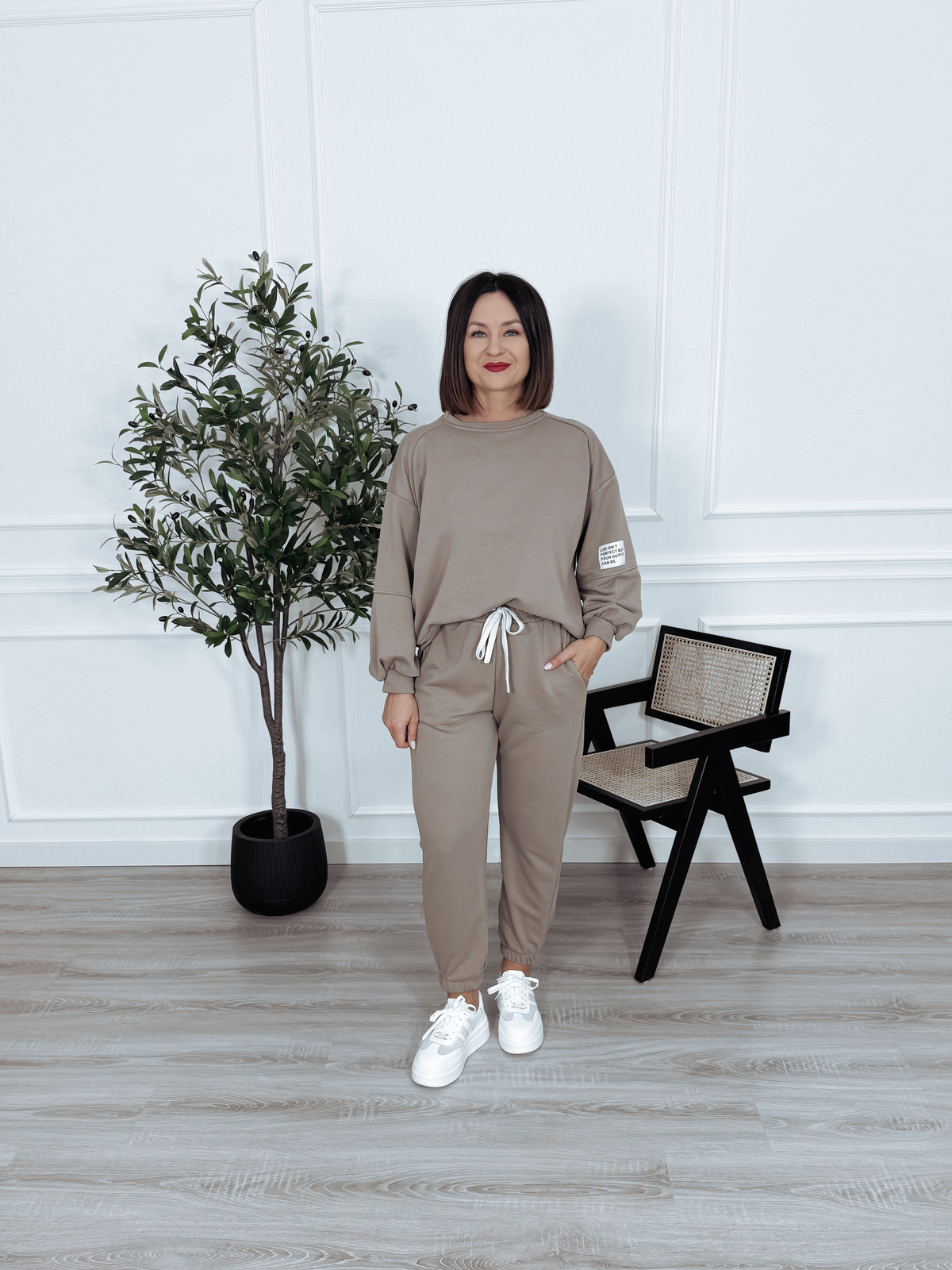 Komplet bawełniany bluza + spodnie beż ciemny ARIA