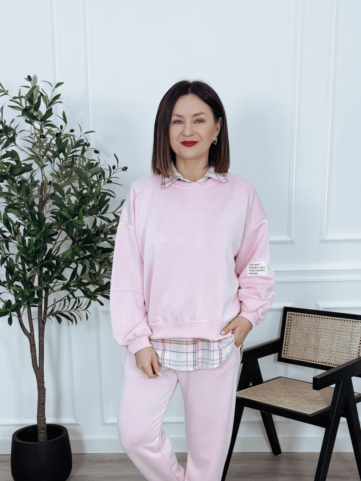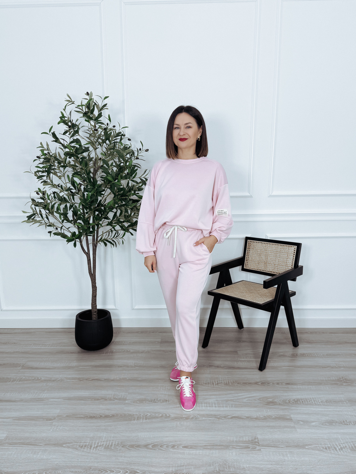Komplet bluza + spodnie pastelowy różowy ARIA II - materiał MASEŁKO
