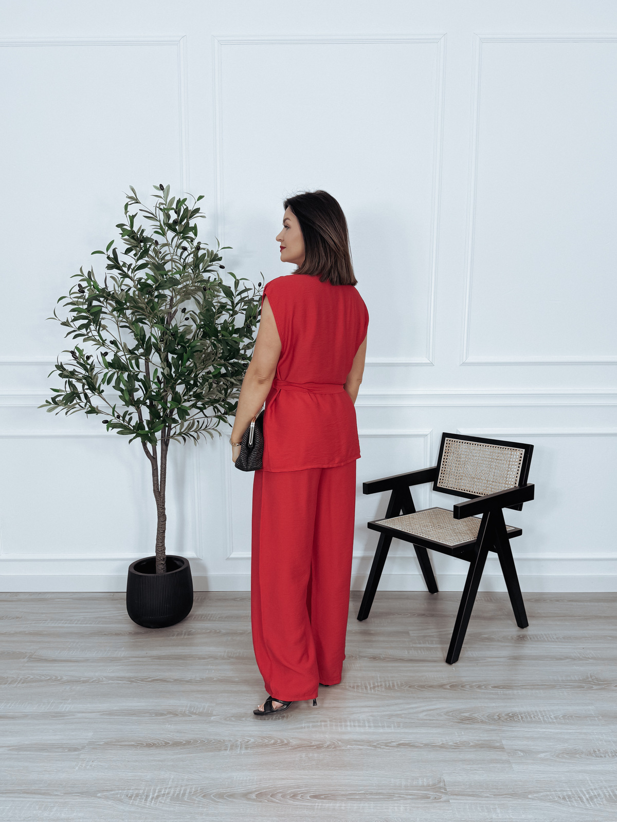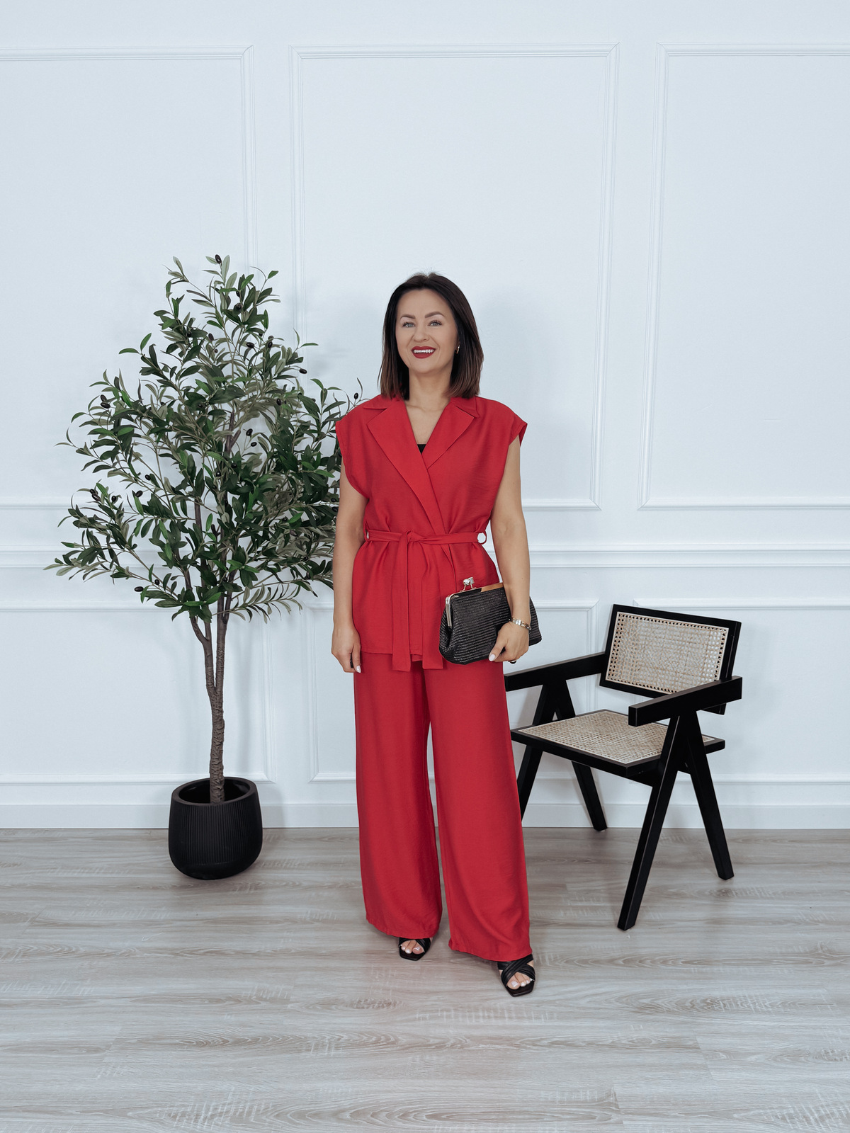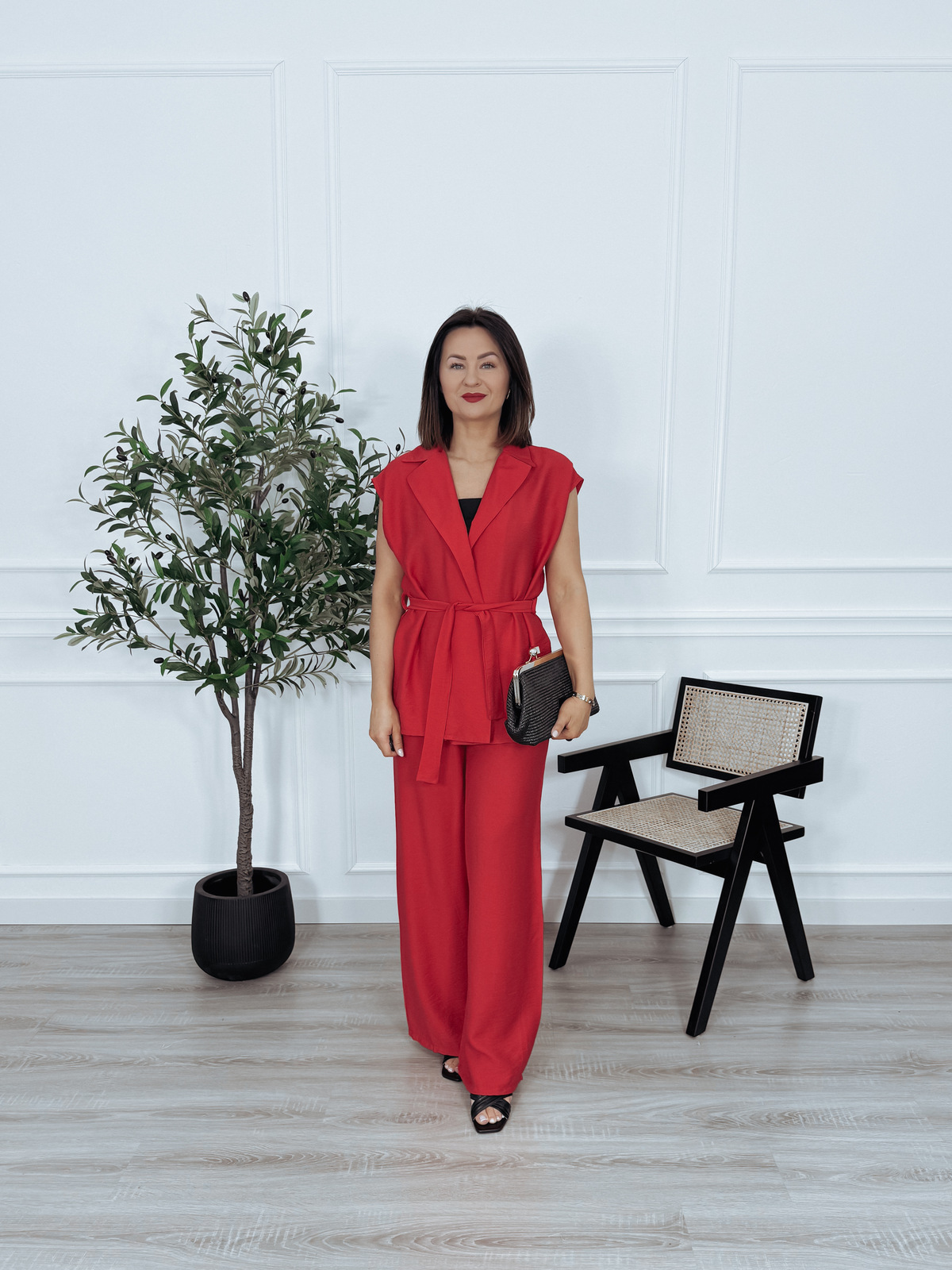 Komplet kamizelka + długie spodnie jasne czerwony MODERN