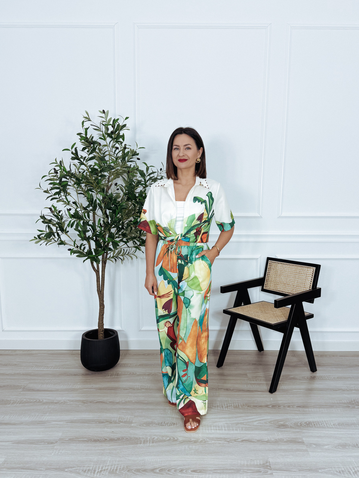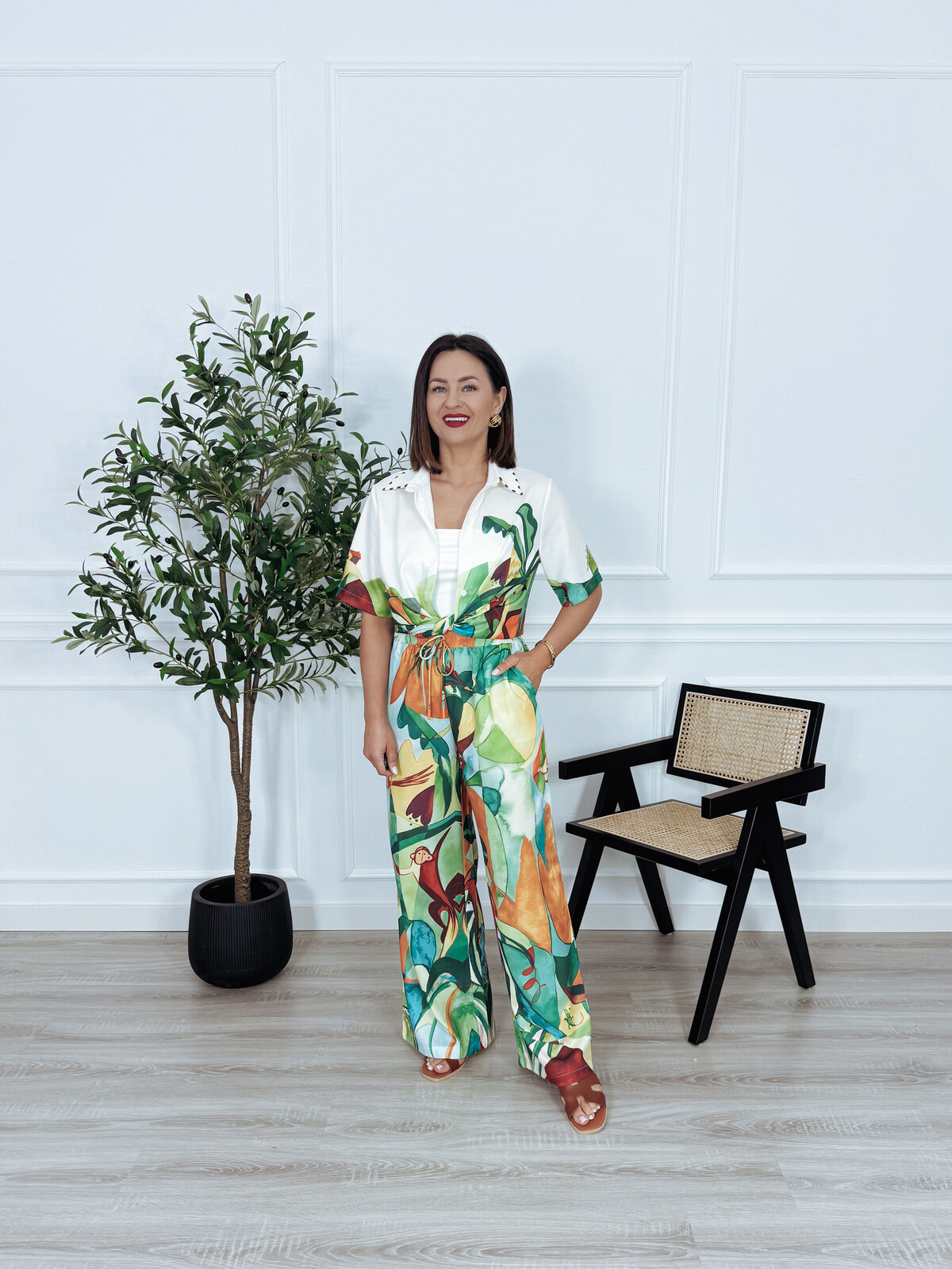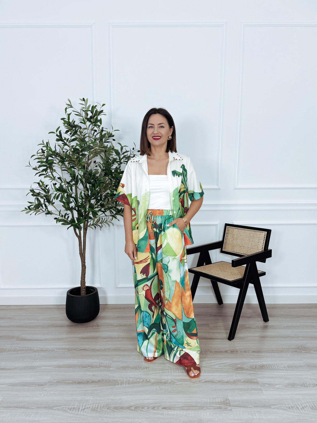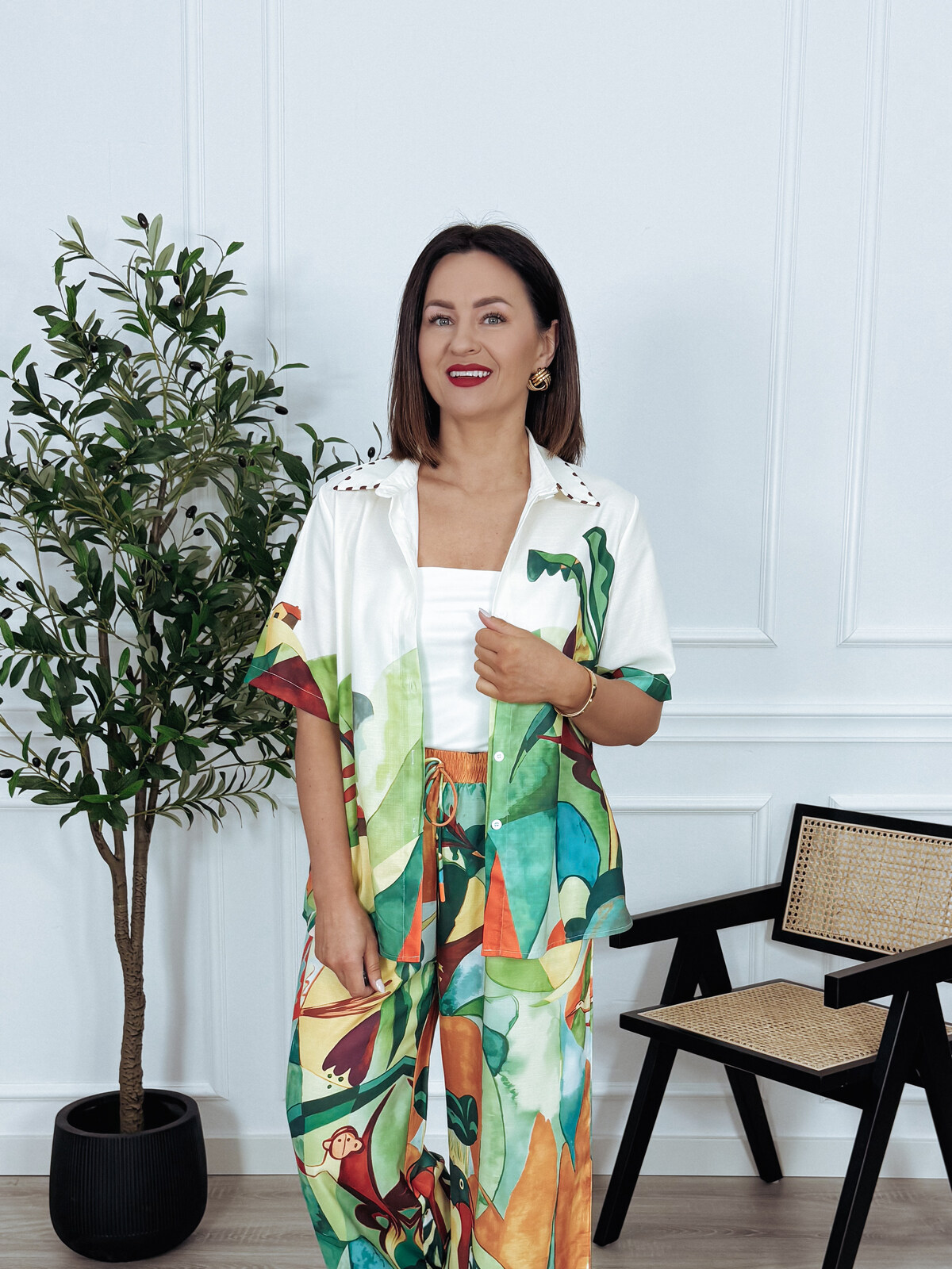 Komplet bawełna i len koszula + spodnie tropikalny wzór PABLO