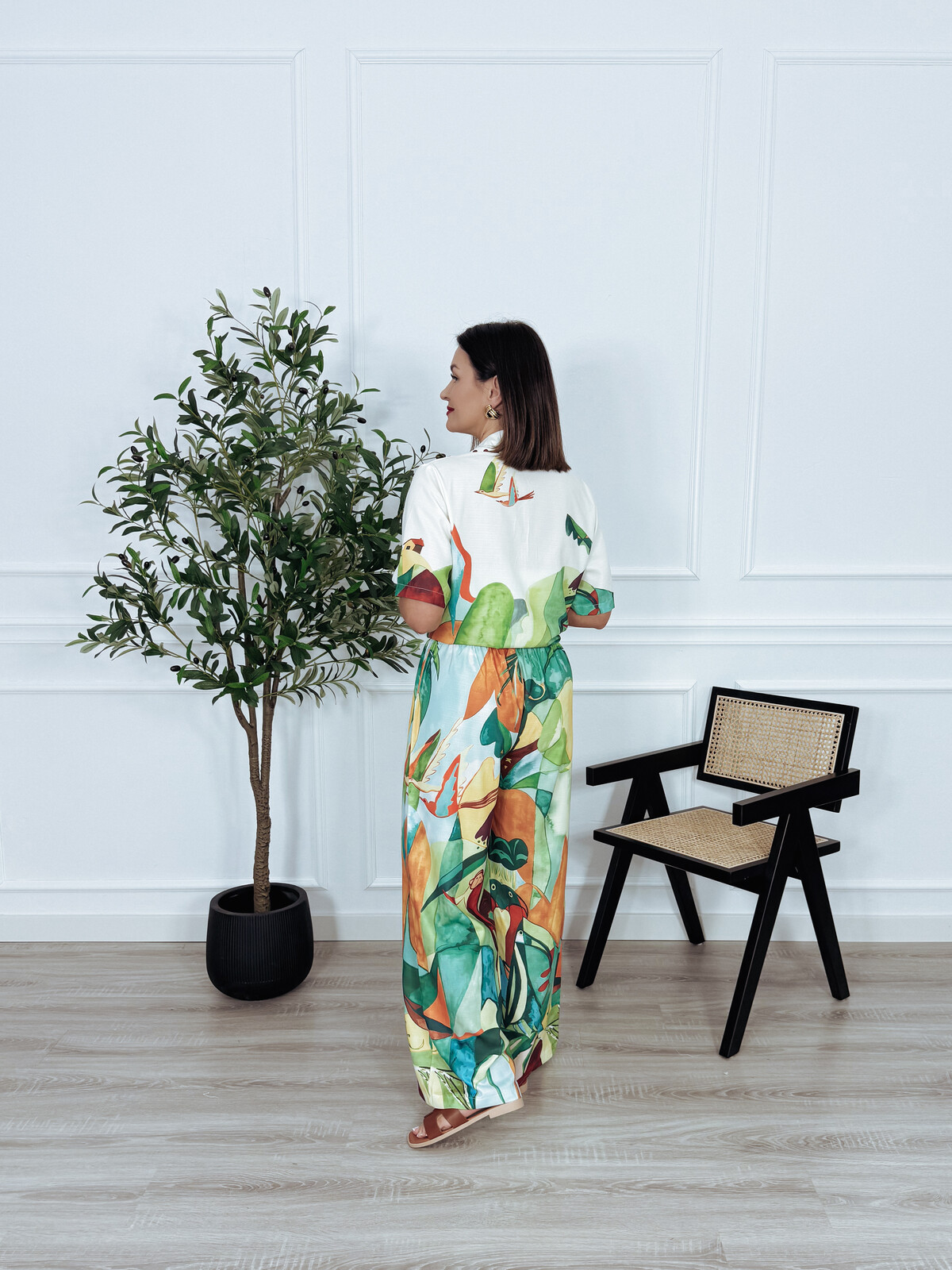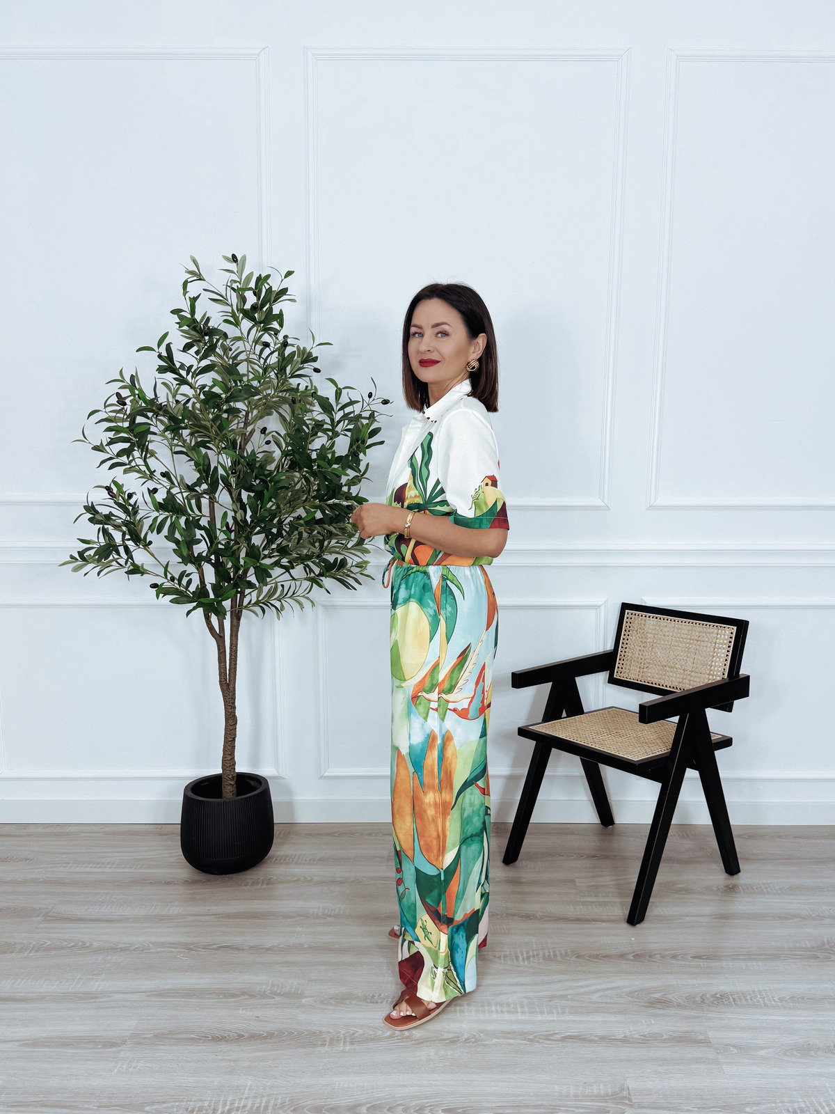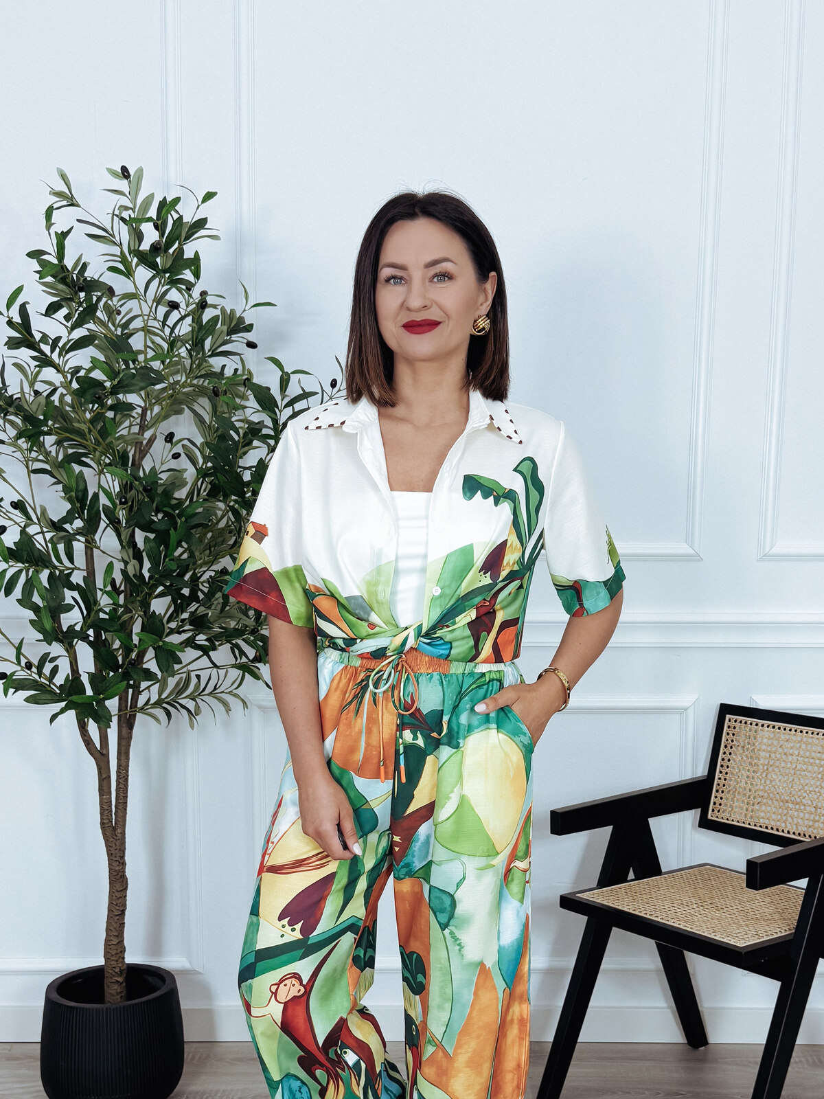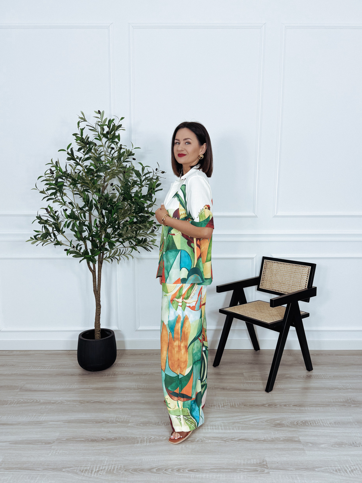 Komplet bawełna i len koszula + spodnie tropikalny wzór PABLO