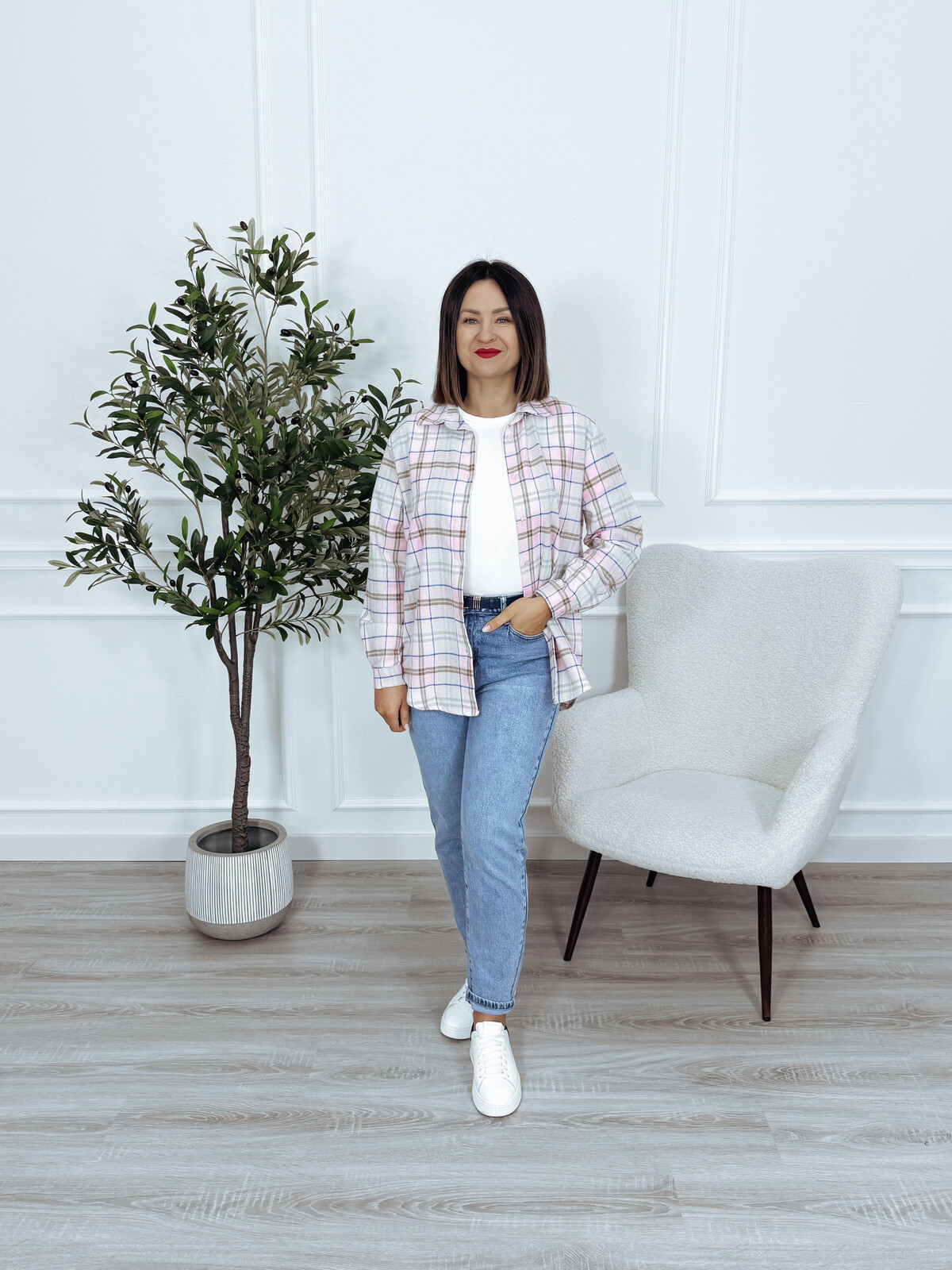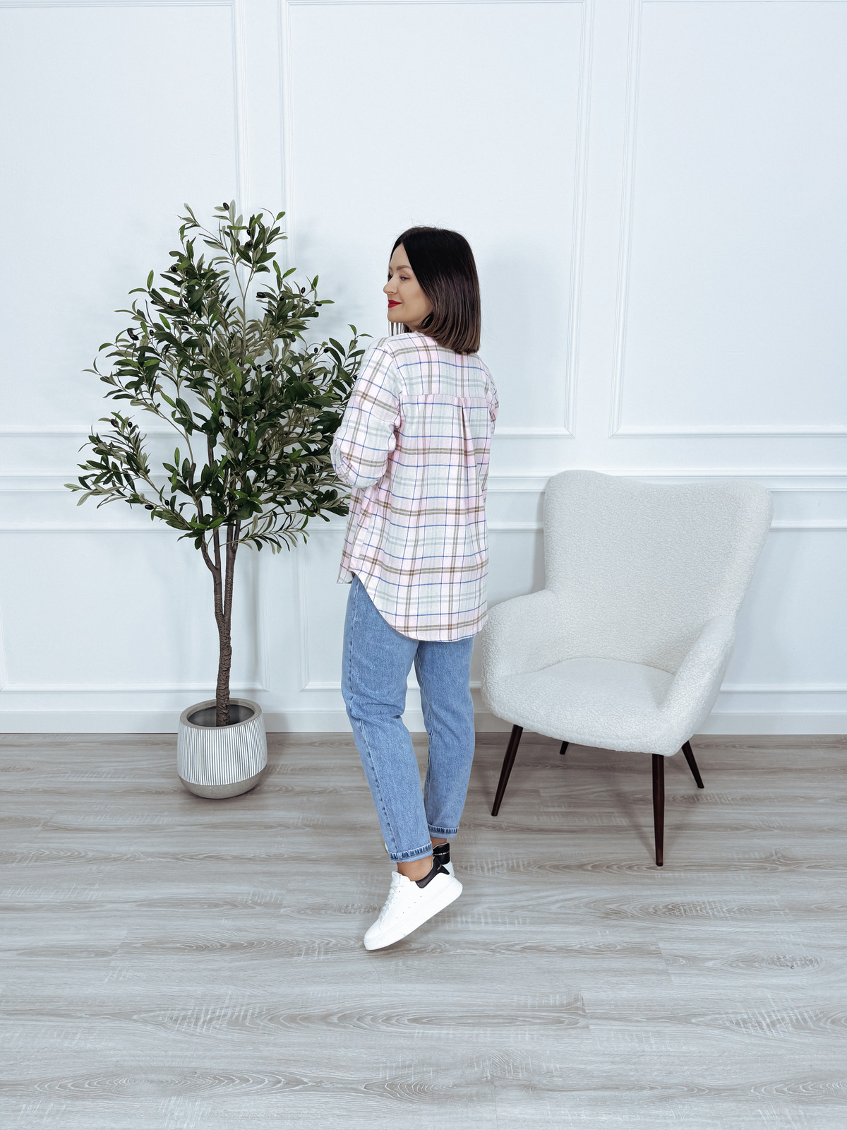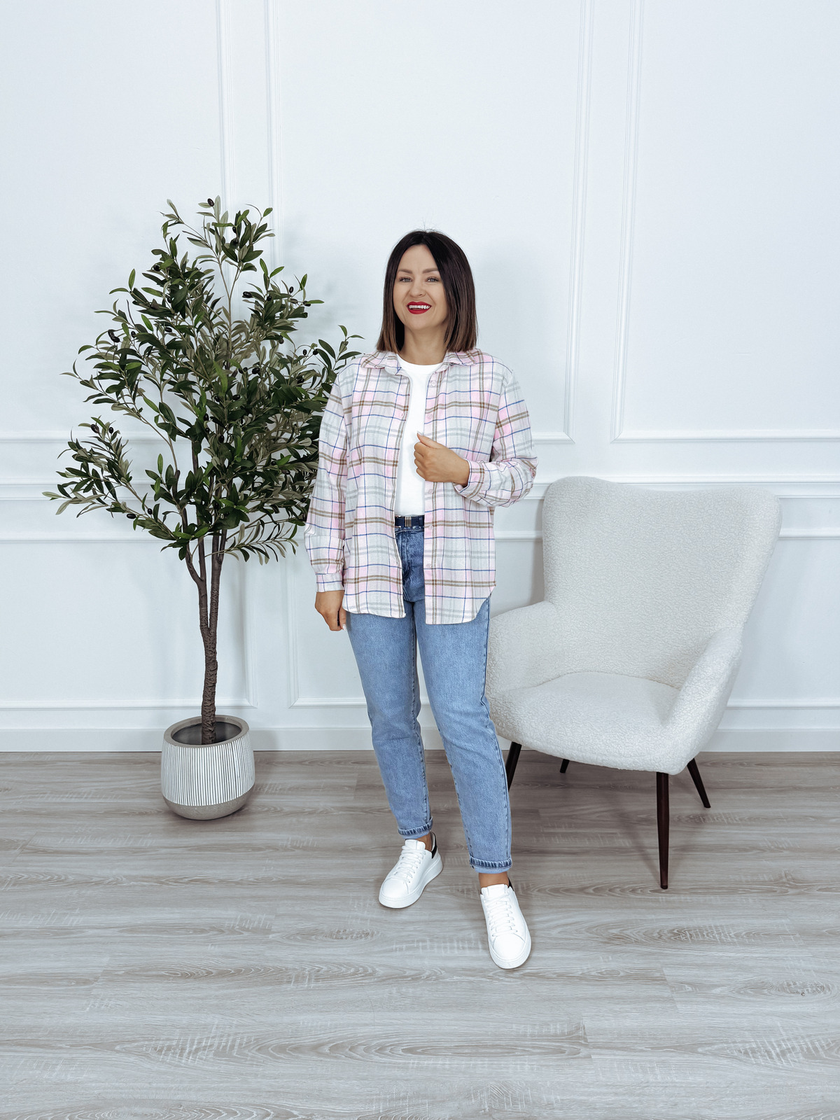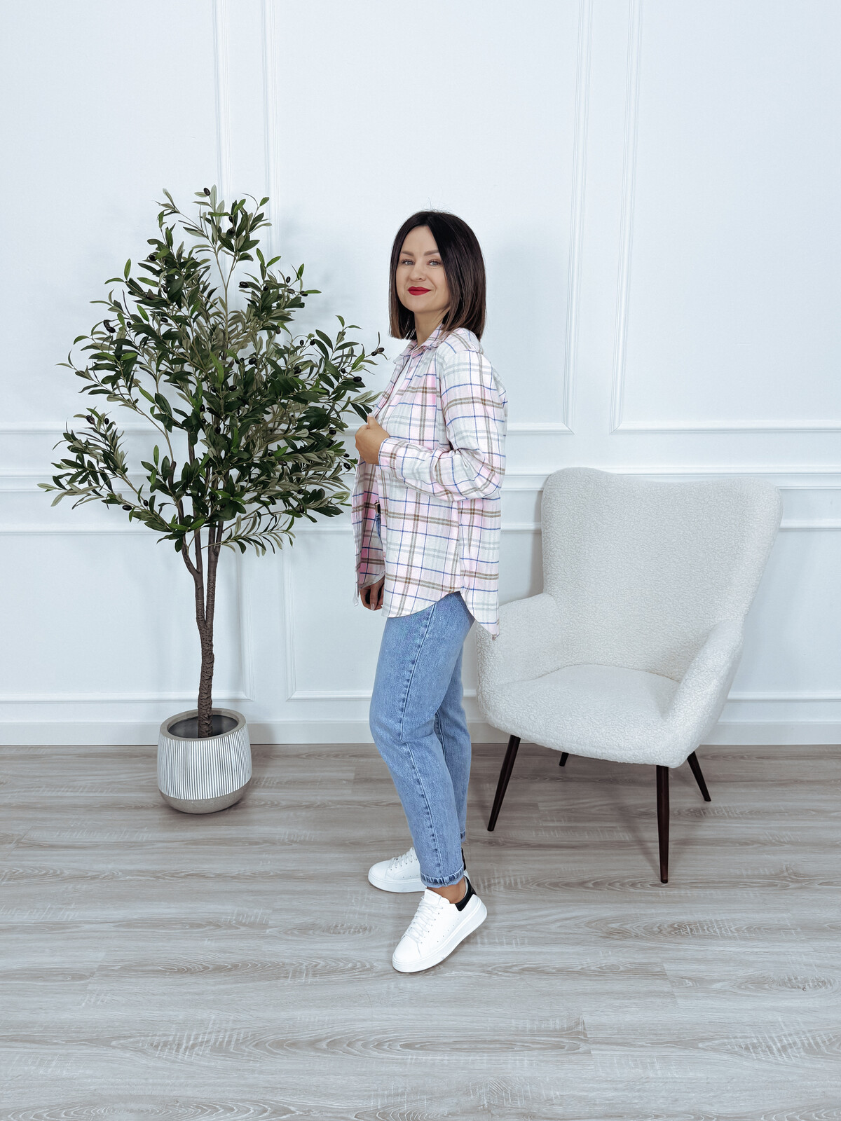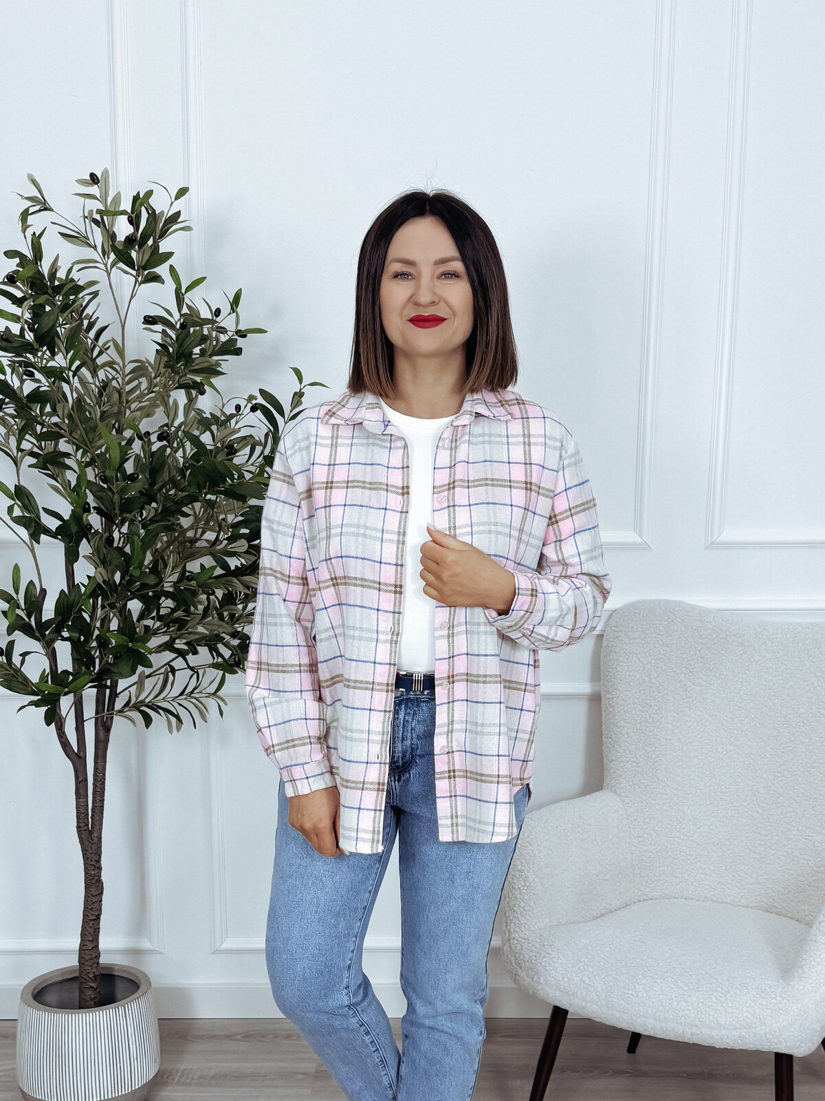Koszula asymetryczna bawełniana w kratkę różowa NUMIA