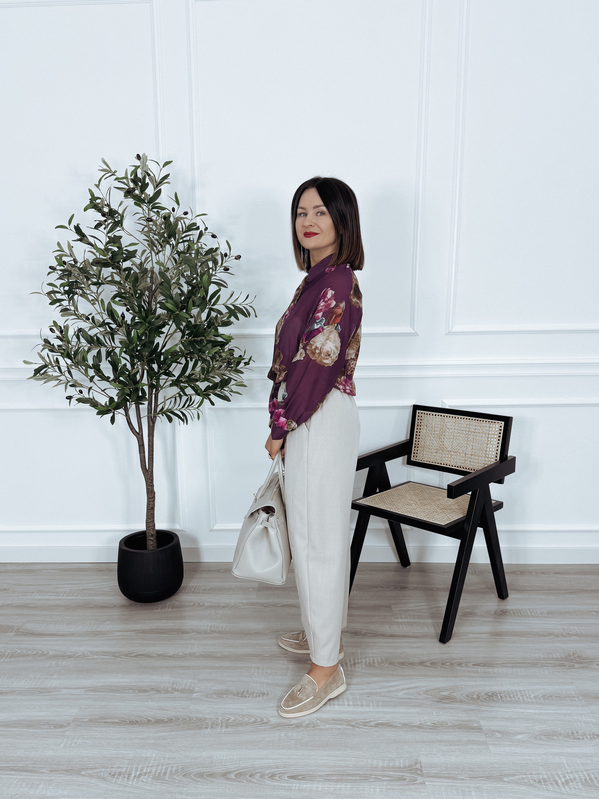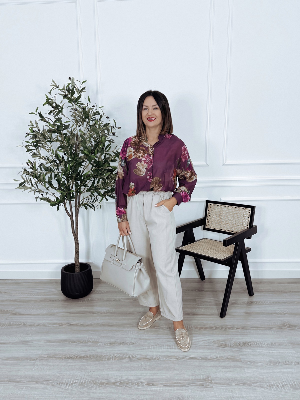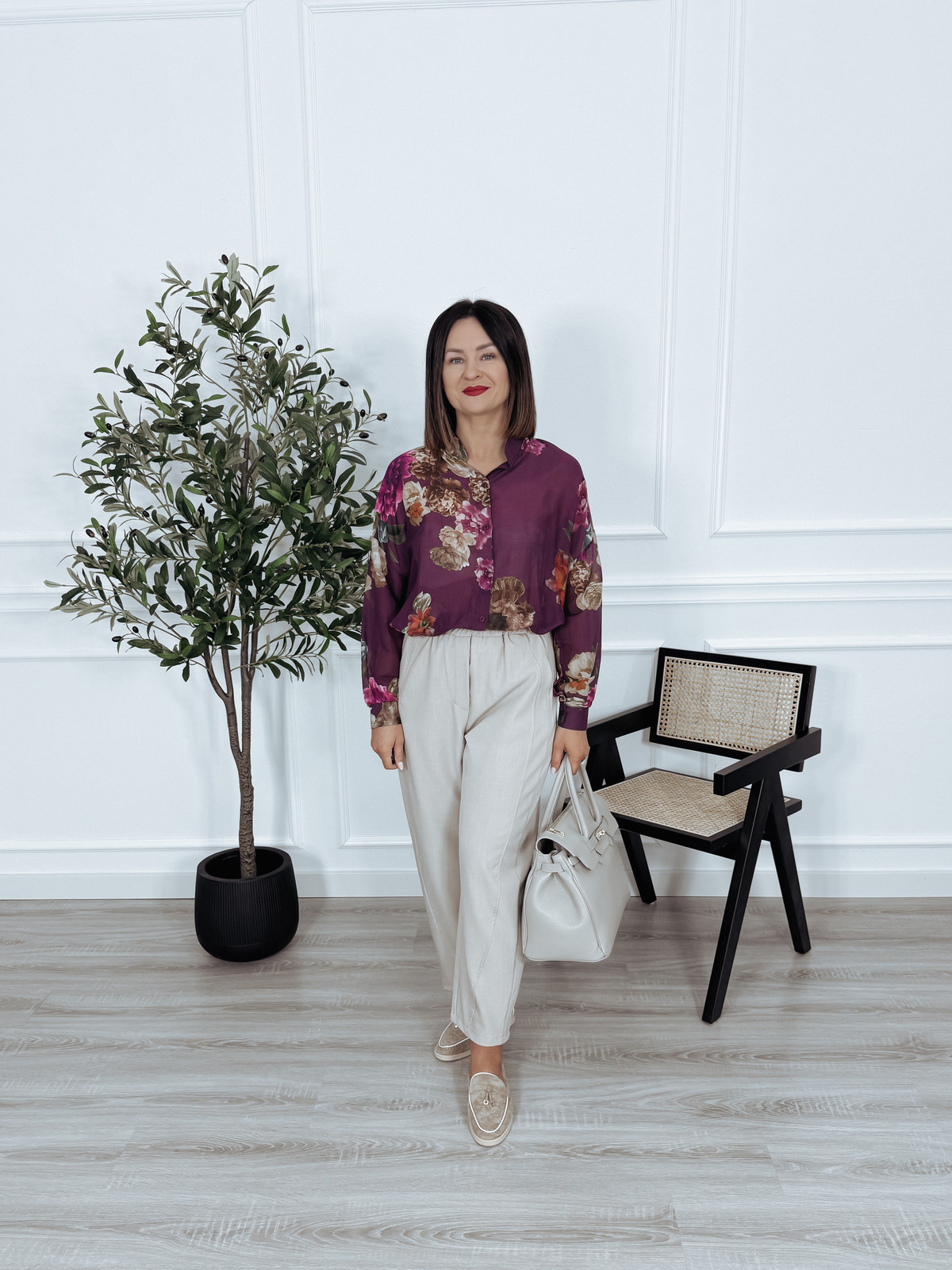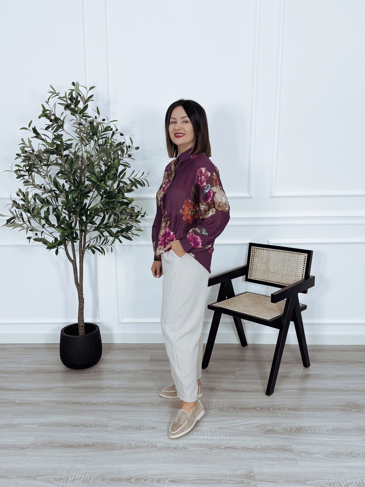 Koszula mgiełka z wiskozy i jedwabiu fioletowa w kwiaty ENNI