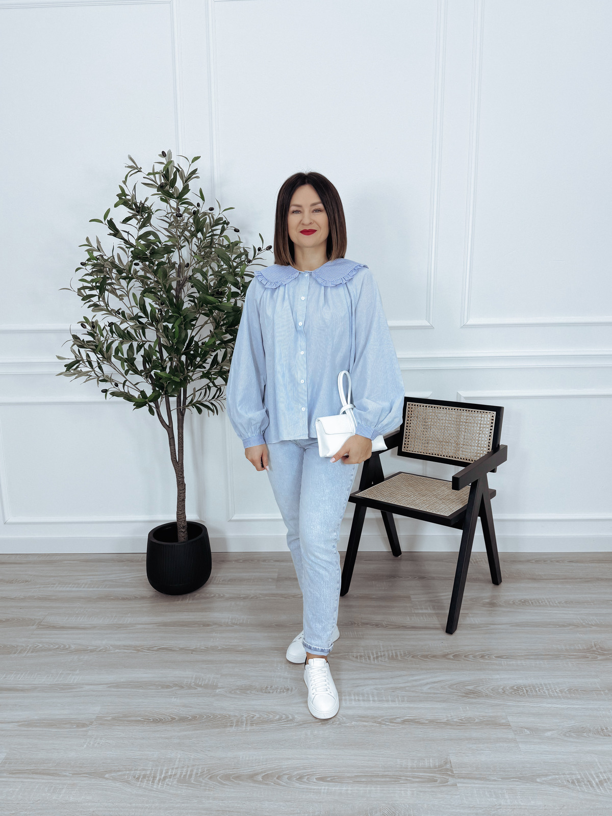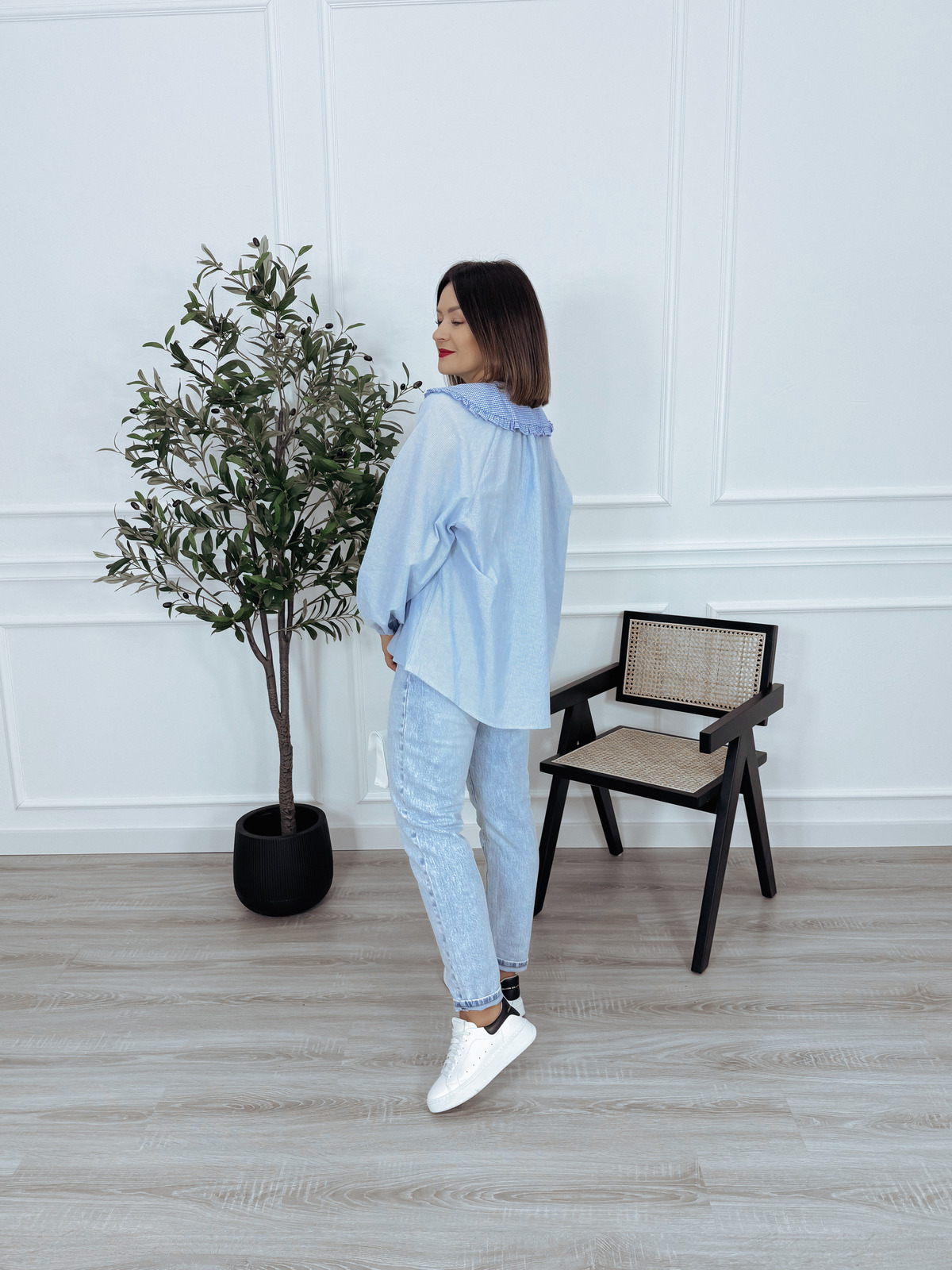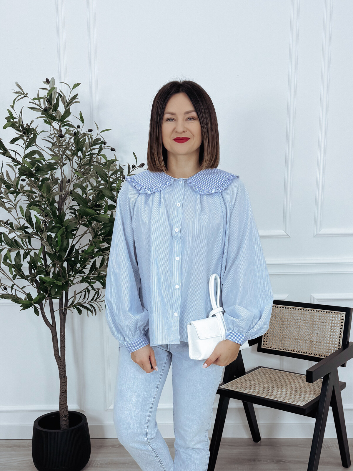 Koszula oversize z kołnierzem w kratkę błękitna VIKI