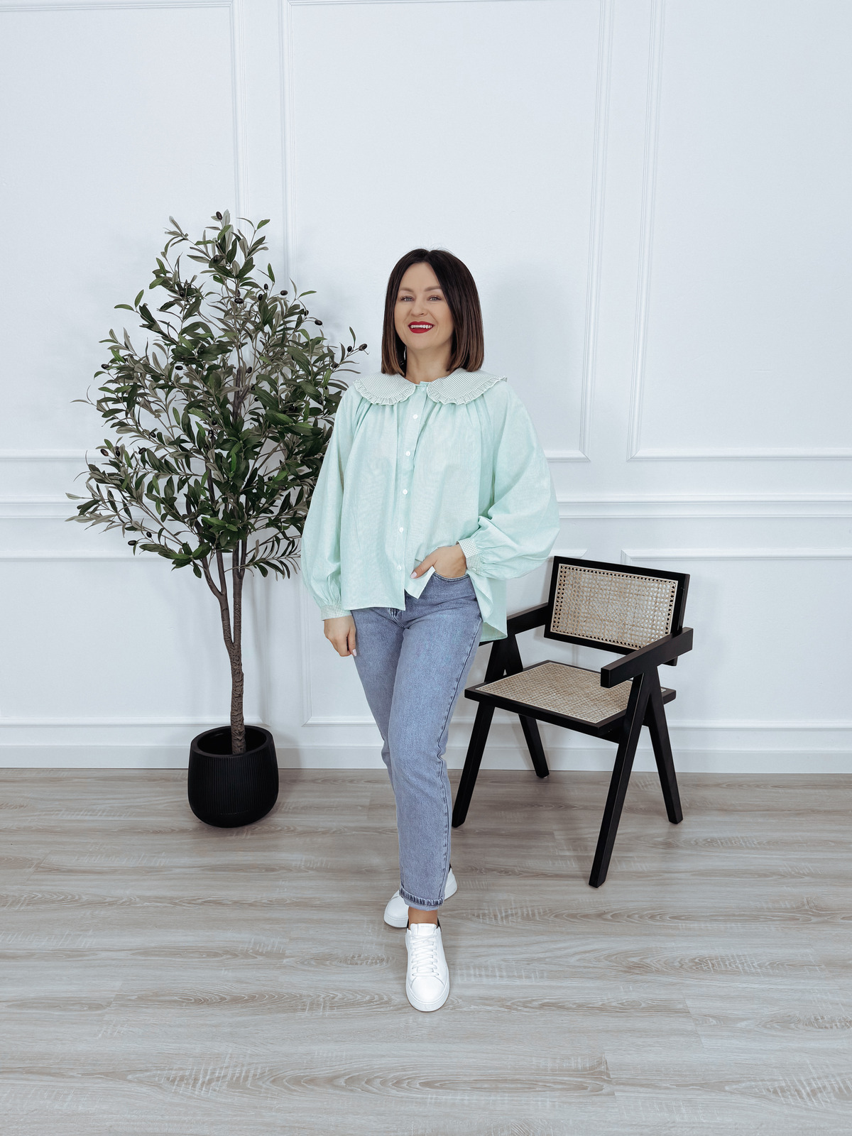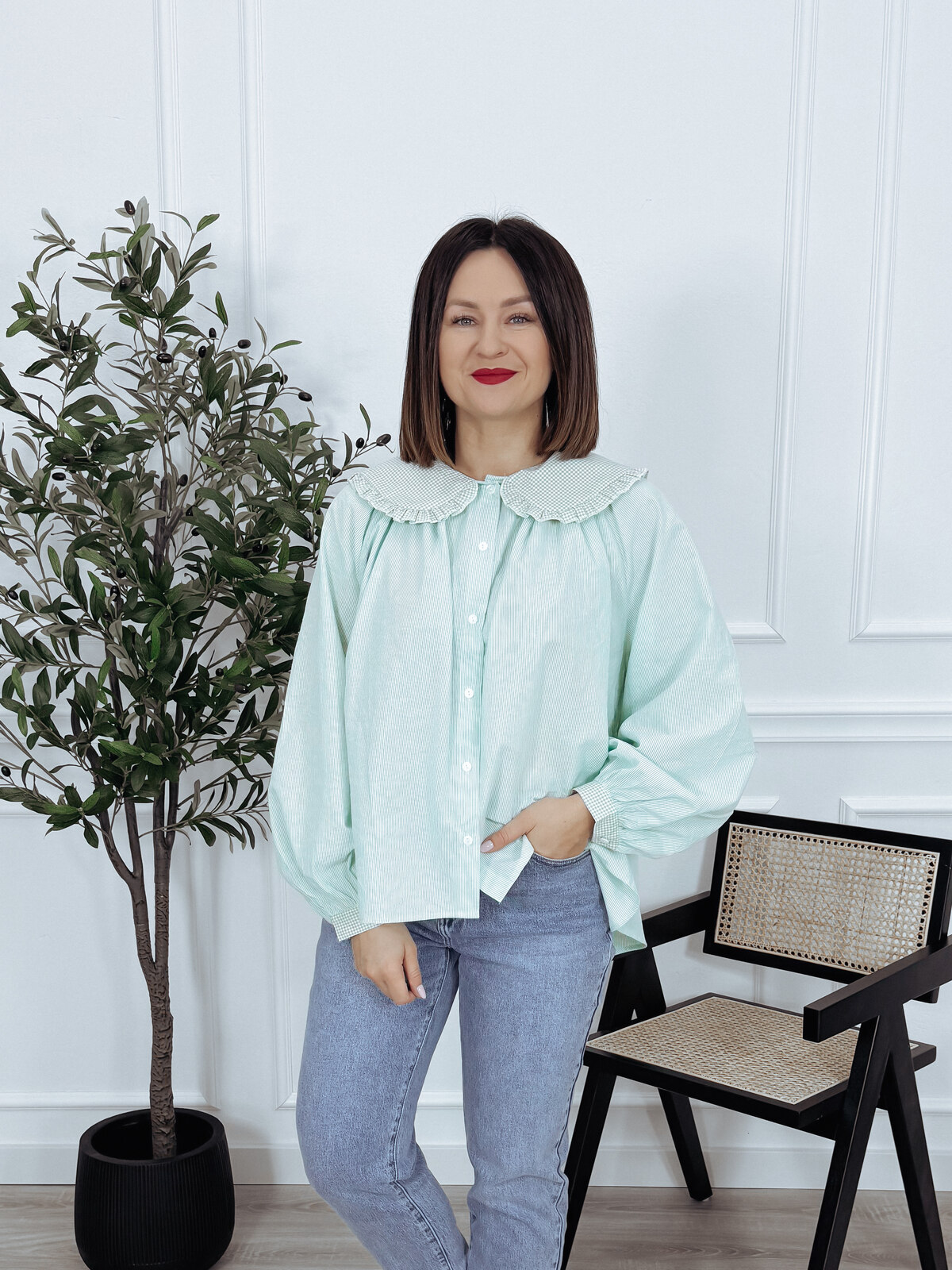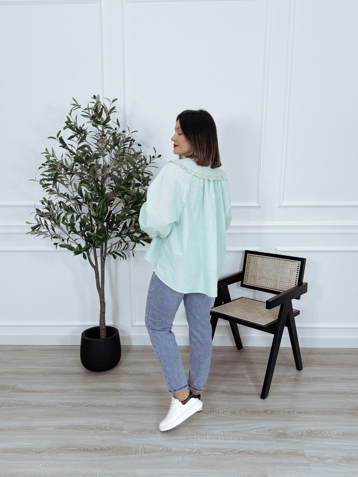 Koszula oversize z kołnierzem w kratkę miętowa VIKI