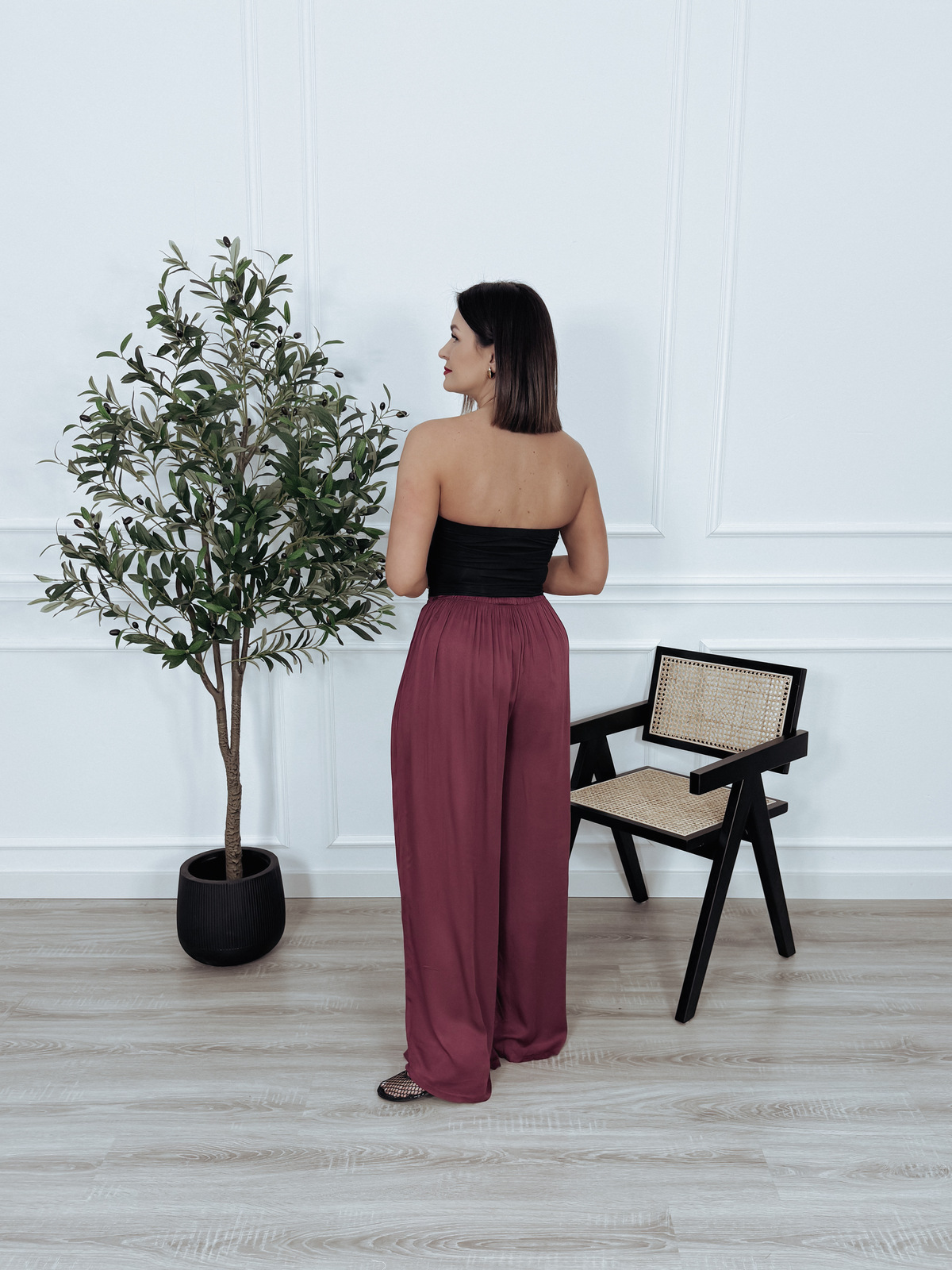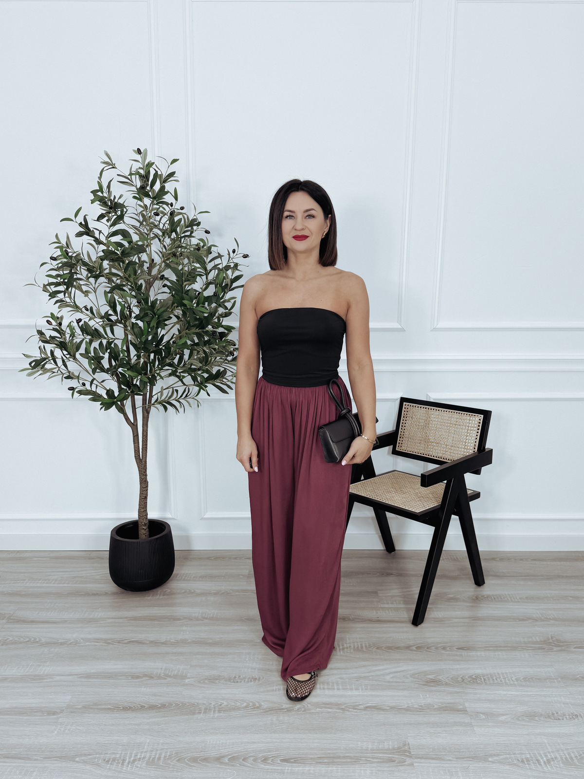 Krótki top bez ramiączek, od wewnętrznej strony wykończony silikonowym paskiem, który zapobiega zsuwaniu się i zapewnia komfort noszenia. Doskonale sprawdzi się w zestawieniu z koszulą, marynarką lub swetrem, a także noszony samodzielnie – w połączeniu ze spodniami lub spódnicą. 🖤