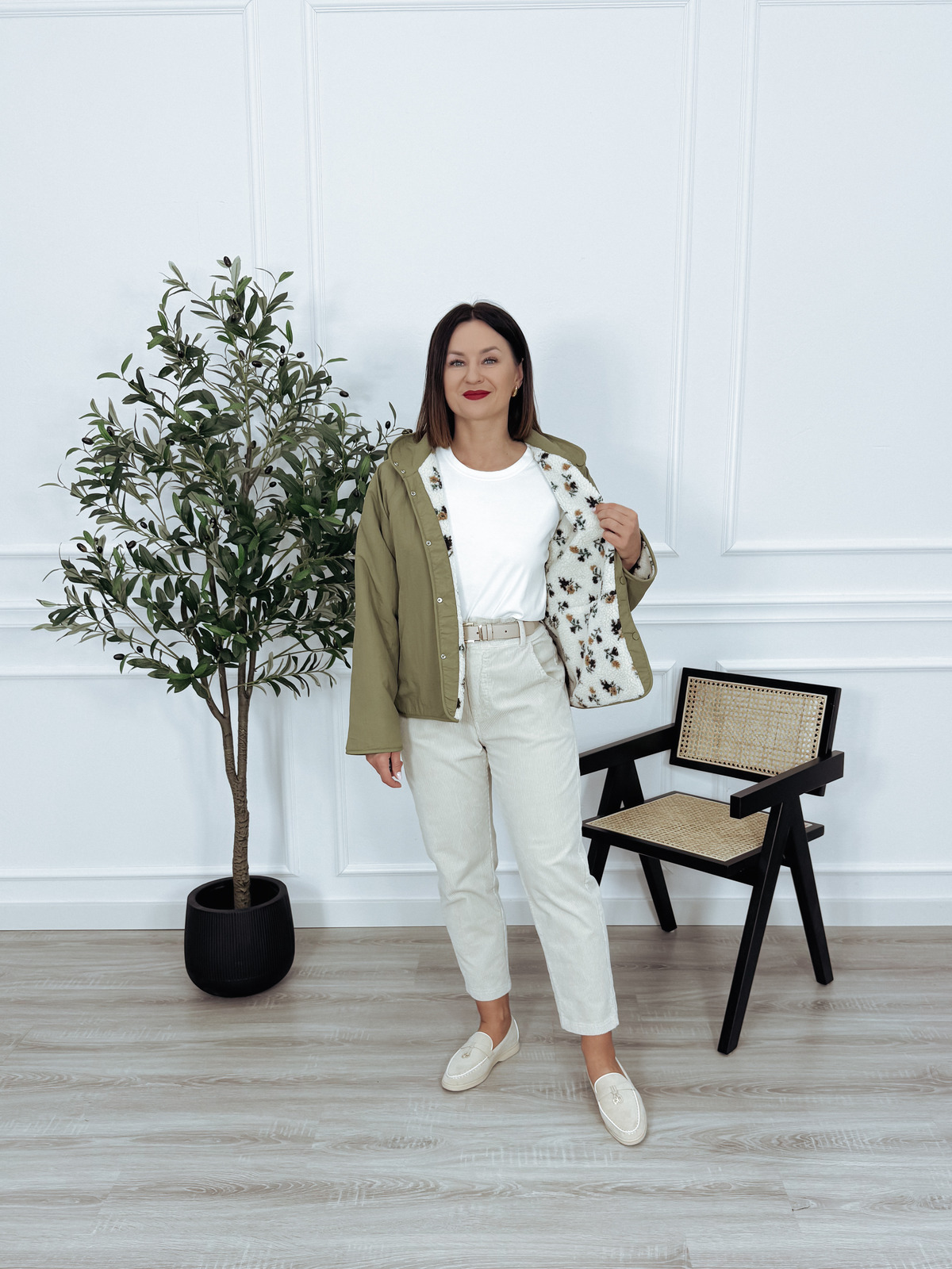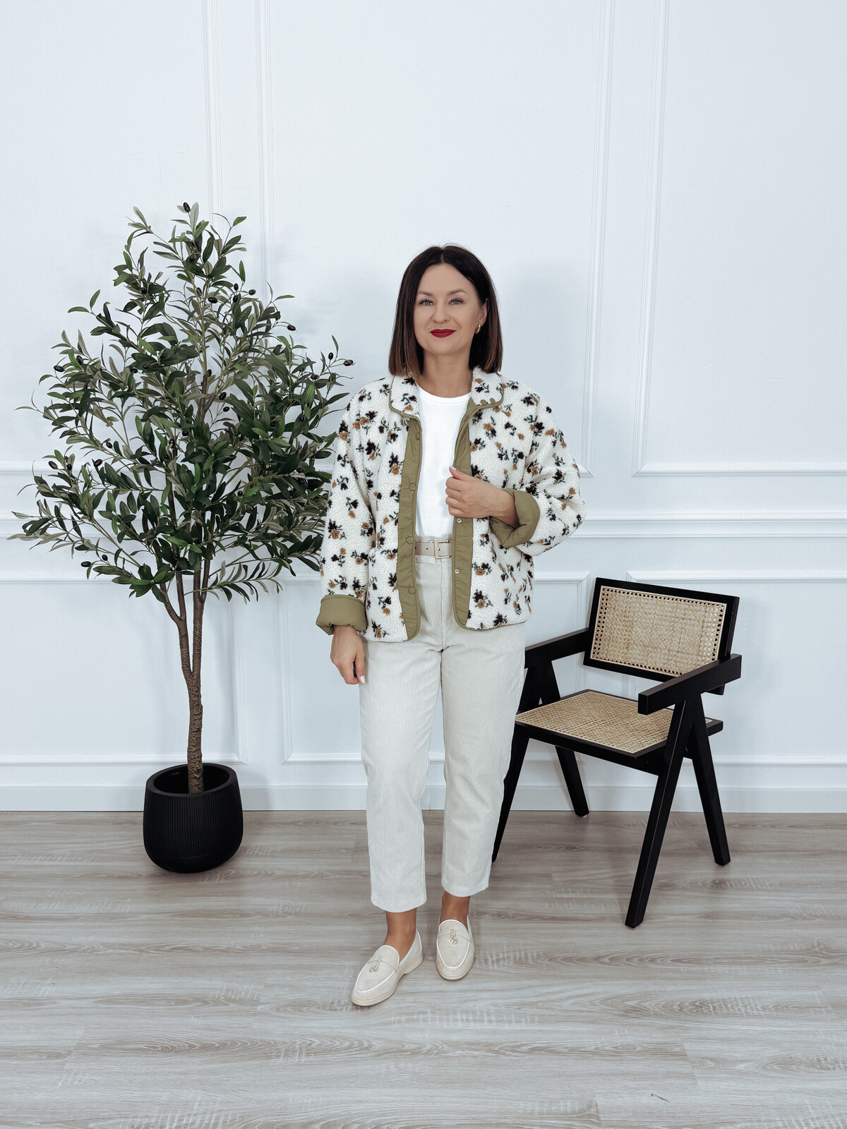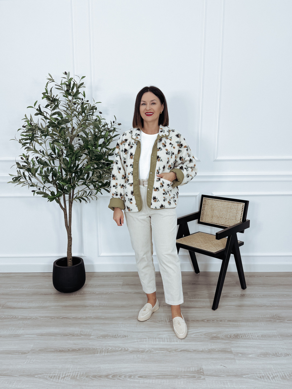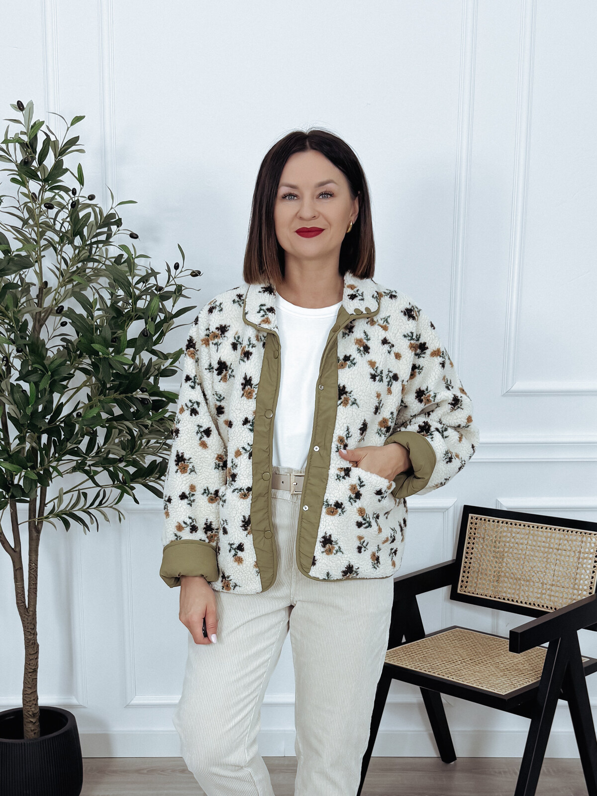 Kurtka dwustronna baranek/kwiatowy wzór NICOLE
