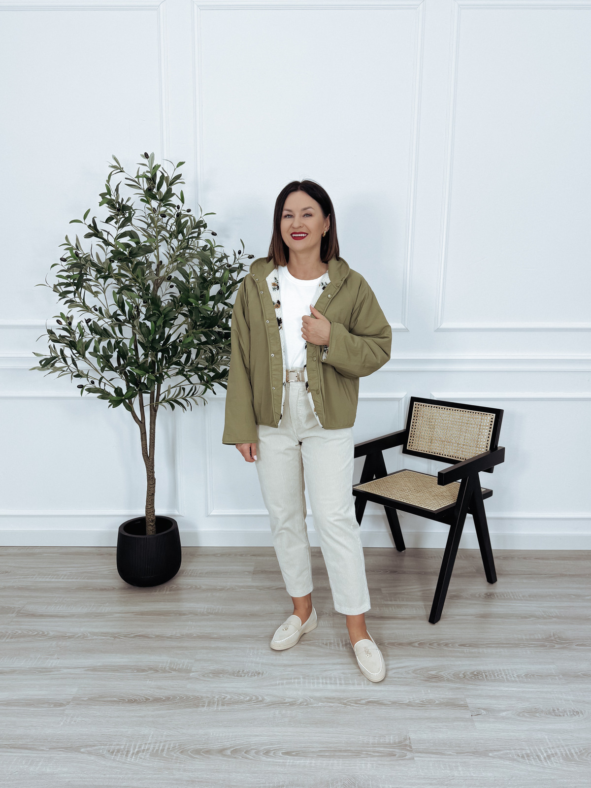 Wyjątkowa dwustronna kurtka która z jednej strony posiada miękki i ciepły polar, a z drugiej dekoracyjny materiał w duże  kwiaty.  Model posiada kieszenie i jest zapinana na napy.🖤