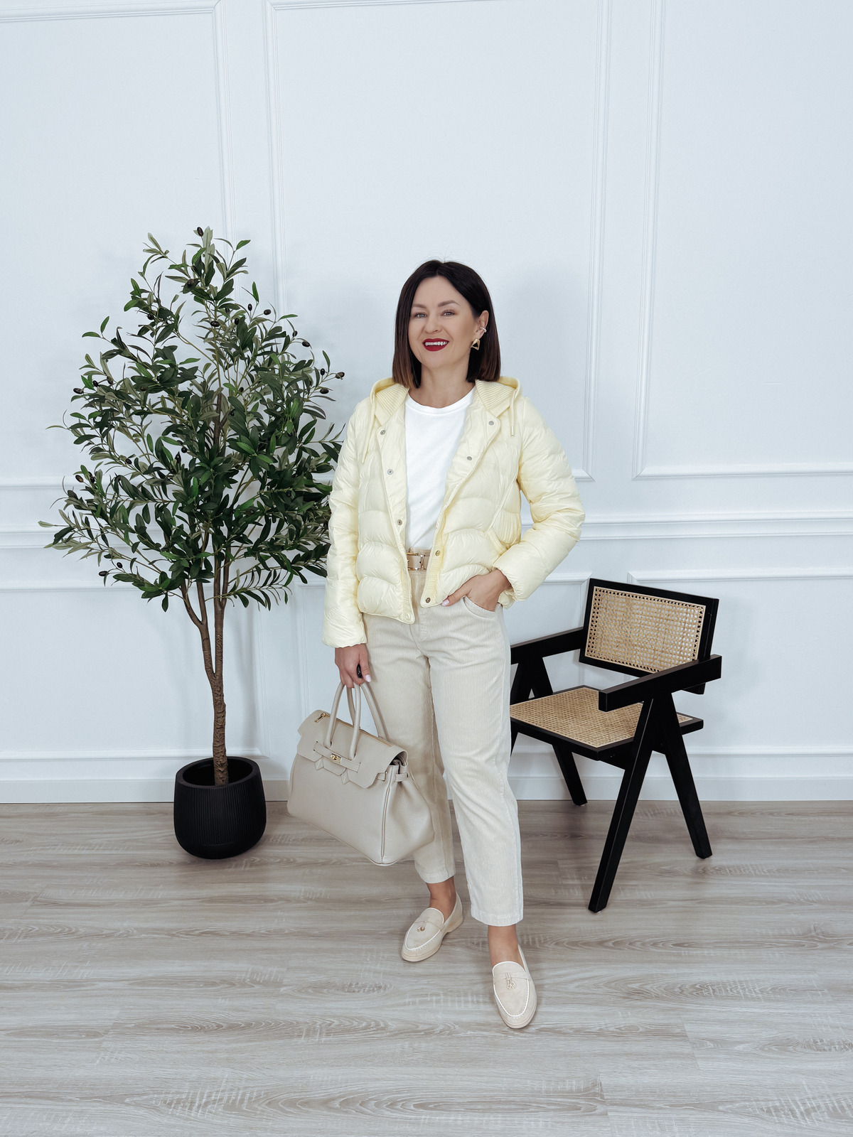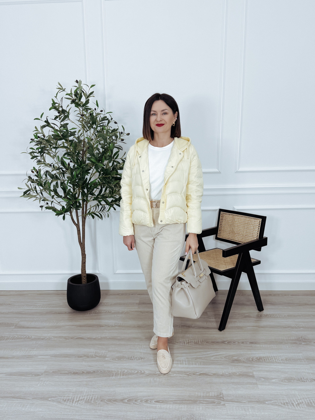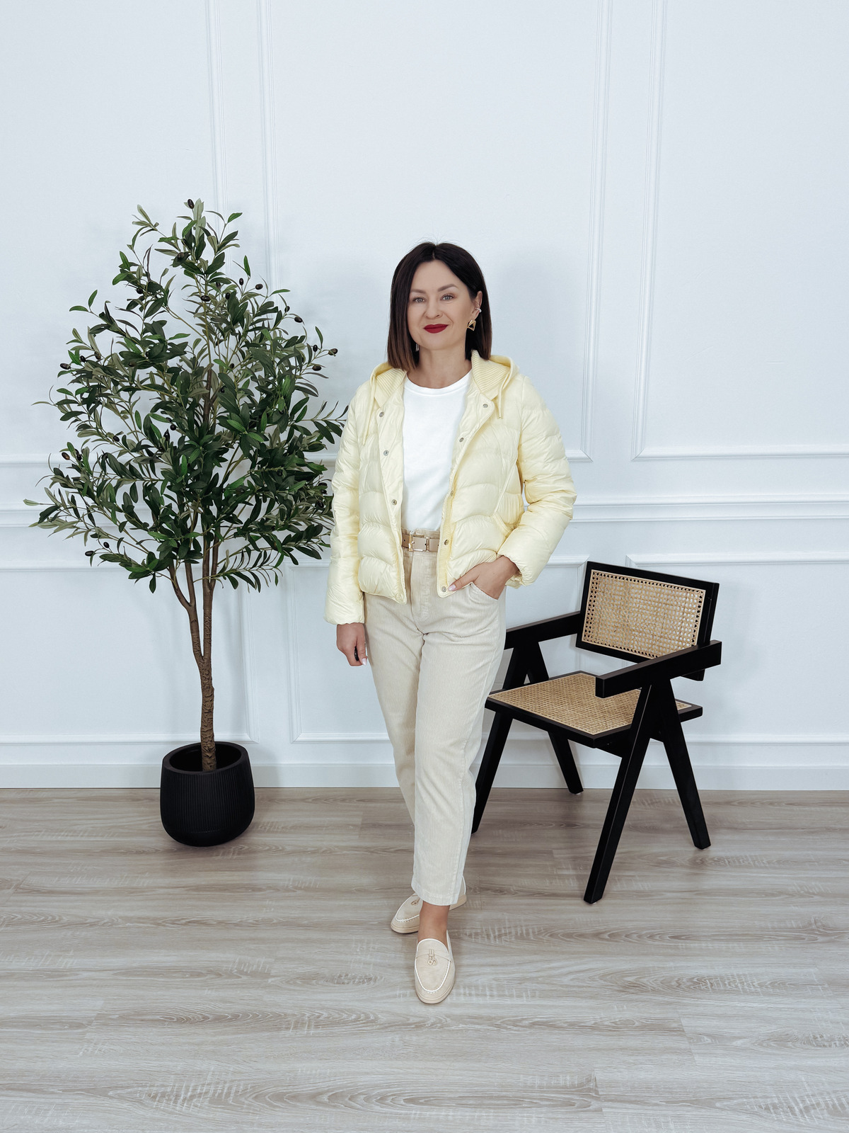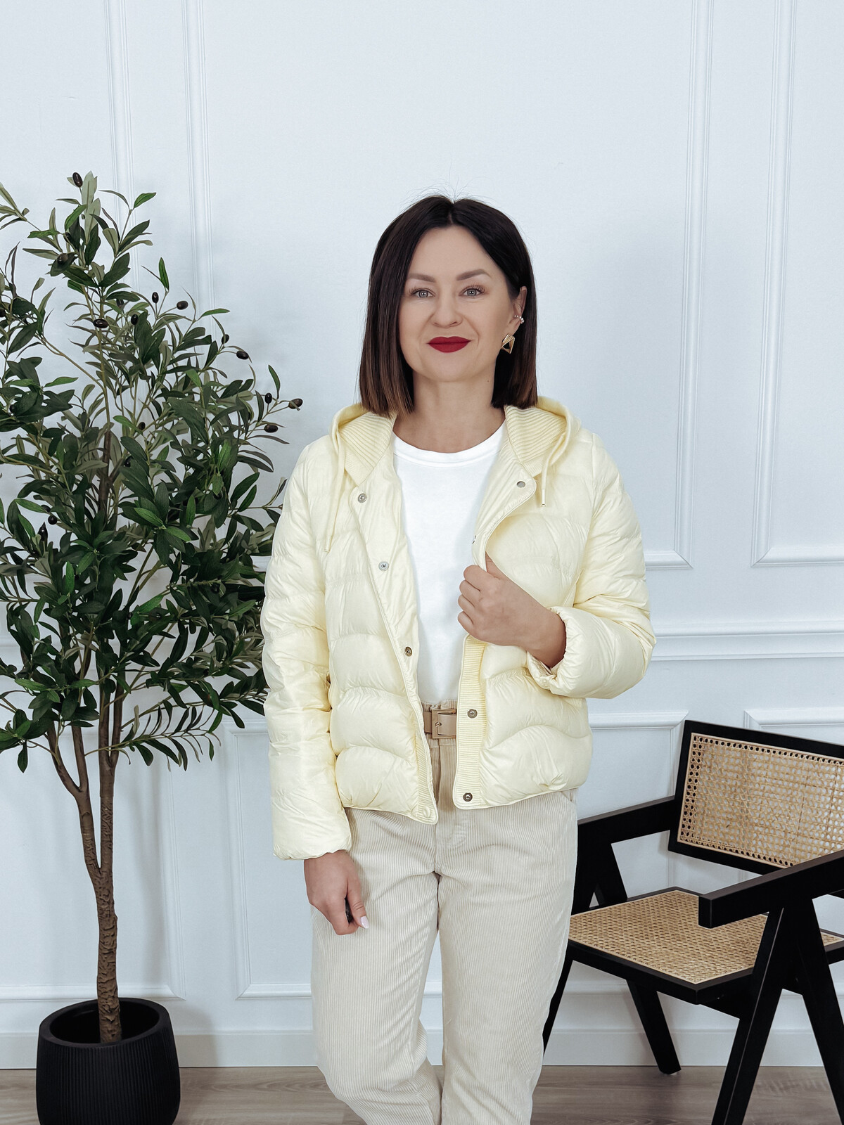 Kurtka puchowa z kapturem i naturalnym puchem masełko SPRING