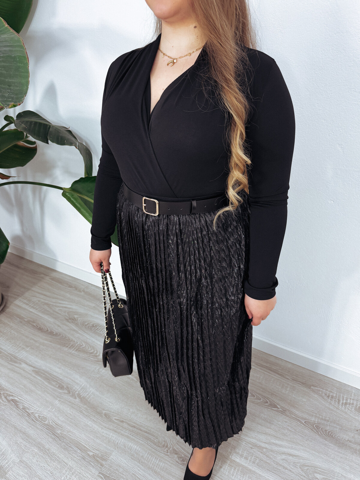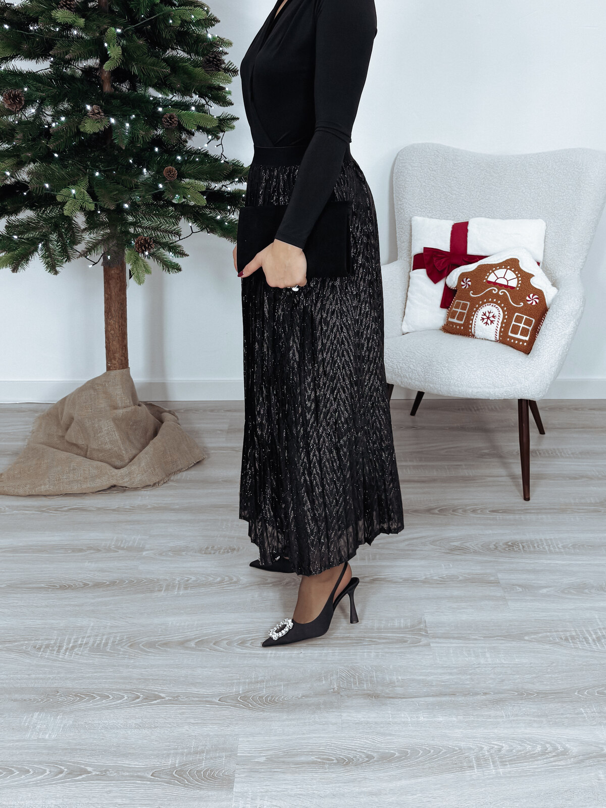 Spódnica maxi plisowana z ozdobnego materiału czarna SONIA