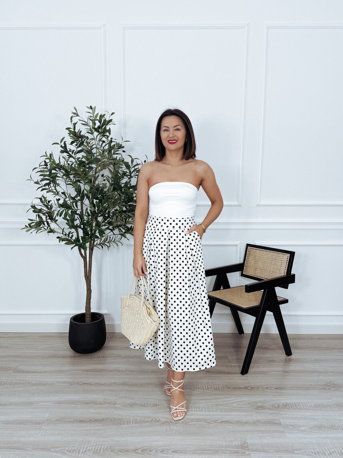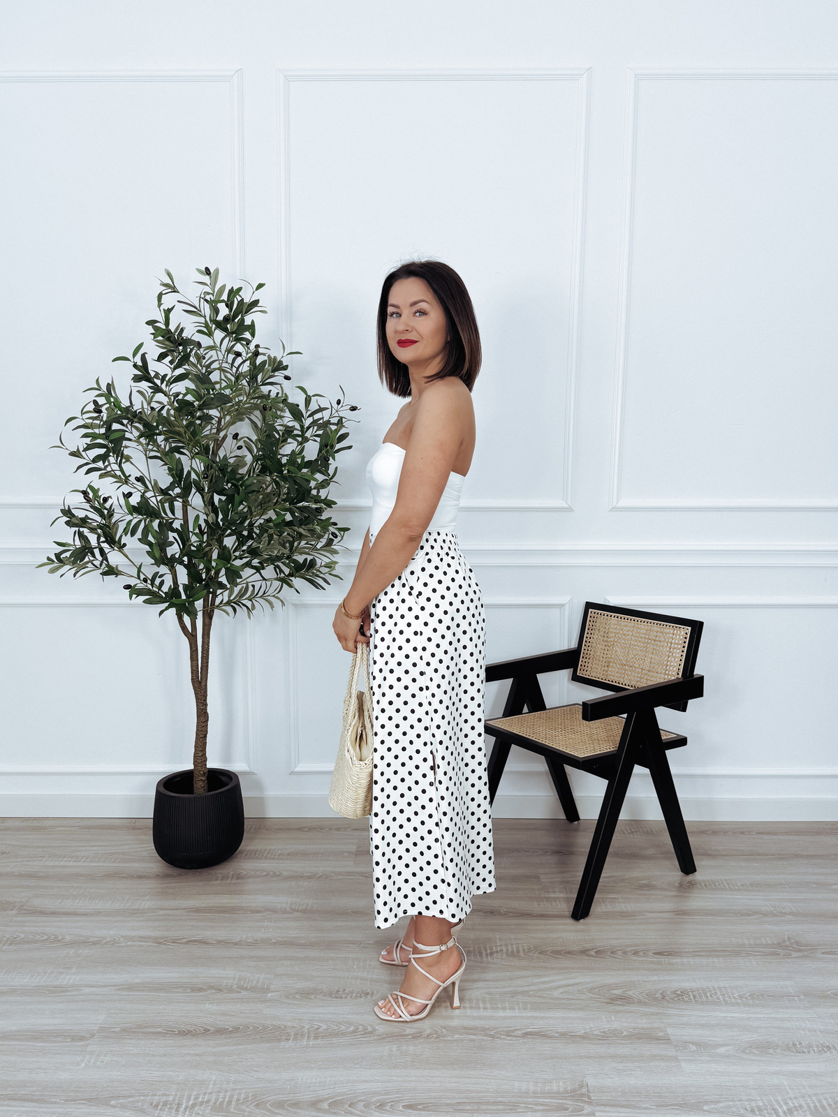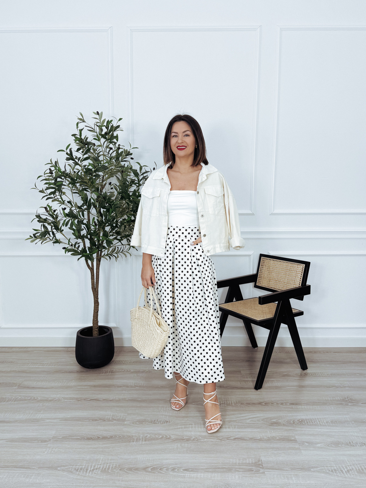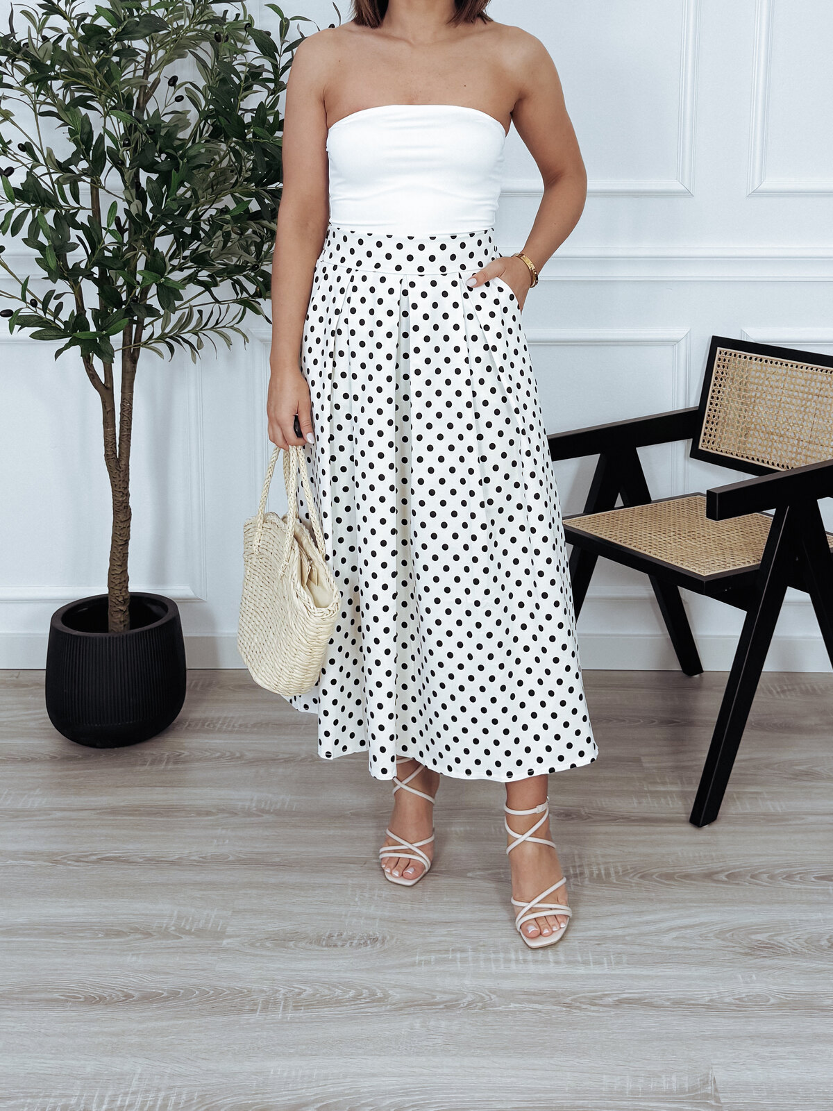 Spódnica z bawełny granatowa w grochy CARLOTT