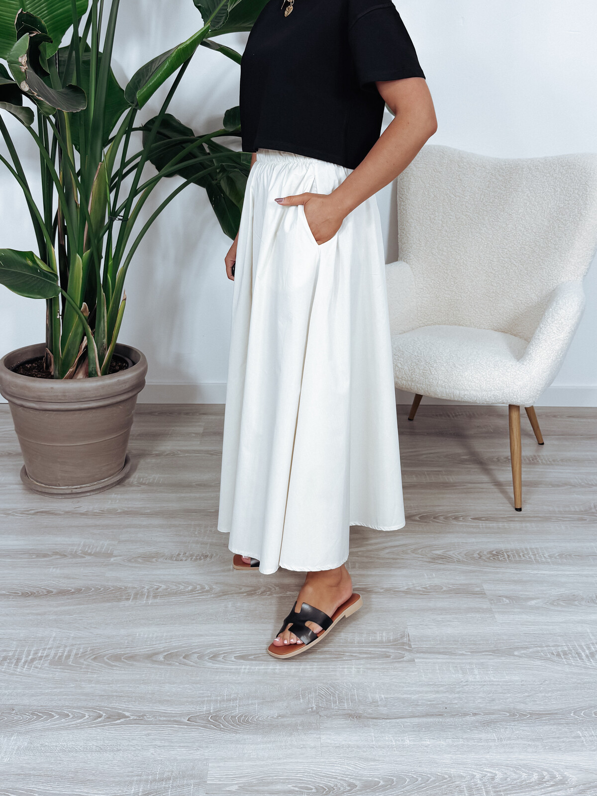 Spodnie z bardzo szerokimi nogawkami uszyte z bawełny.  W pasie gumka, po bokach kieszenie. Zestawisz je i na elegancko i na sportowo. Mega stylowe!