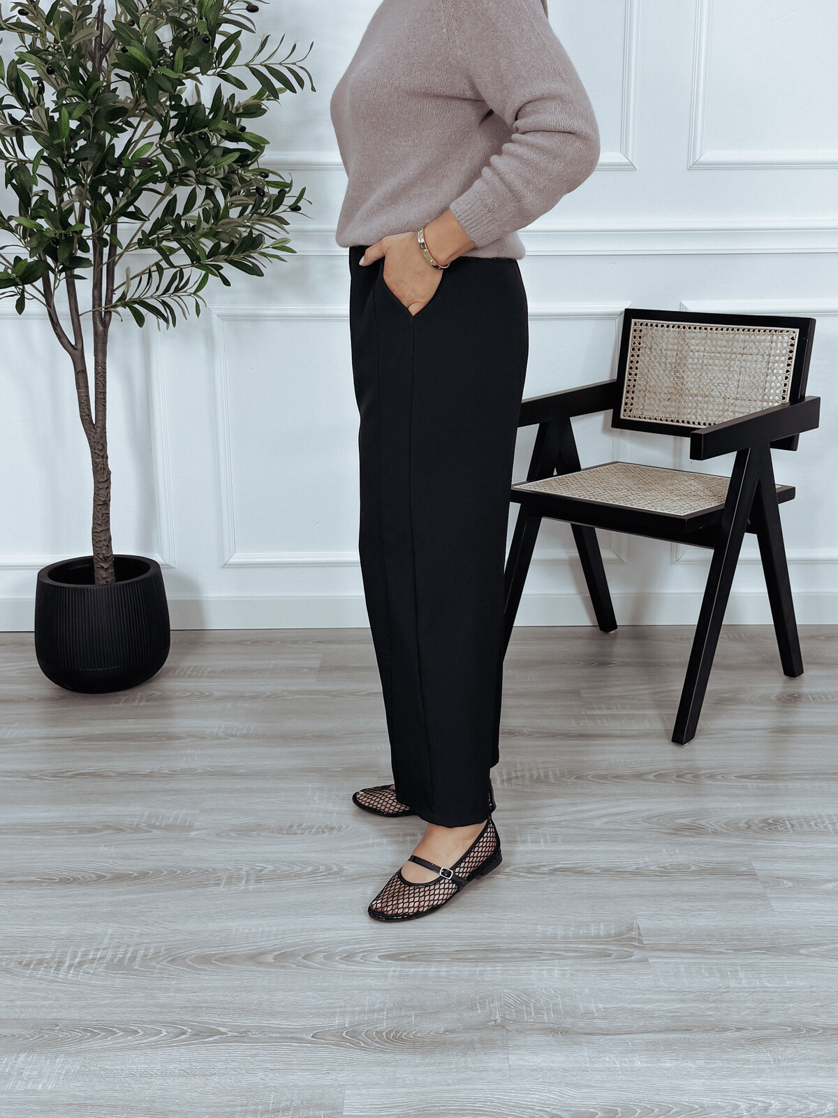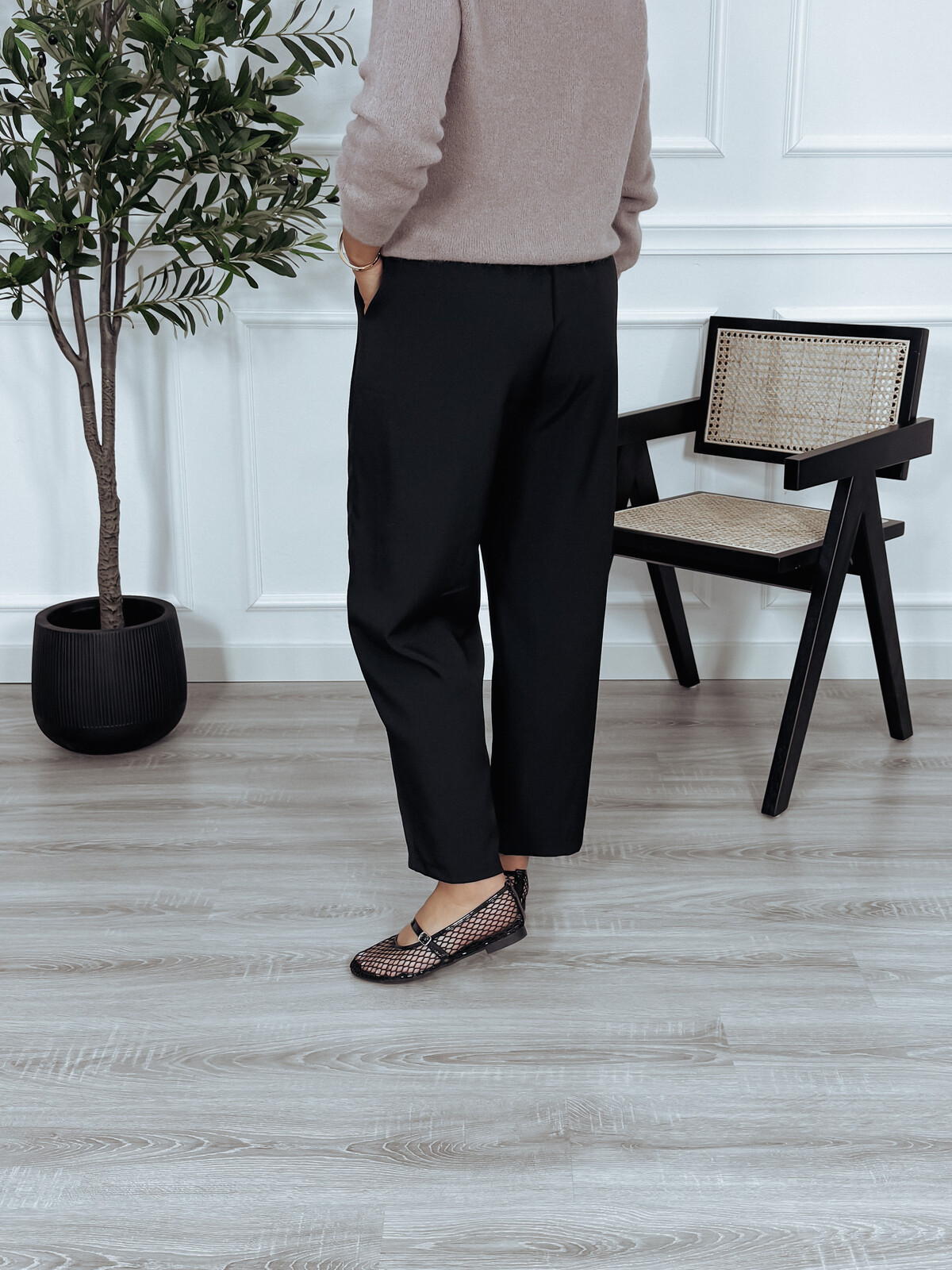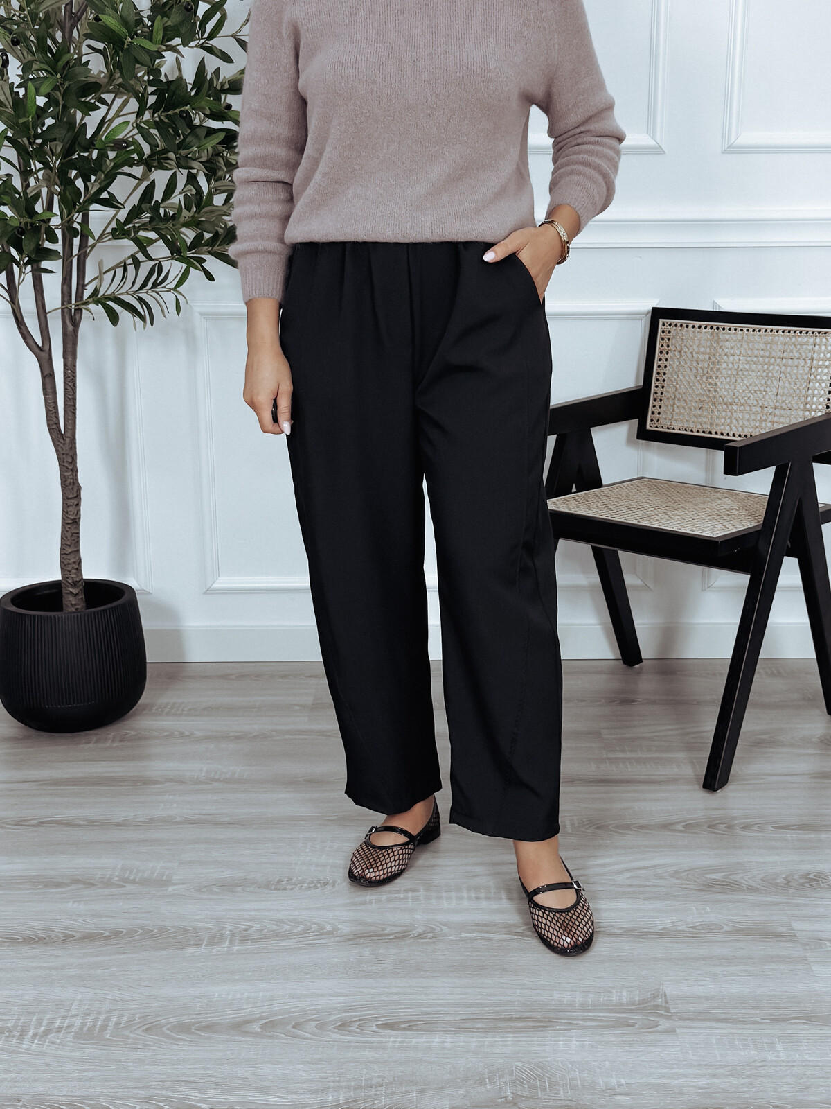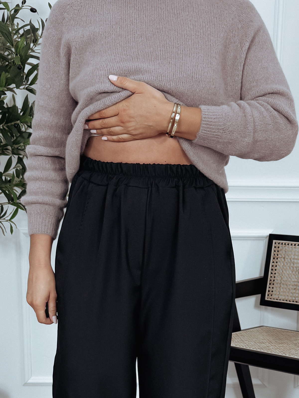Eleganckie spodnie z gumką w pasie w fasonie typu "ballon" - luźne w biodrach i kolanach. Genialna baza do stylizacji przez cały rok.  🖤