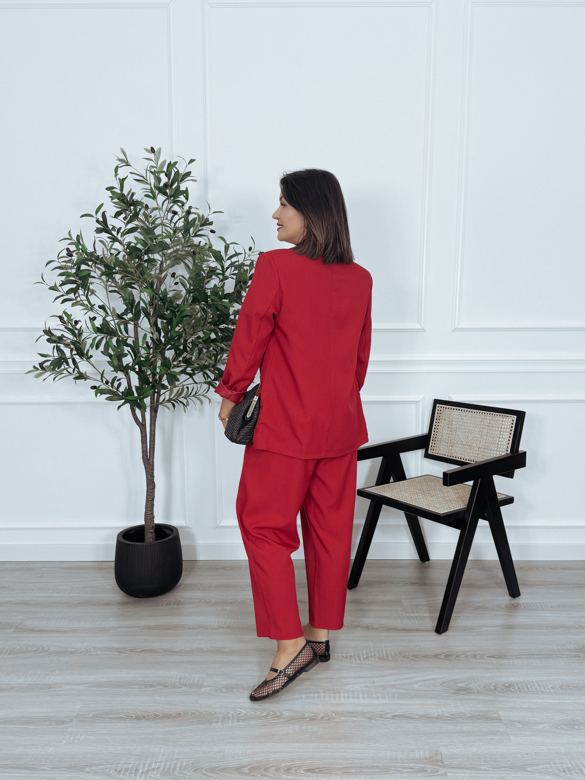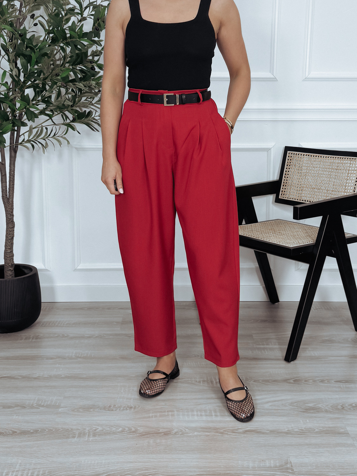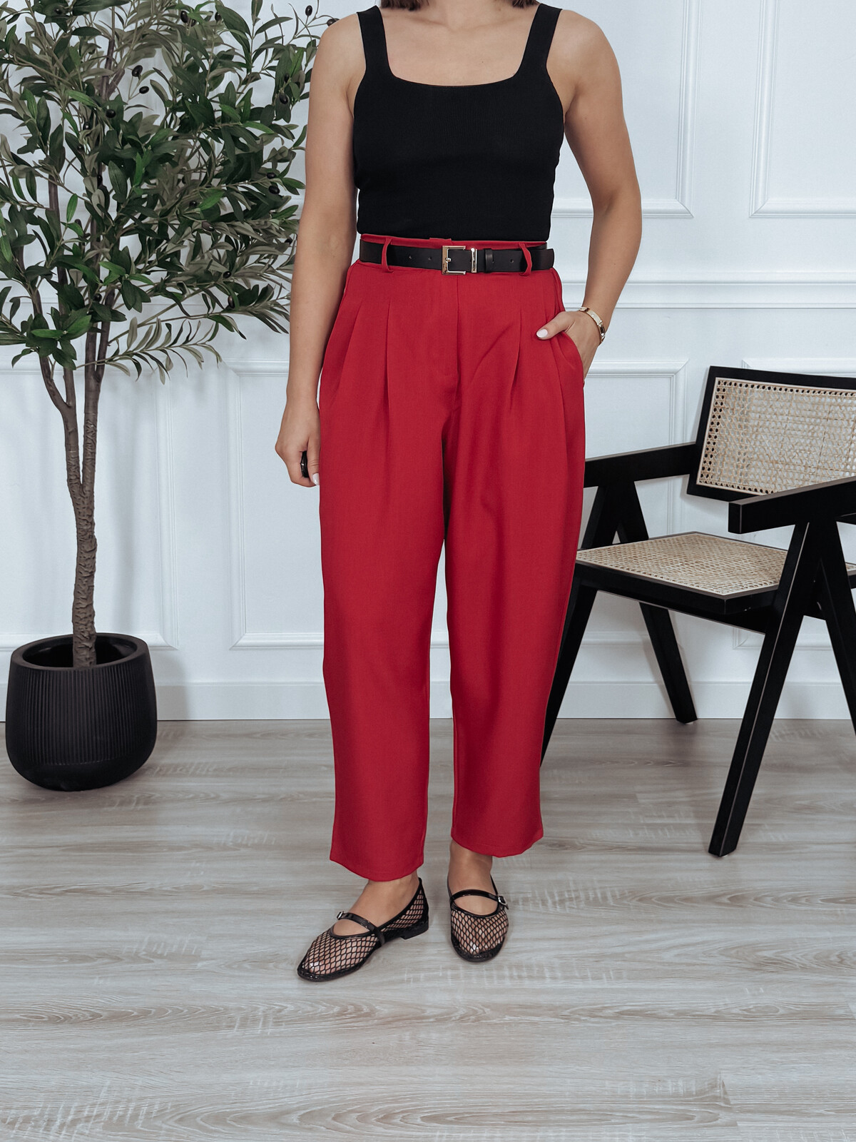 Spodnie materiałowe z wysokim stanem czerwone BRUNO
