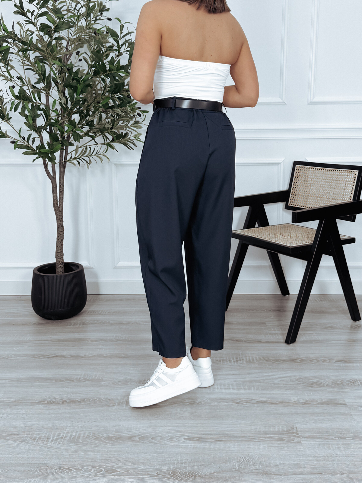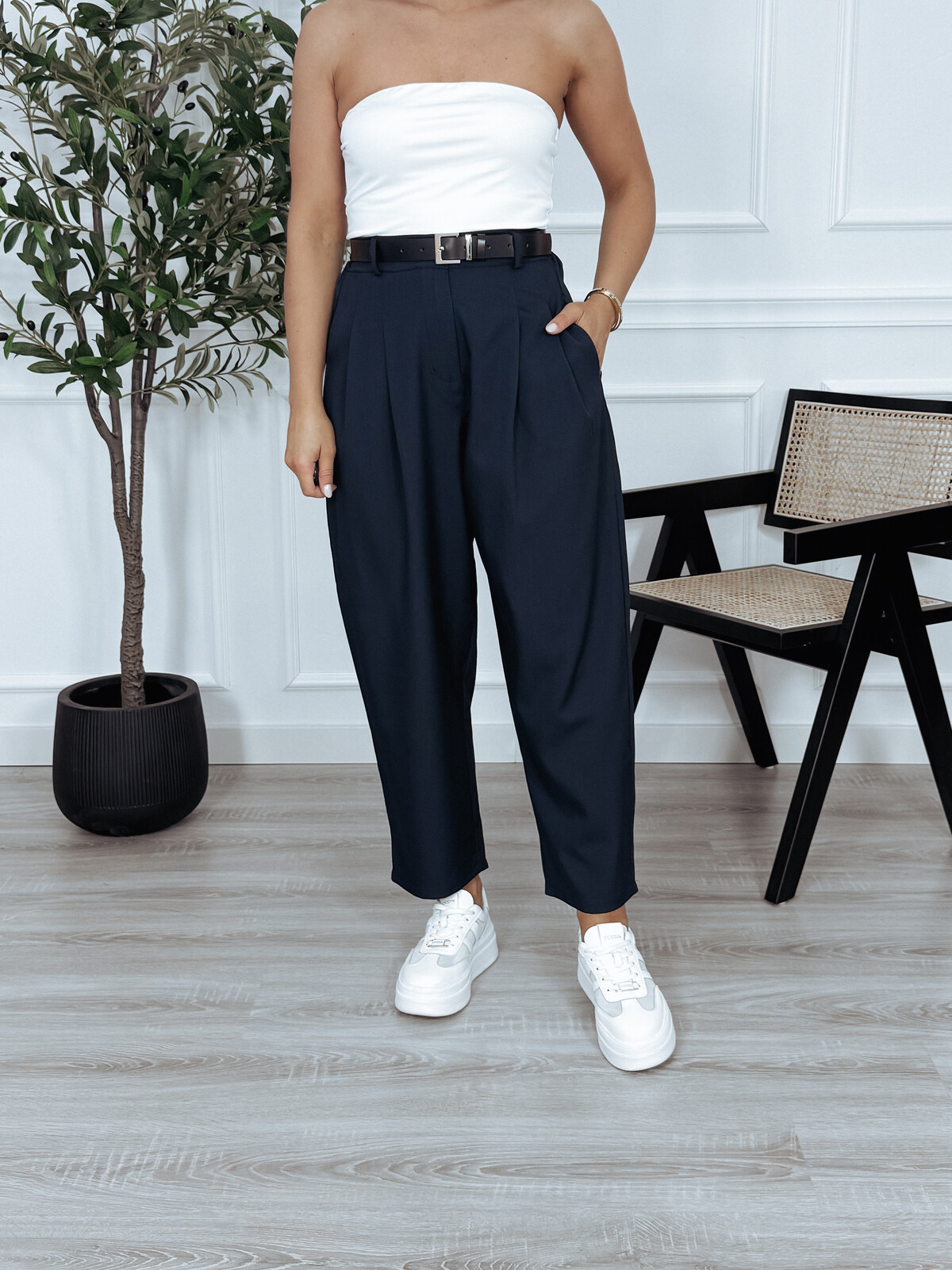Eleganckie spodnie z gumką w pasie w fasonie typu "ballon" - luźne w biodrach i kolanach, z wysokim stanem. Genialna baza do stylizacji przez cały rok  🖤