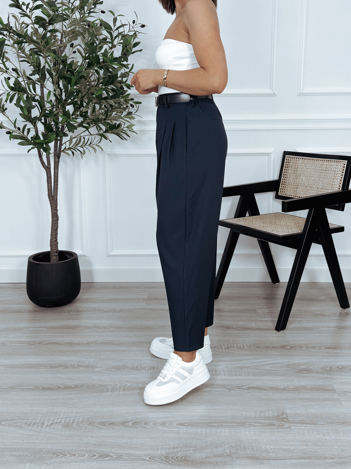 Spodnie materiałowe z wysokim stanem fango BRUNO