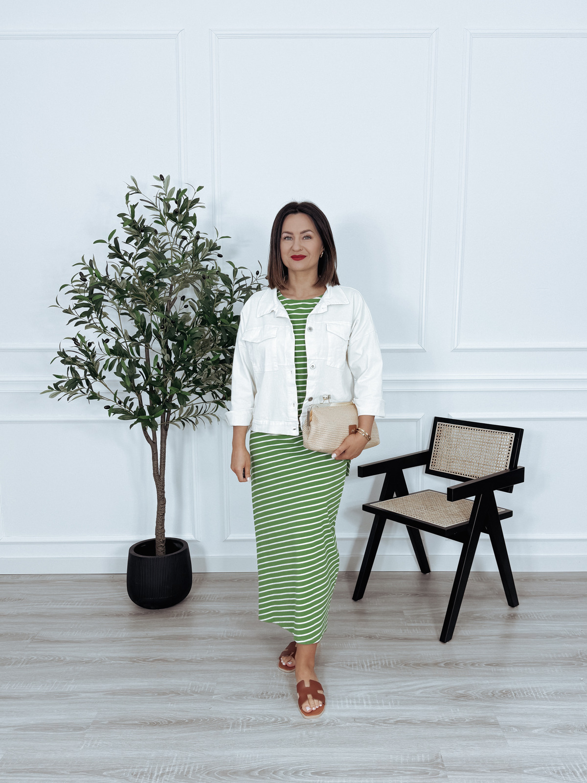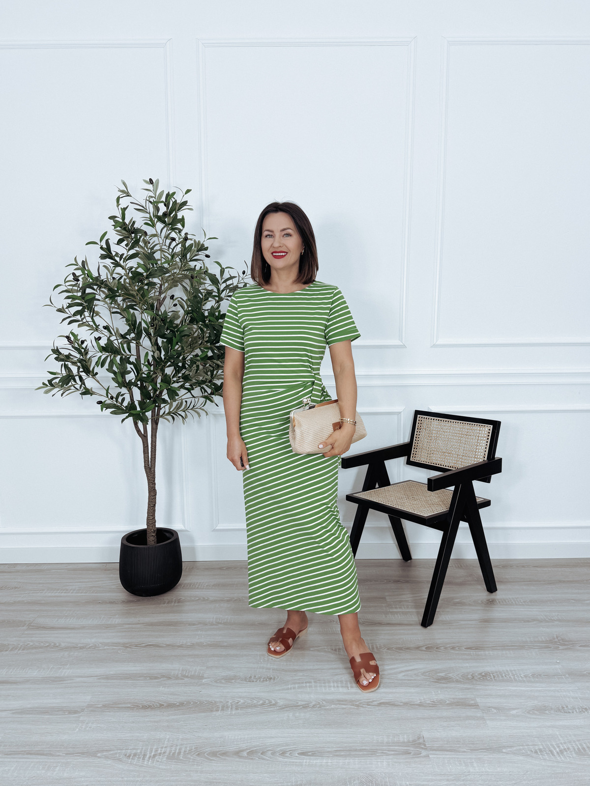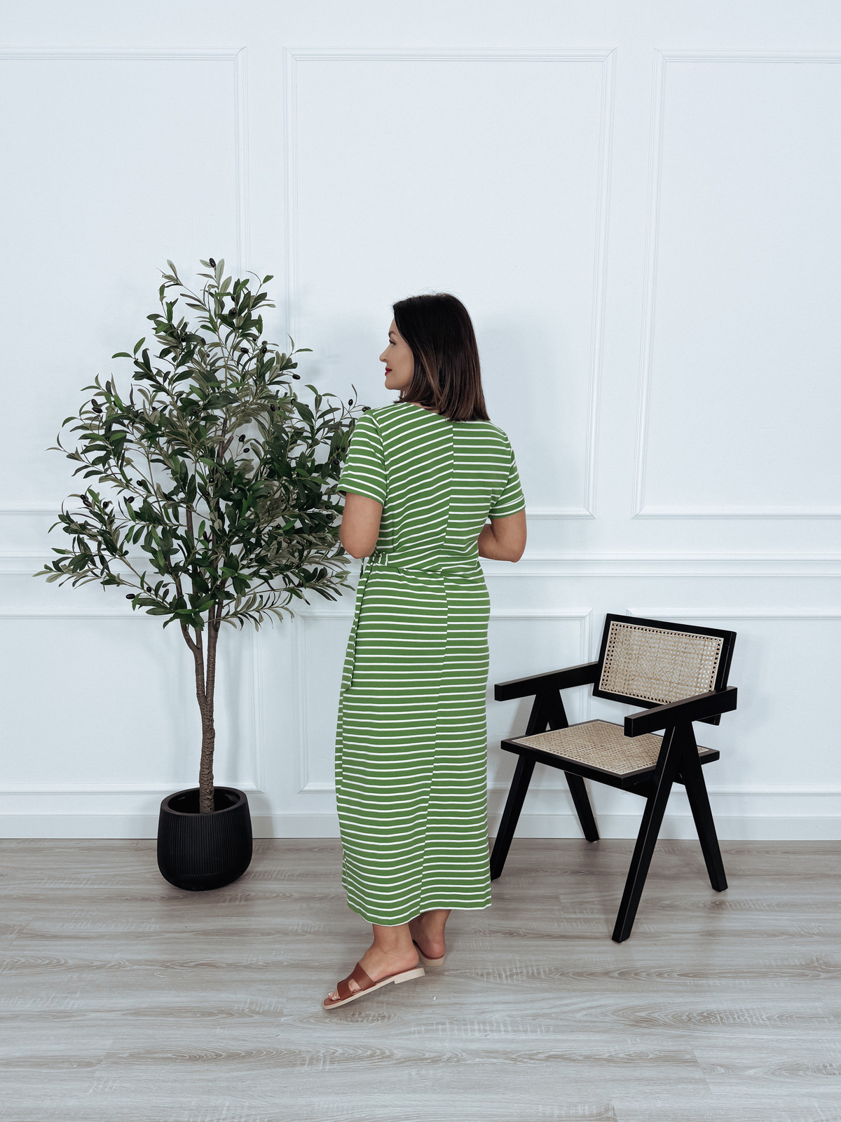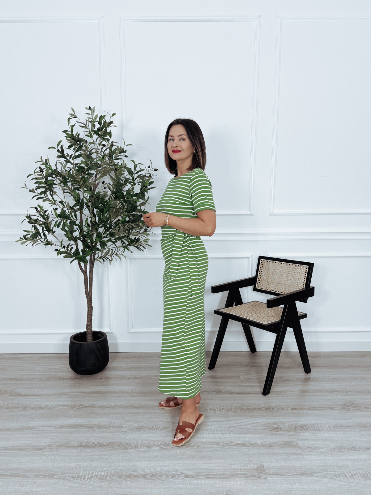 Sukienka bawełniana z wiązaniem z boku oliwkowa w paski LAVIA