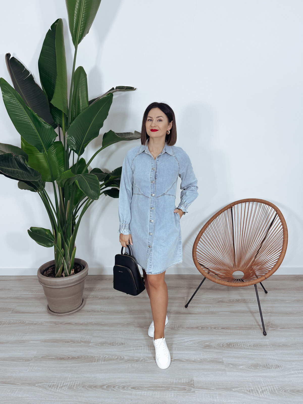 Sukienka  uszyta z miękkiego jeansu, zapinana od góry do dołu na zatrzaski. Model posiada kieszenie. Najwyższa jakość. Zrobisz w niej efekt WOW 🖤