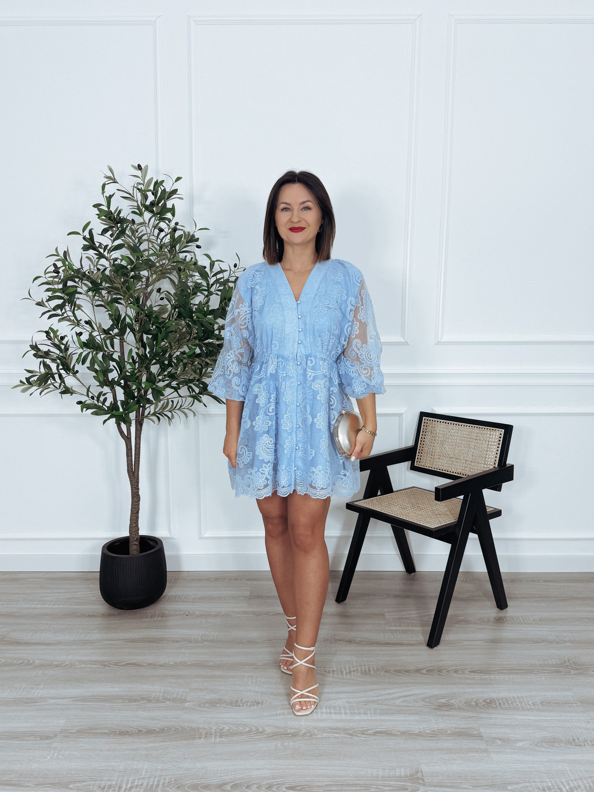 Sukienka krótka premium z wiskozy | koronkowa | niebieska MIA