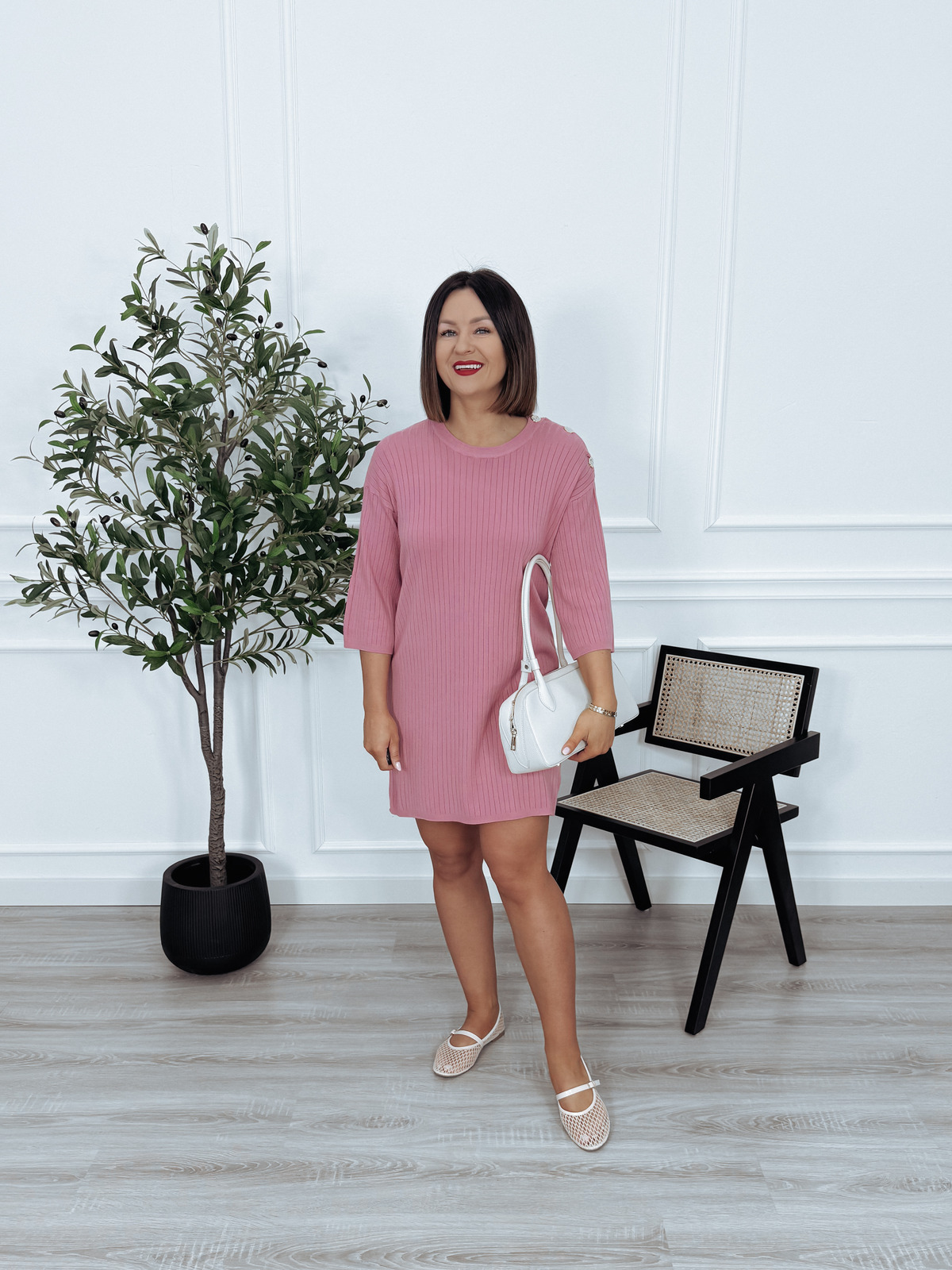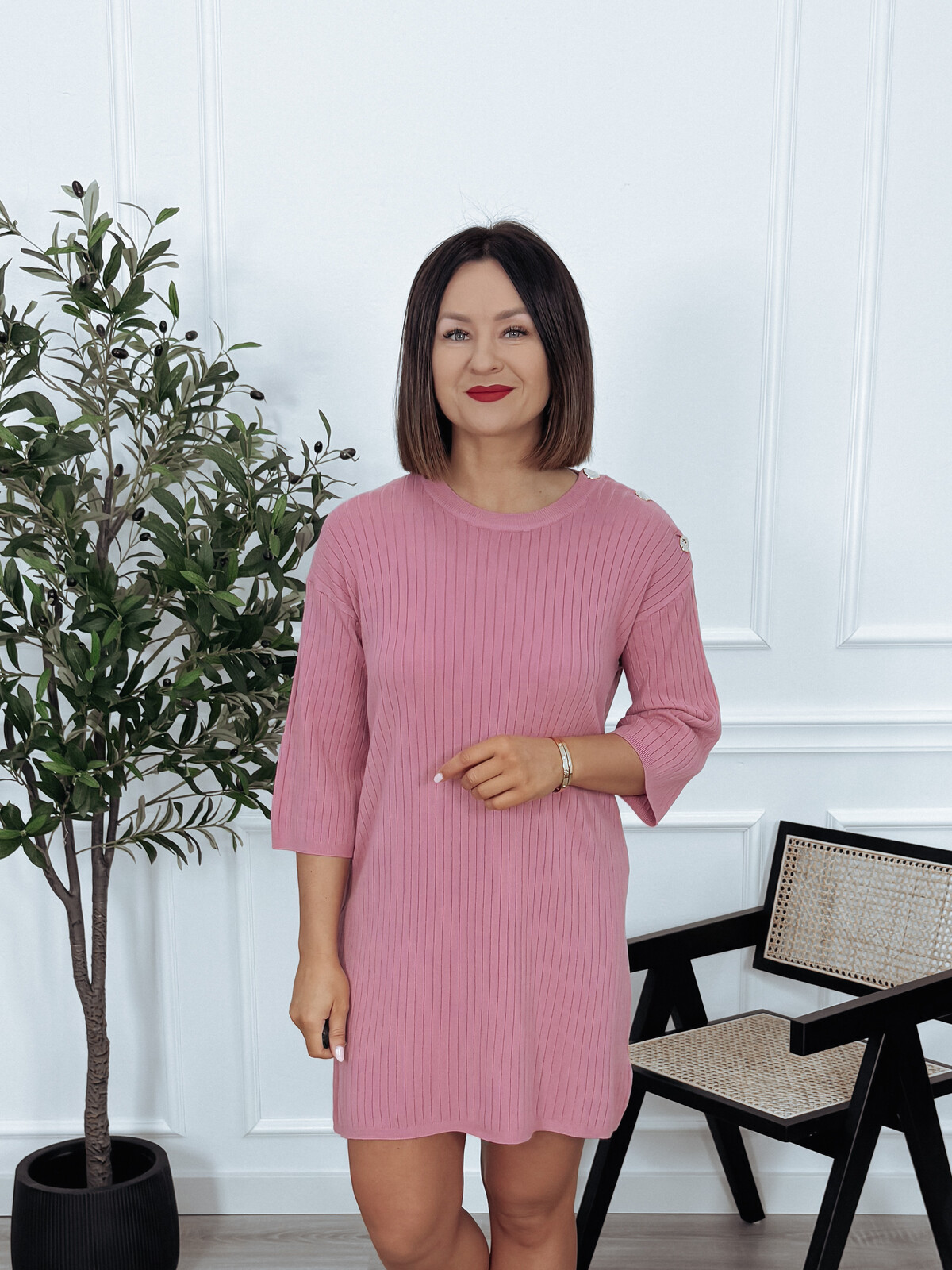 Sukienka luźna dzianinowa z rękawem 3/4 różowa MABEL