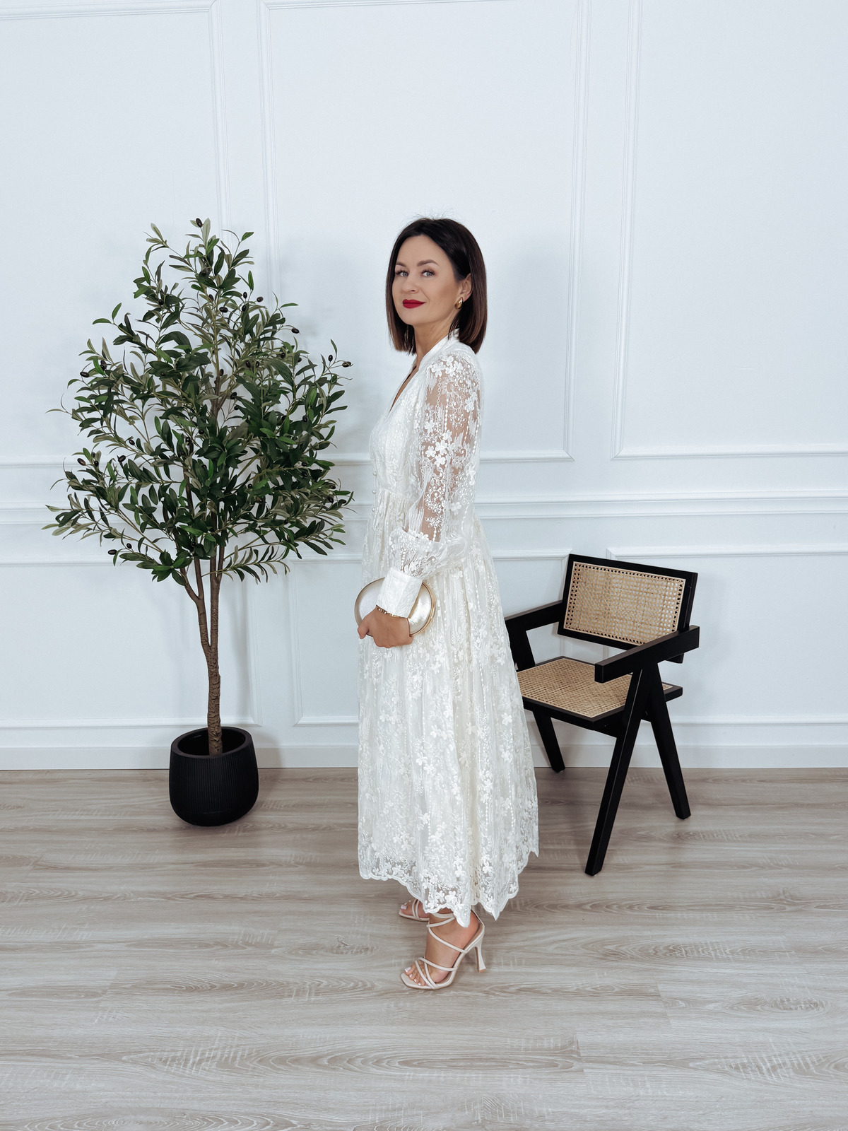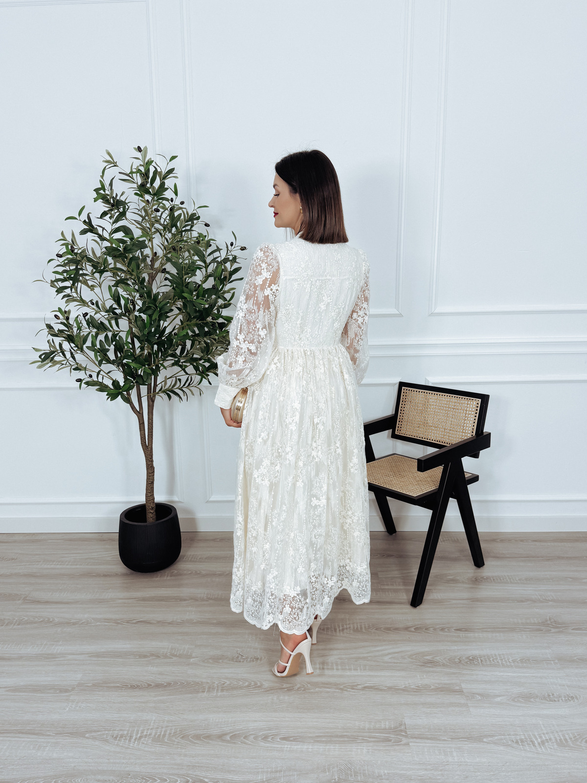 Sukienka maxi haftowana z wiskozy ecru MARIKA