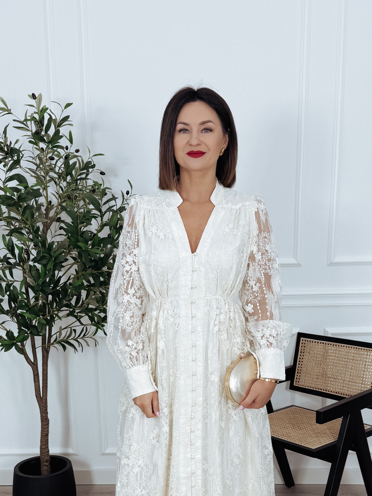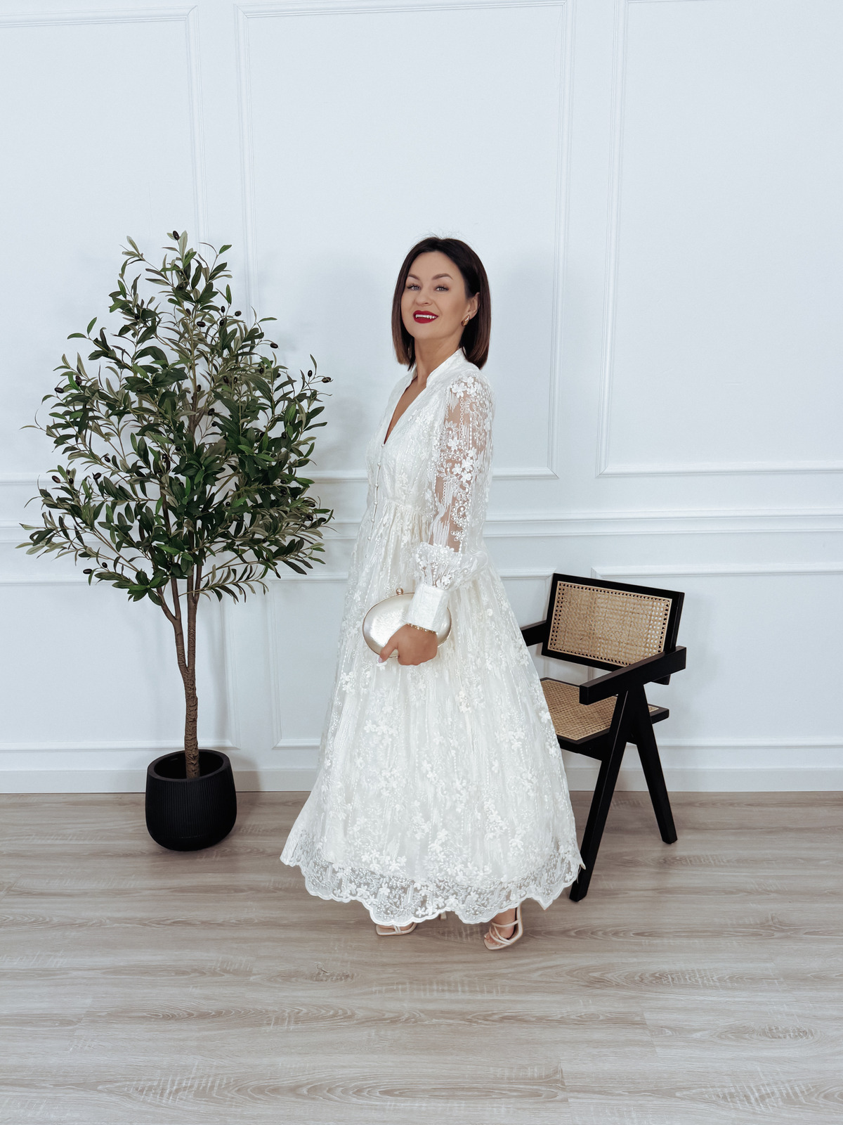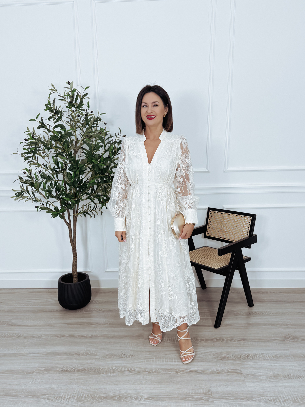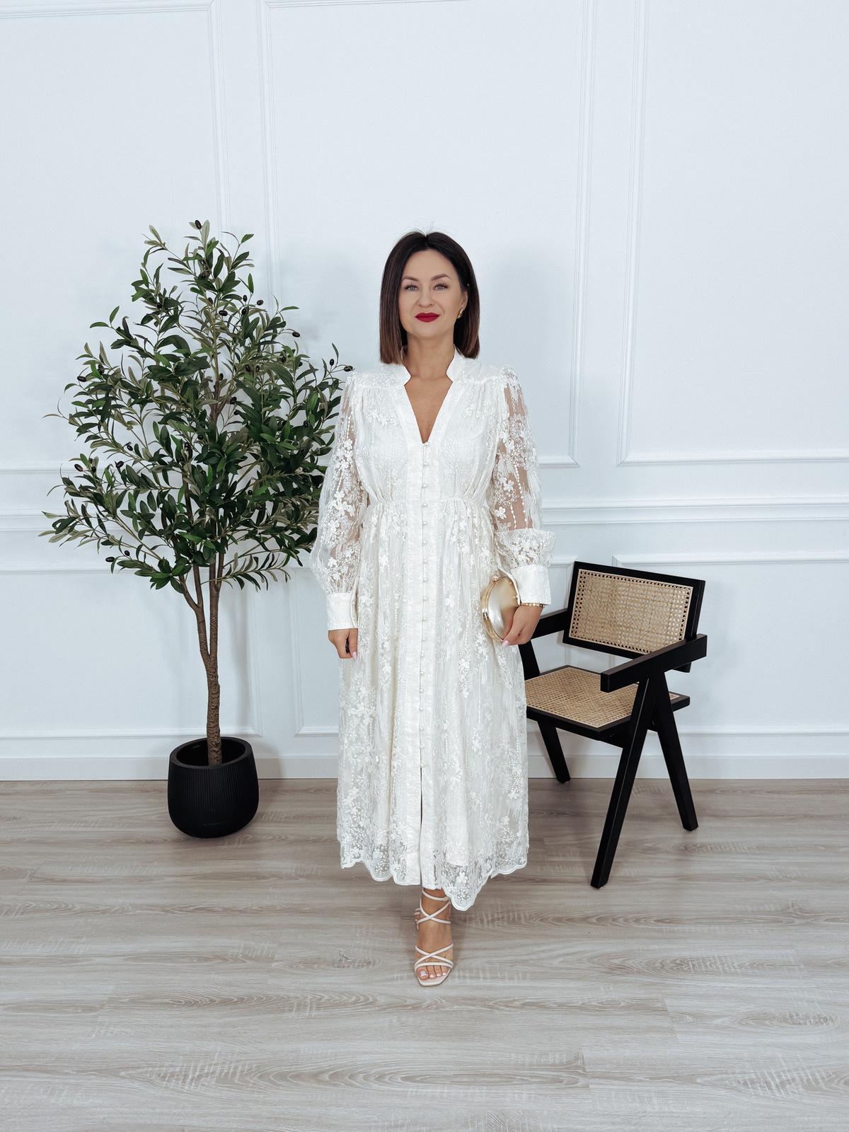 Maxi hatowana sukienka z długim rękawem, zapinana z przodu na ozdobne, perłowe guziki. Model posiada wszytą podszewkę. Elegancka i wytworna🖤