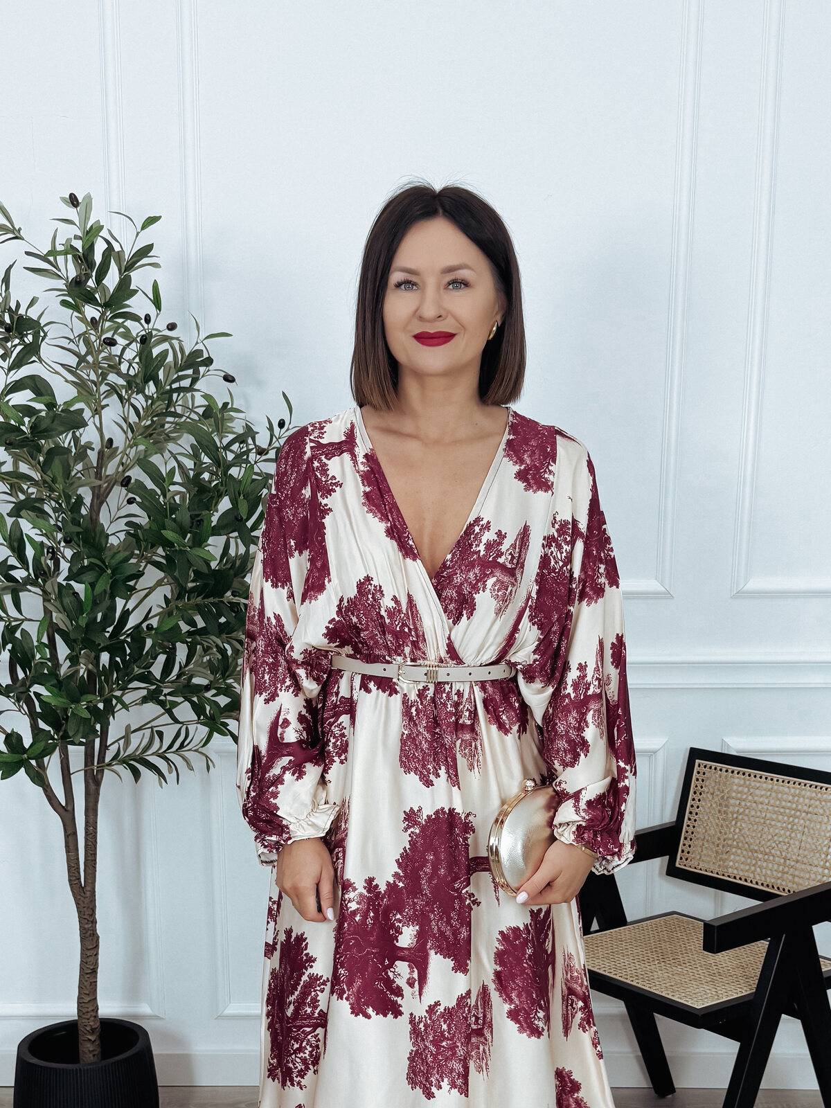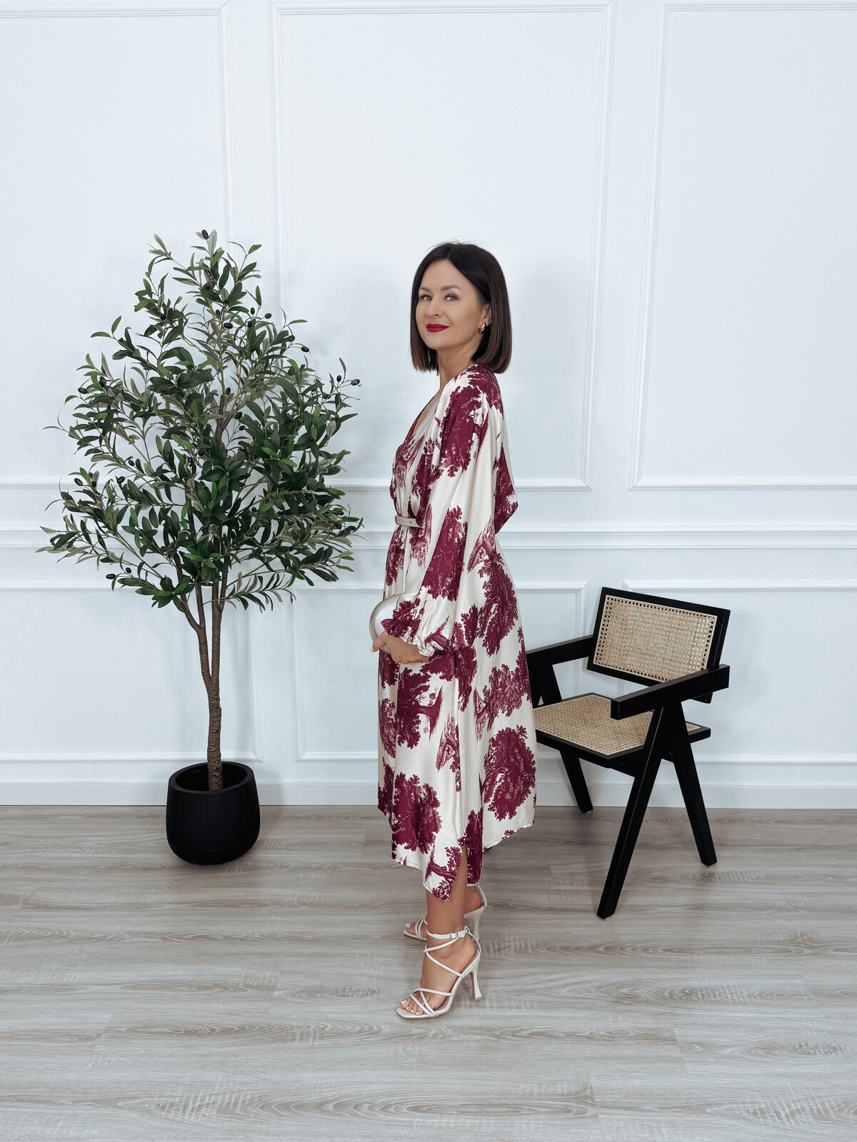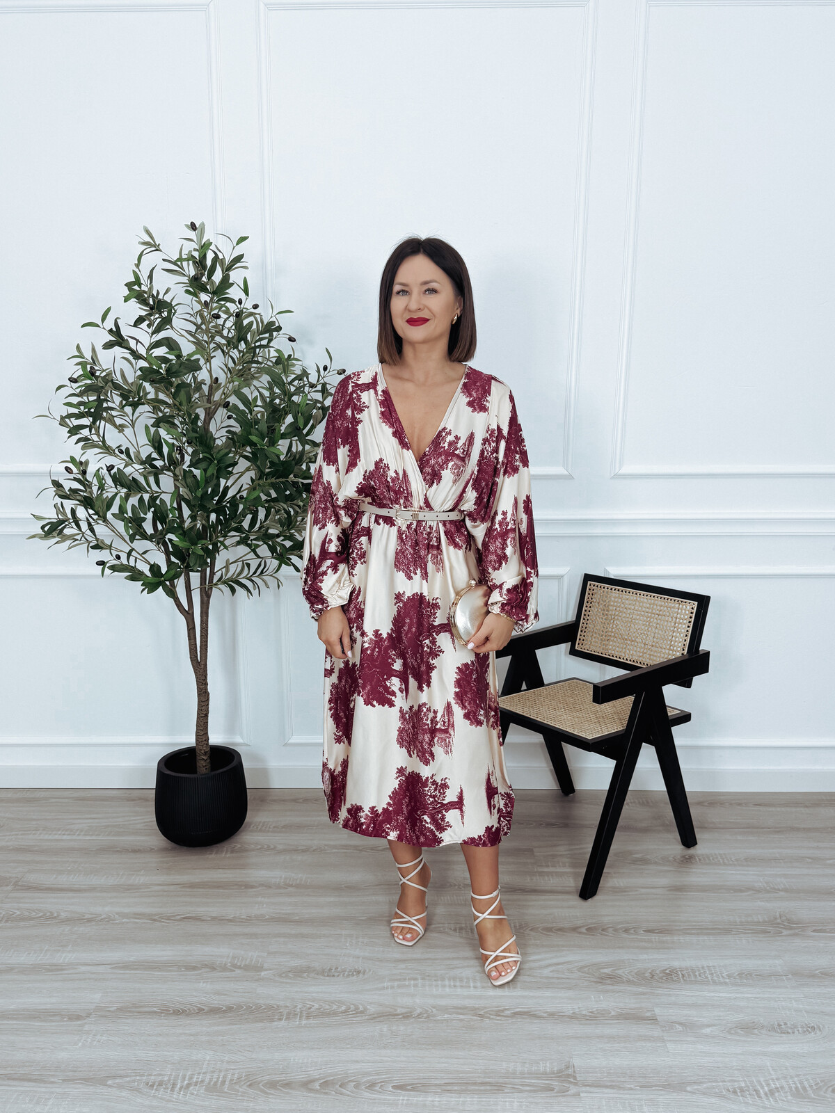 Sukienka maxi | większy standard | wiskoza i jedwab beżowo-bordowa ADDY