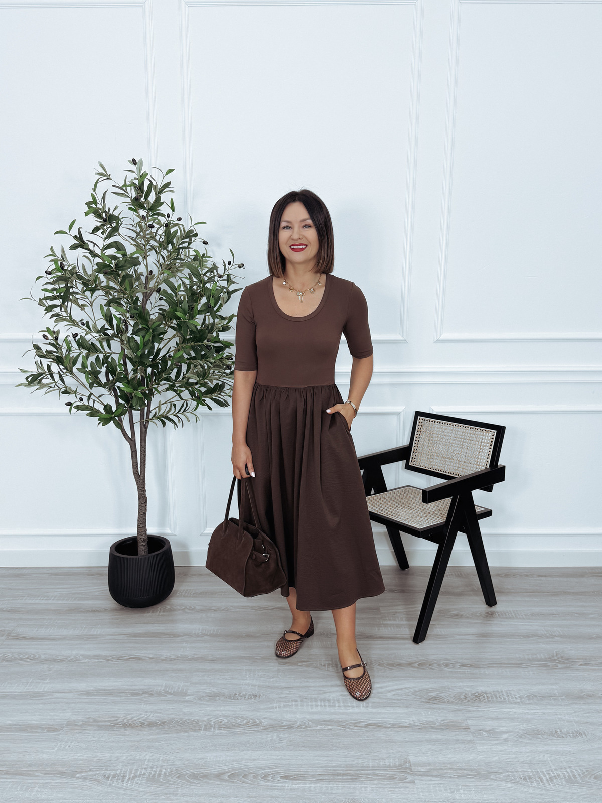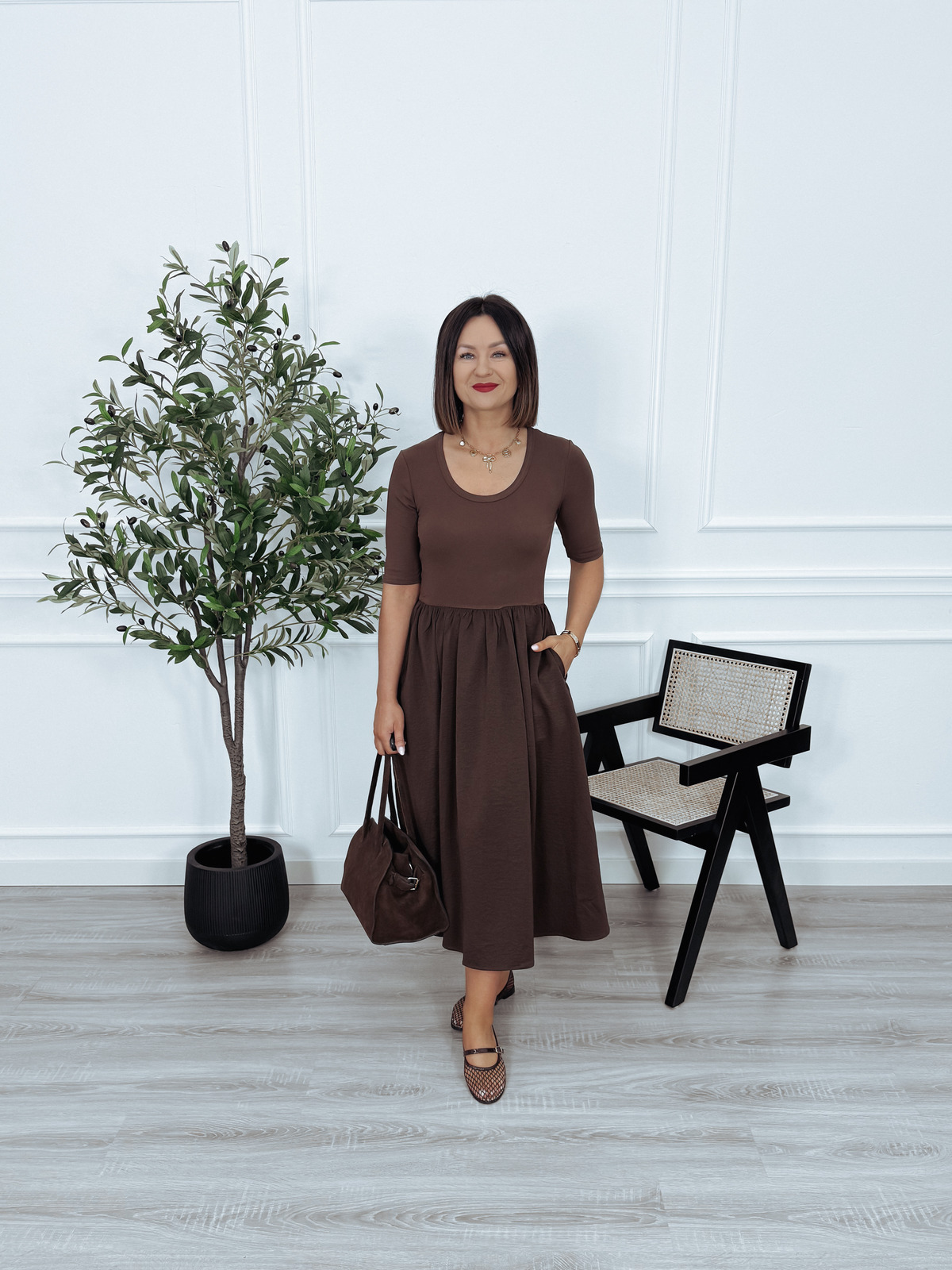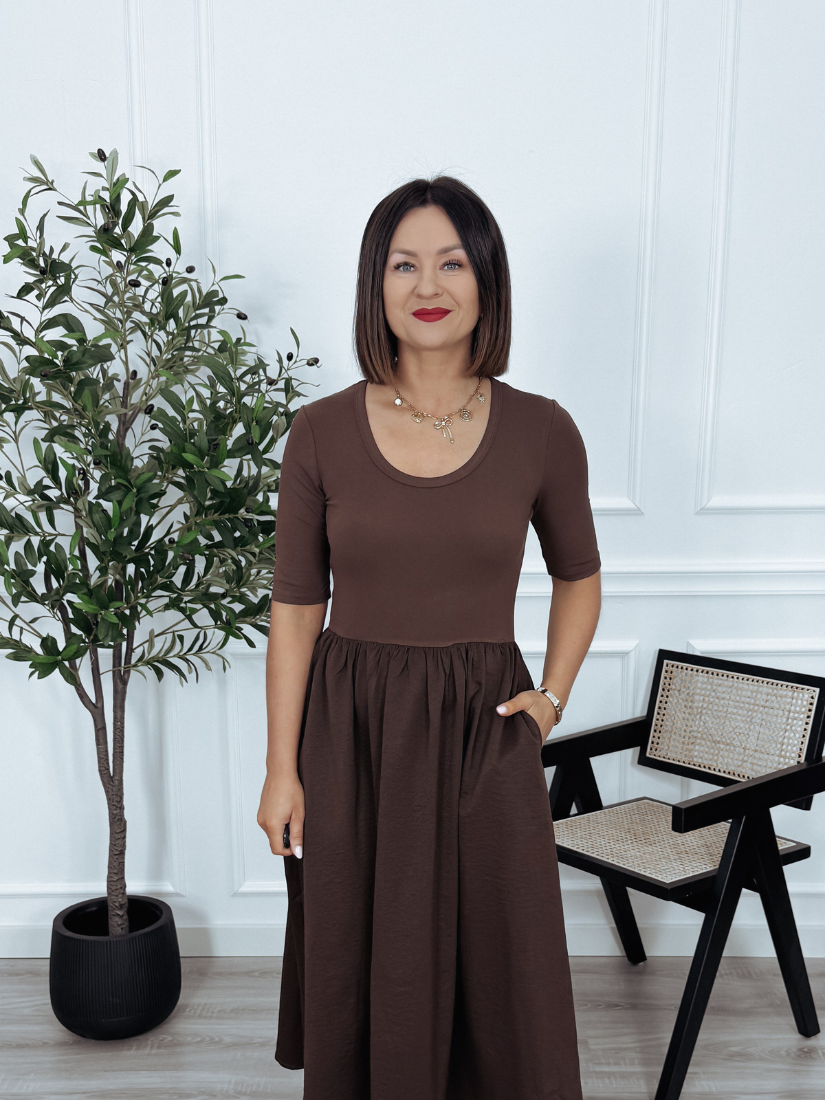 Sukienka midi z rozkloszowanym dołem brązowa LIKKA