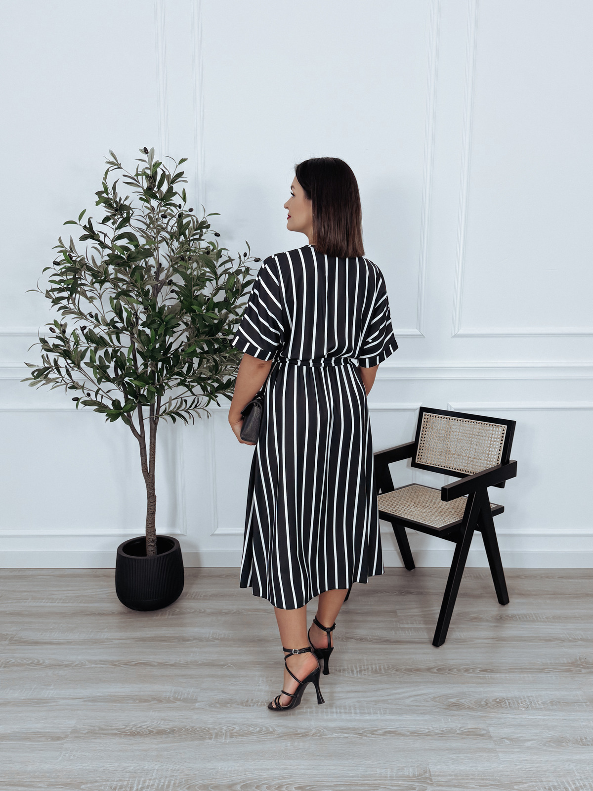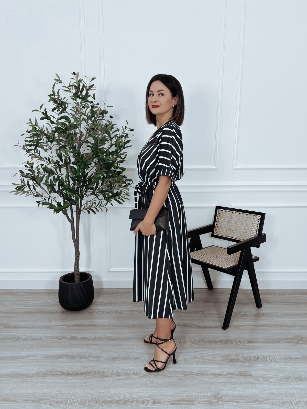 Sukienka z krótkim rękawem w paski biało/czarne LOREN