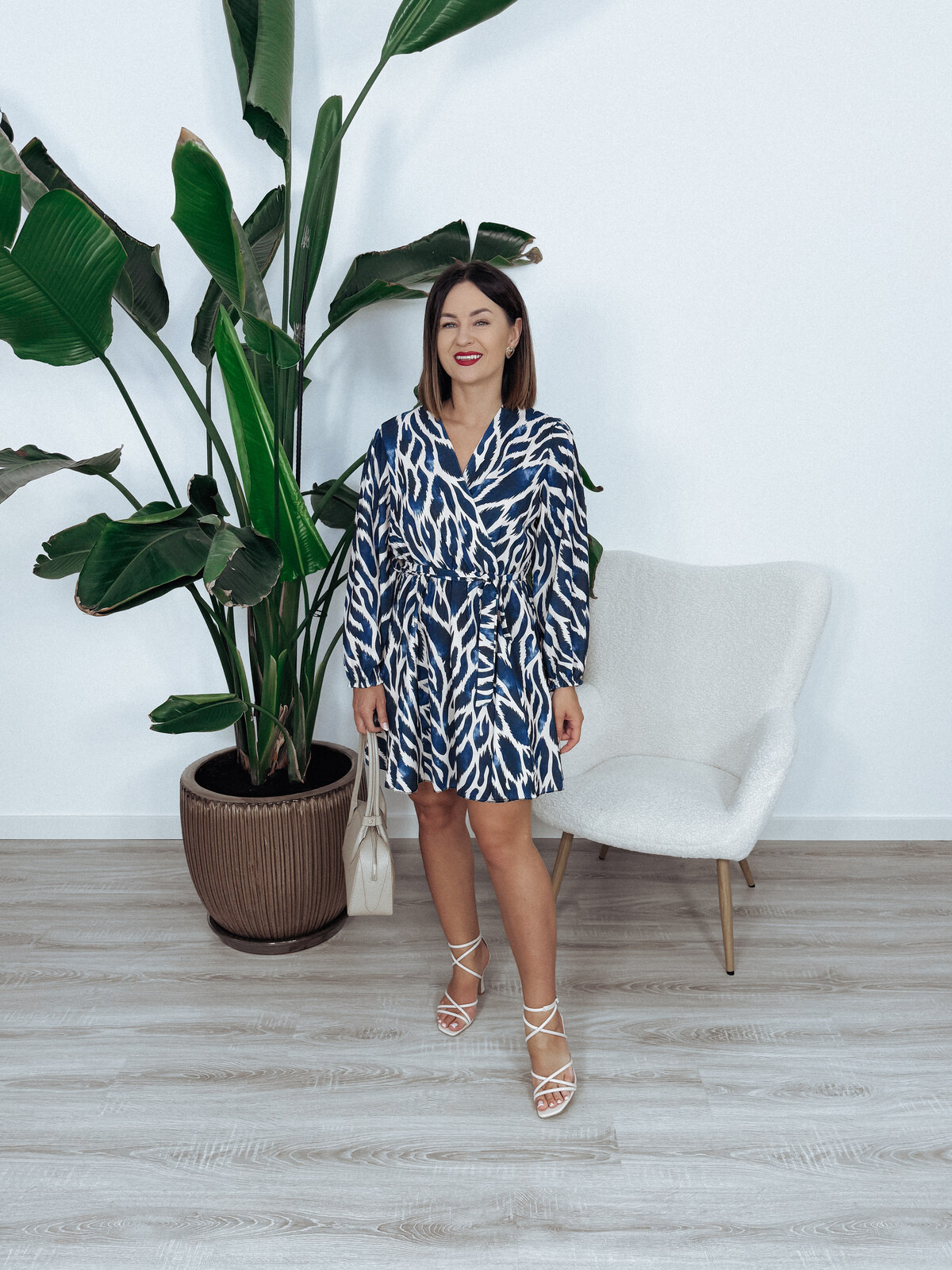 Sukienka z wiązaniem w pasie granatowo-beżowa ONLY