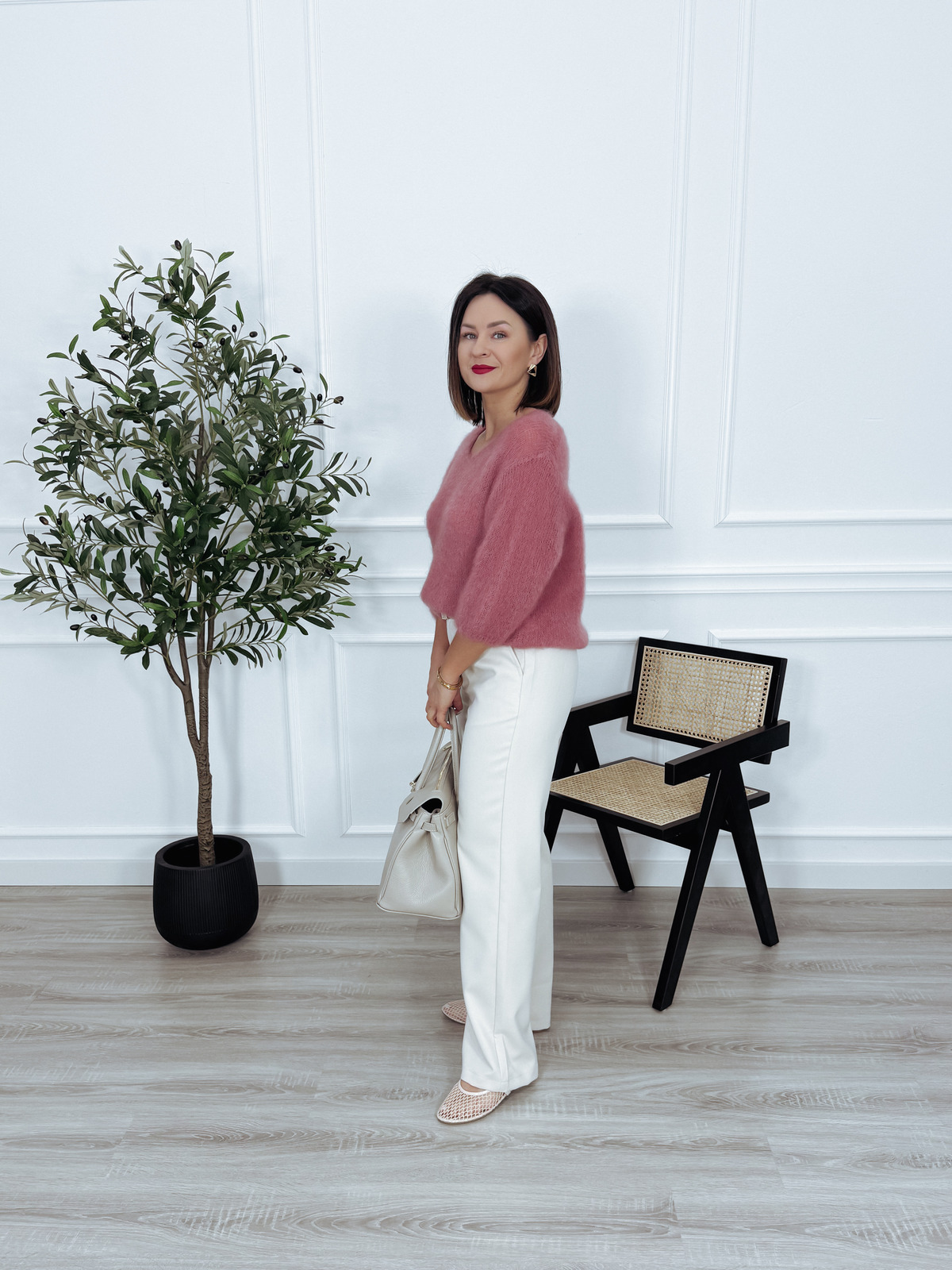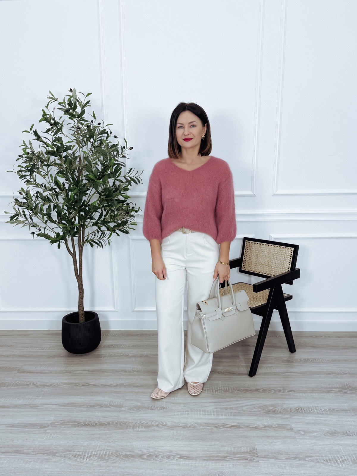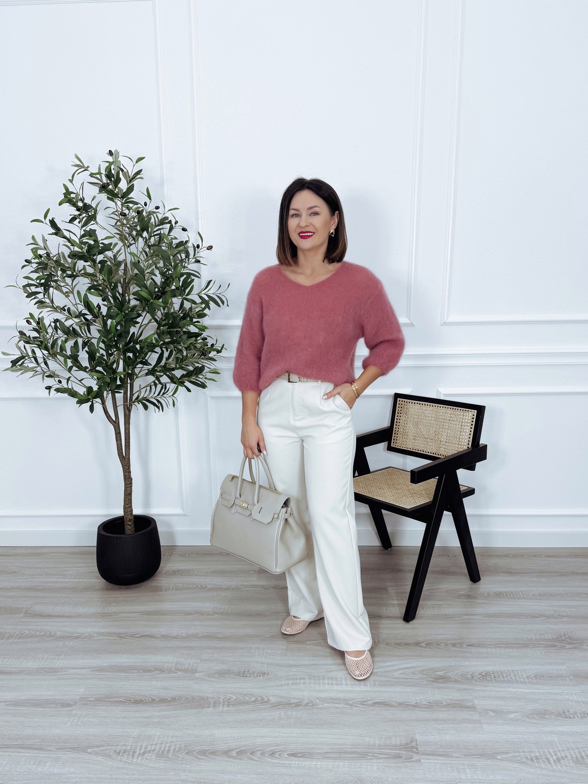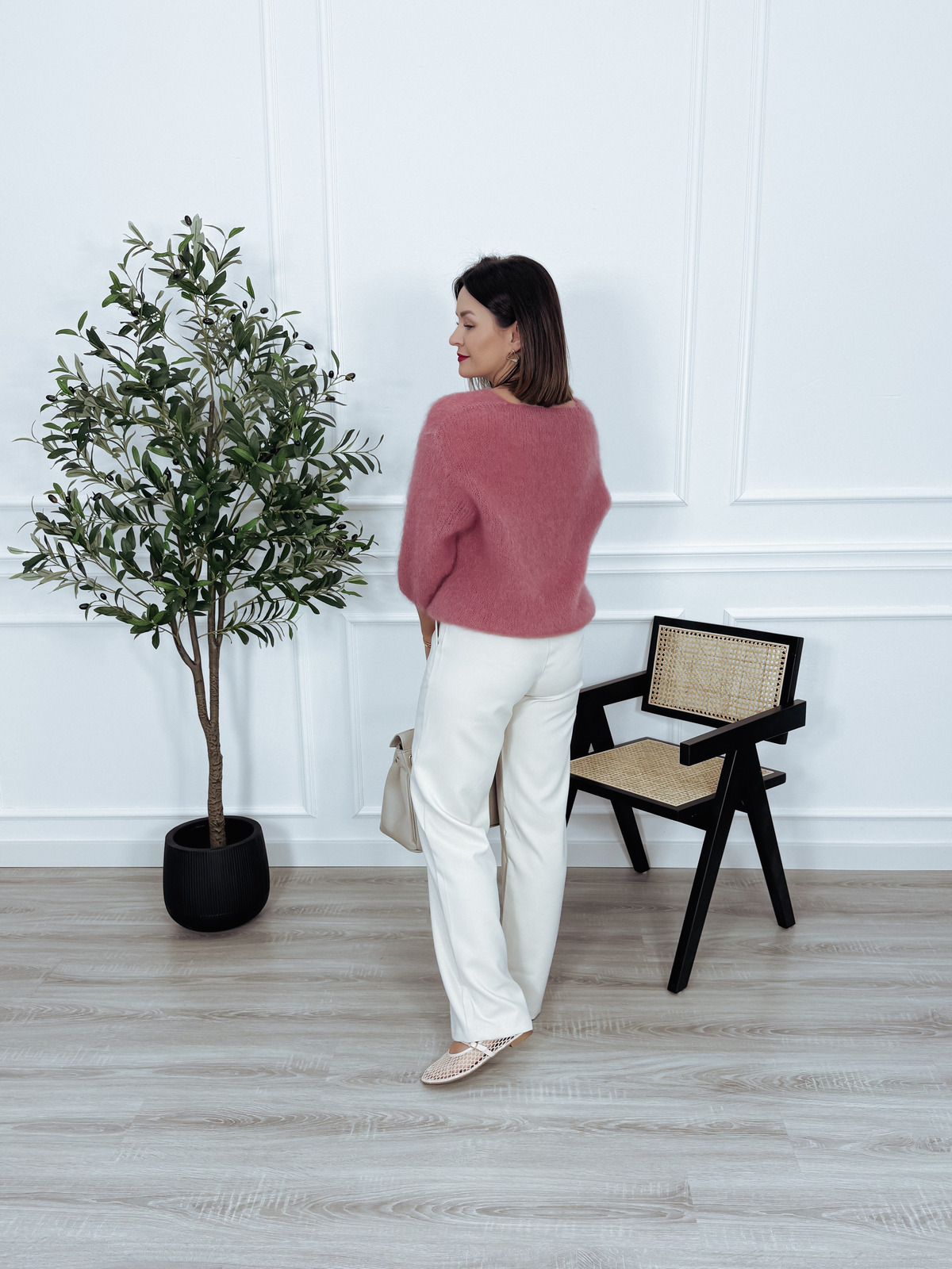 Sweter premium | 80% kid moher | dekolt w serek różowy PAOLO