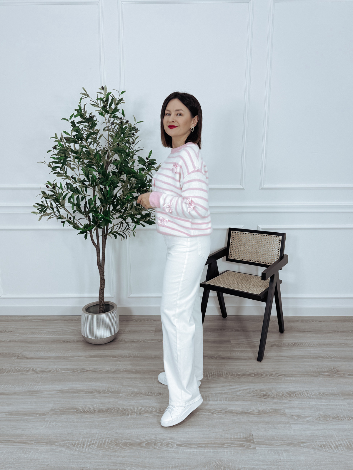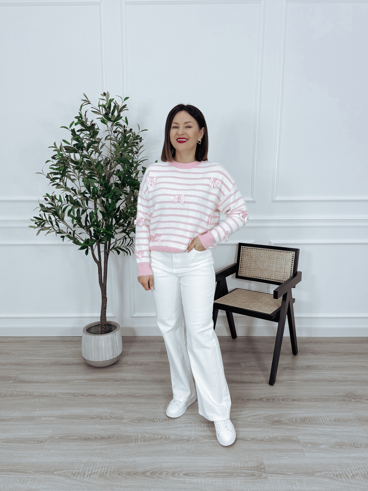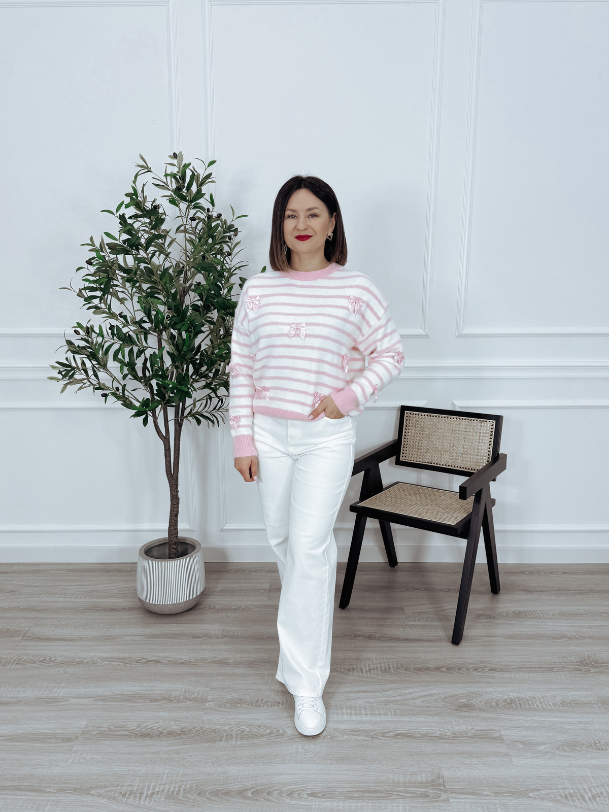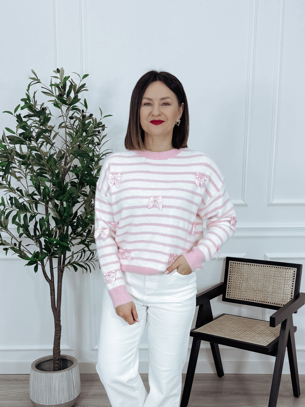 Miękki i przyjemny w dotyku sweter w paski z uroczymi kokardkami .🖤