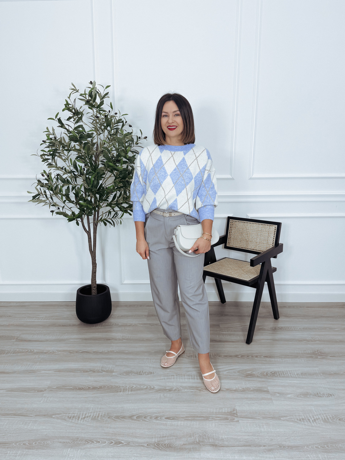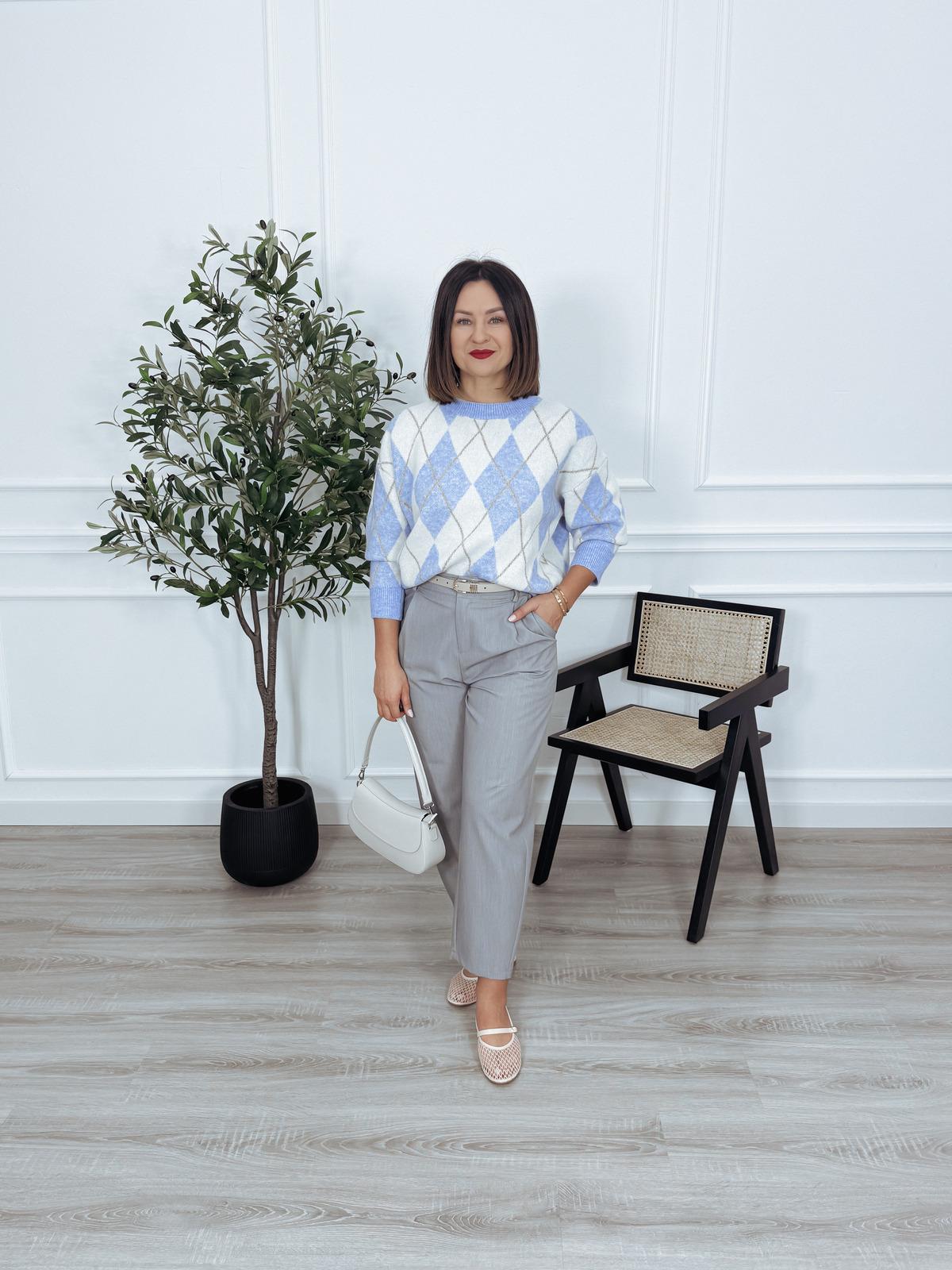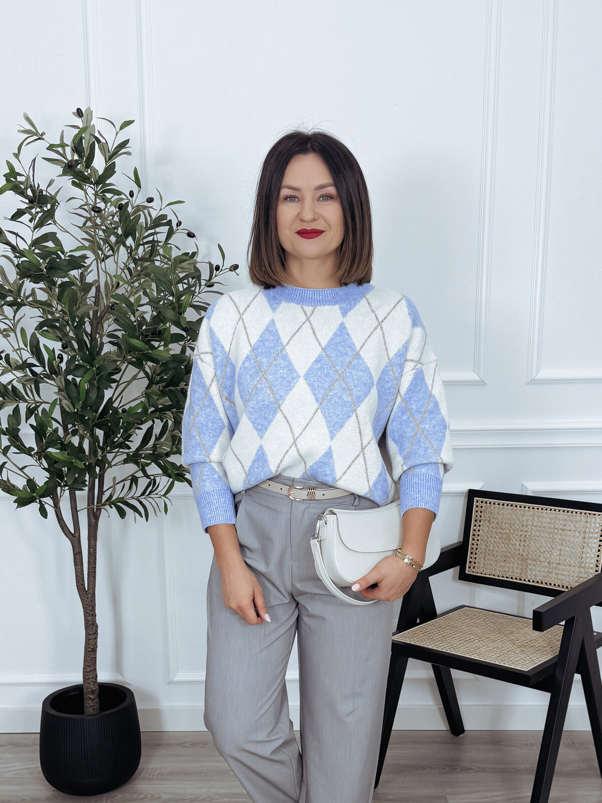 Bardzo przyjemny dla ciała sweter w romby. Nie gryzie. Idealny na wiosnę.🖤